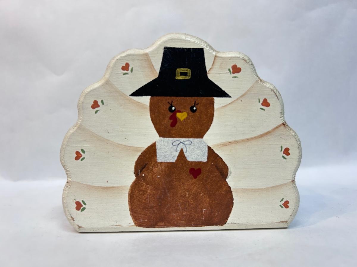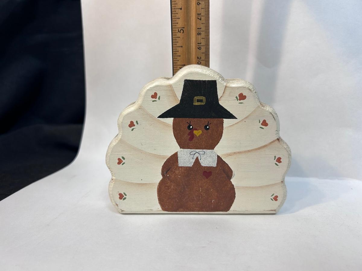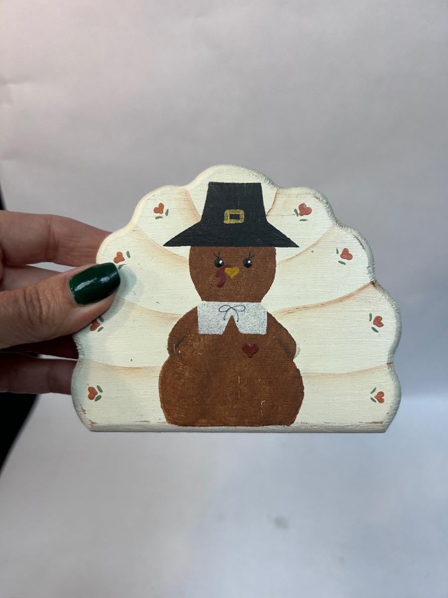 Cute Tole Painted Turkey Wood Thanksgiving Fall Decor
