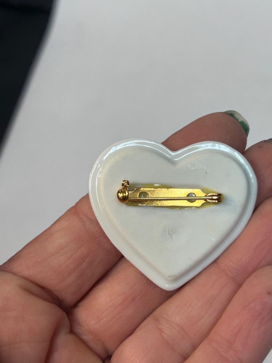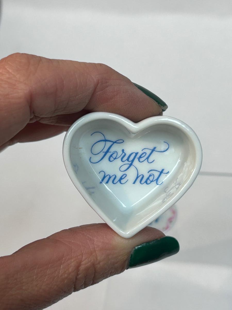 Vintage Retro Porcelain Heart Shaped Forget Me Not Flower Trinket Dish with Pin Lid. In good condition. Forget me not lid has a pin on the back side, can be worn. Under 2" size.