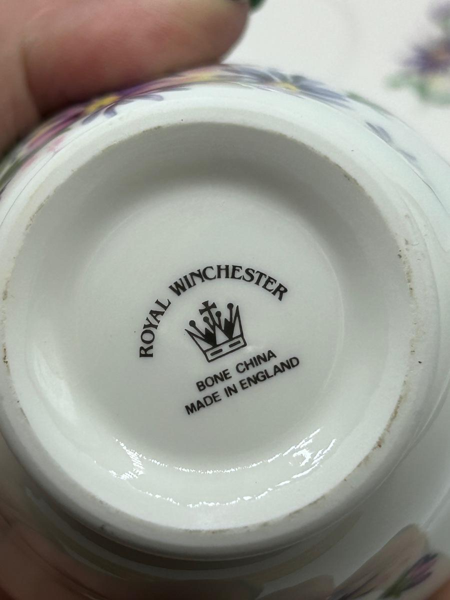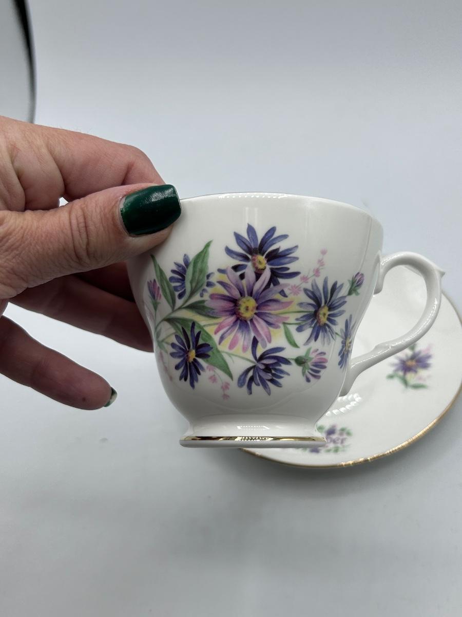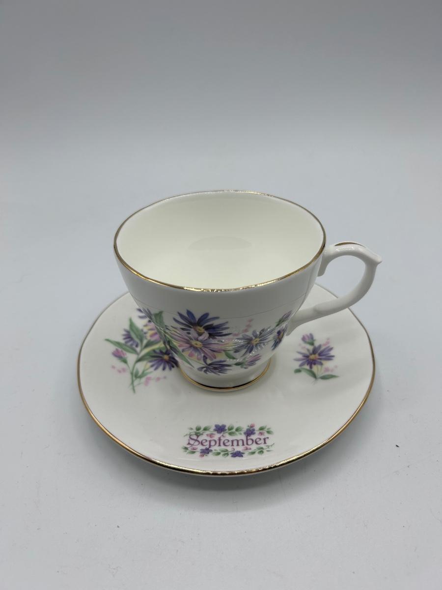 Royal Winchester Bone Chine Purple Flower September Teacup and Saucer