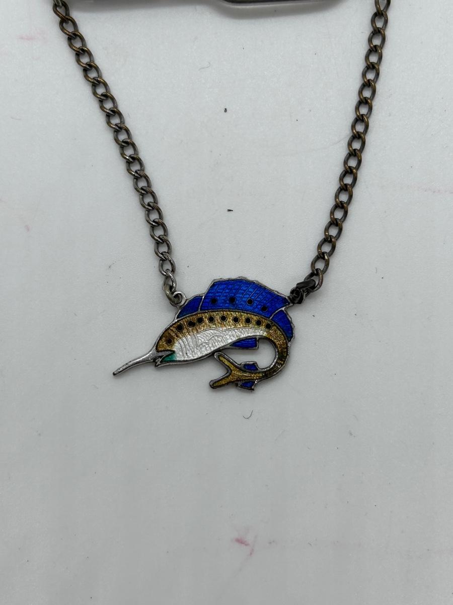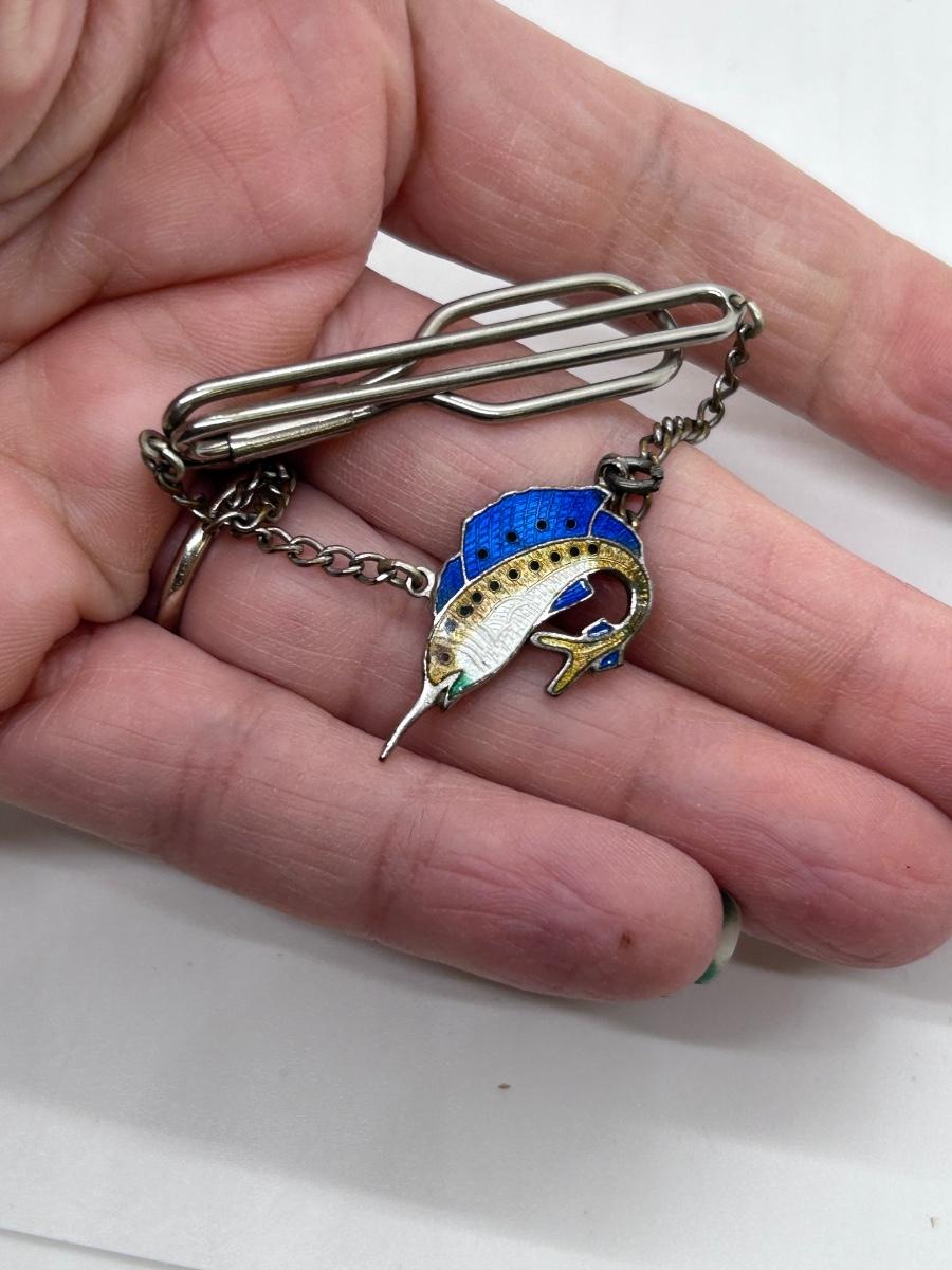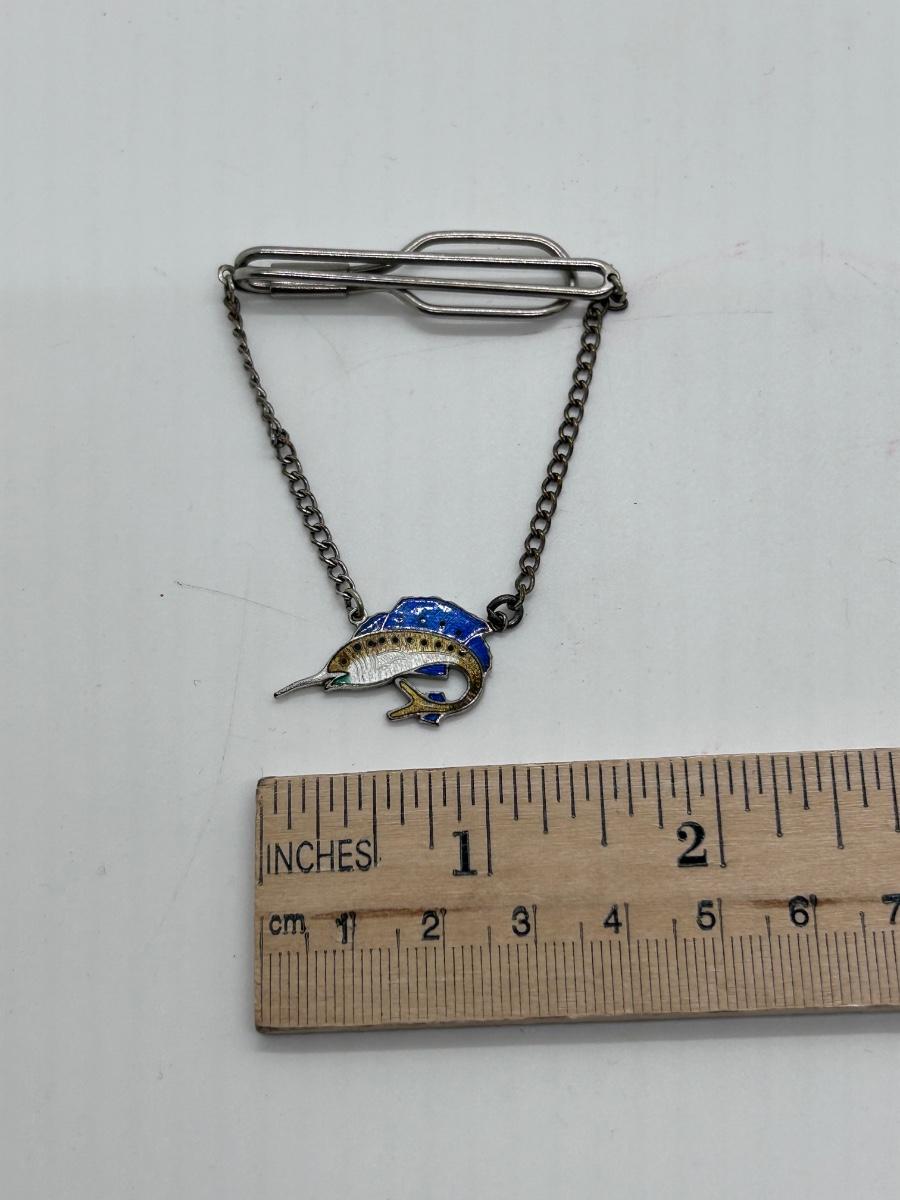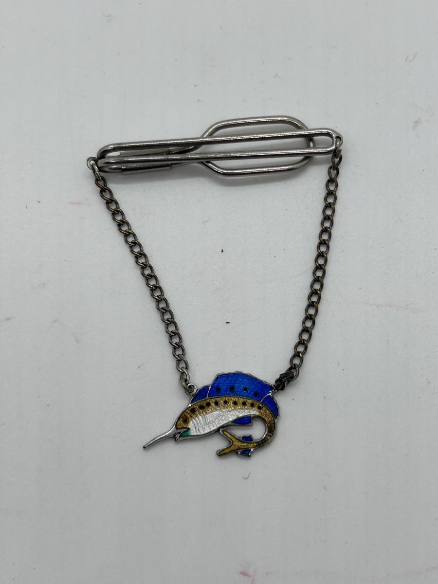 Vintage Enamel Swordfish Sailfish Sportsmen Tie Clip