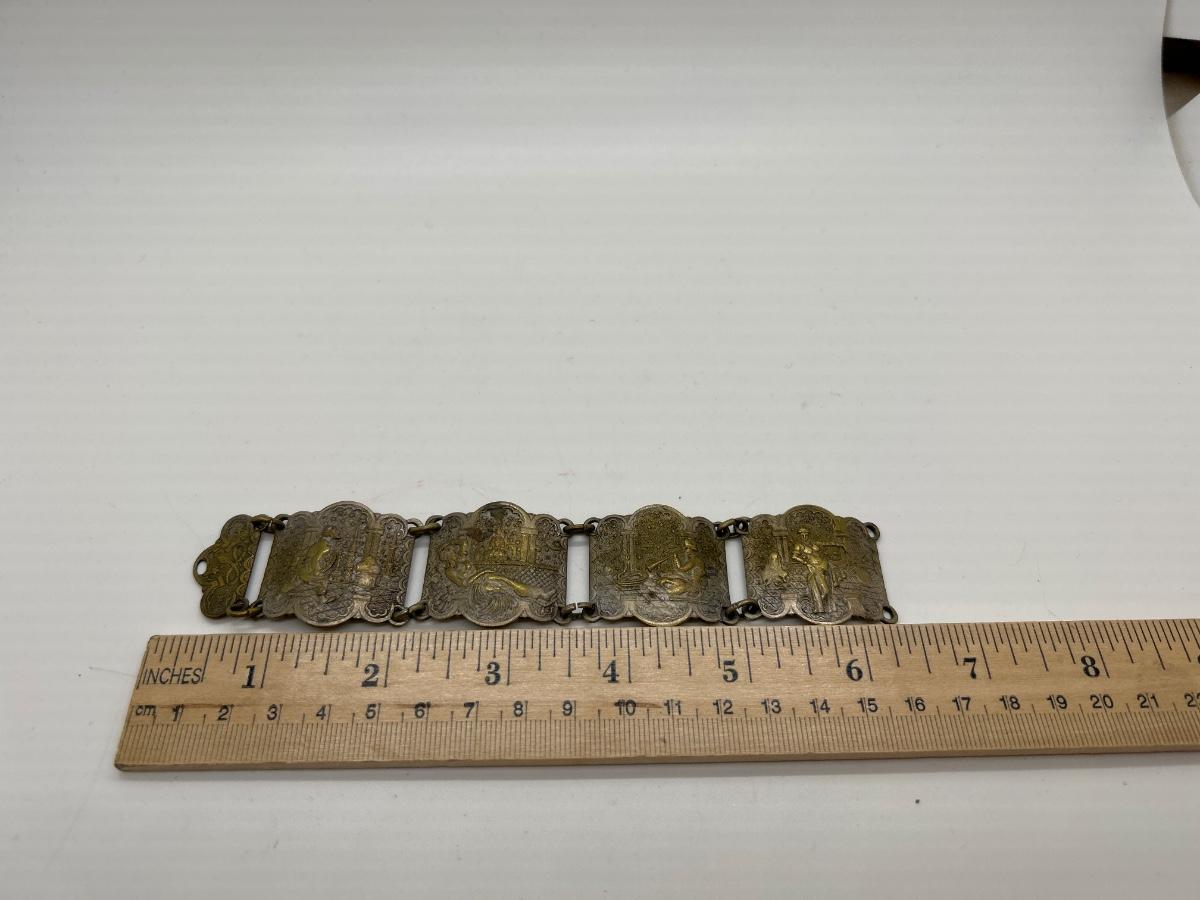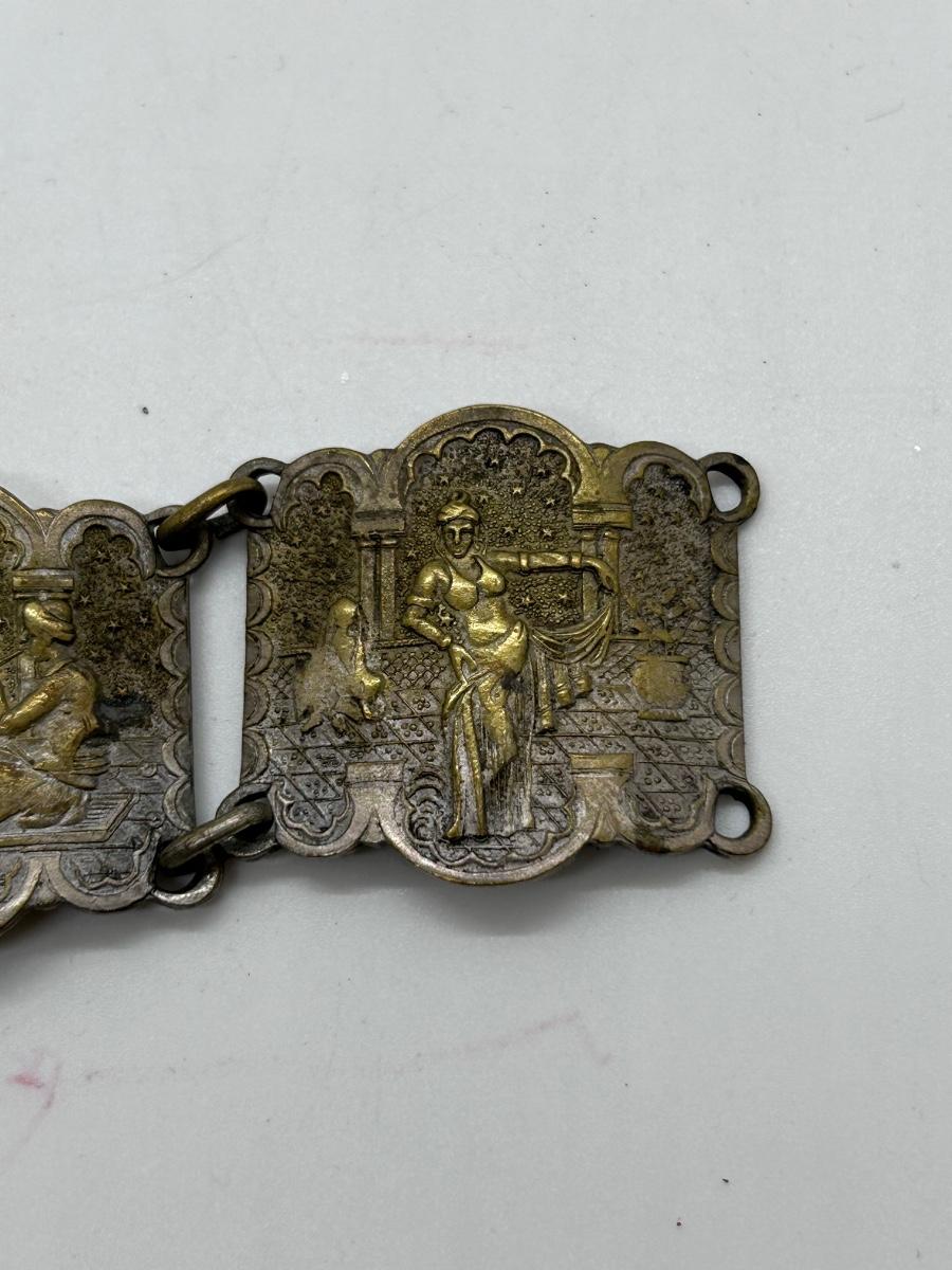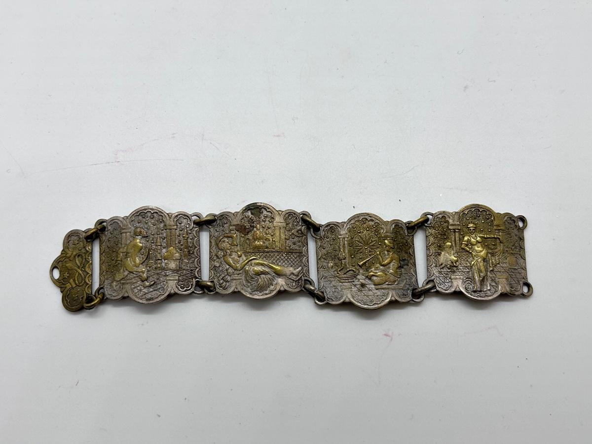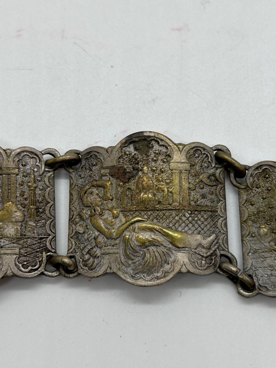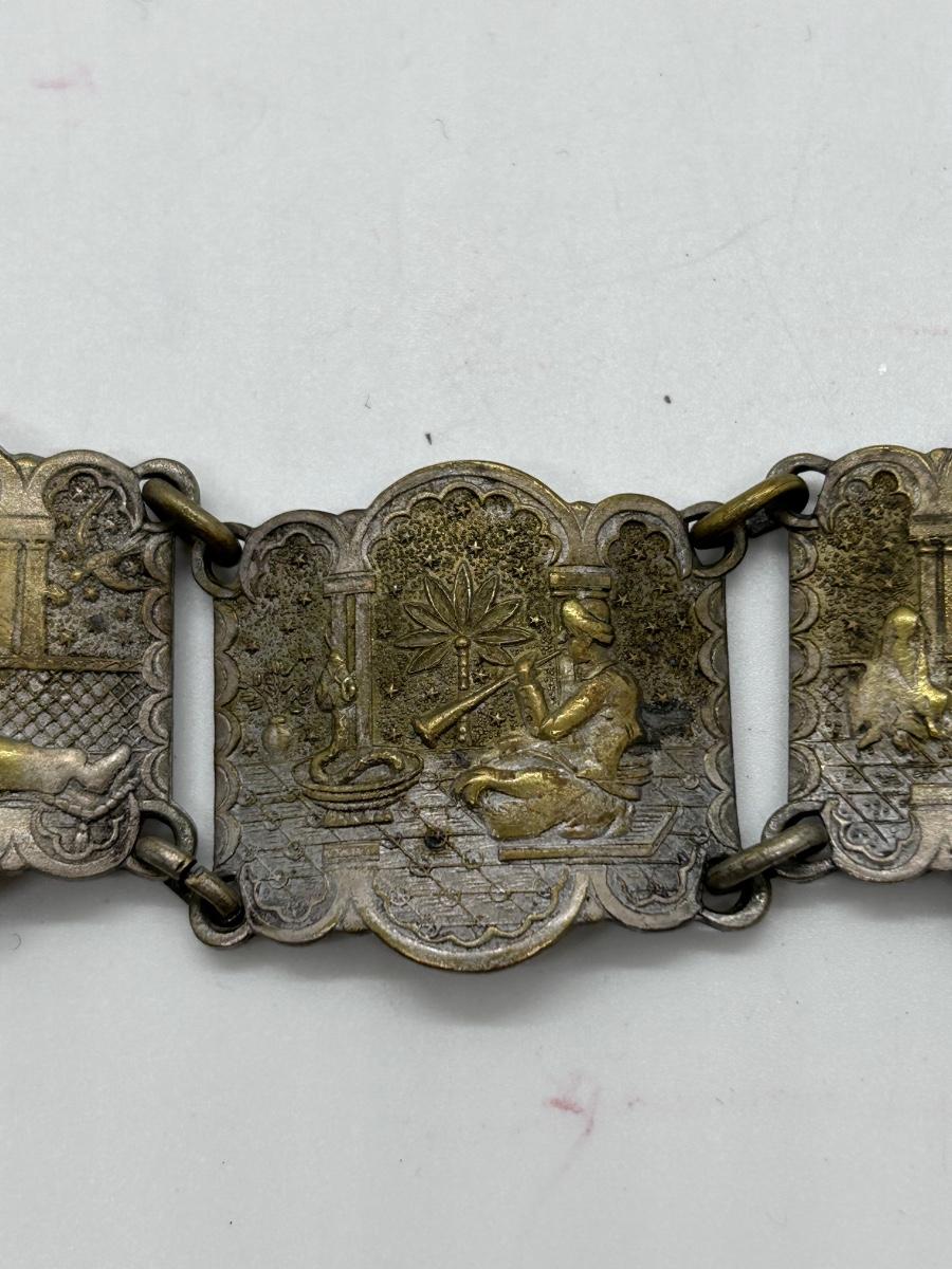 Vintage Embossed Chunky Metal Links Belly Dancer Snake Charmer Arabian Nights Theme For Repair or Repurpose. Unfortunately, unsure where the rest of the bracelet is. Great for repurpose. See photos.