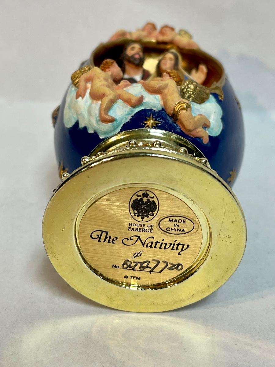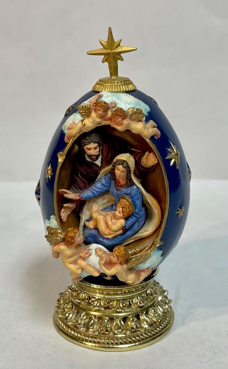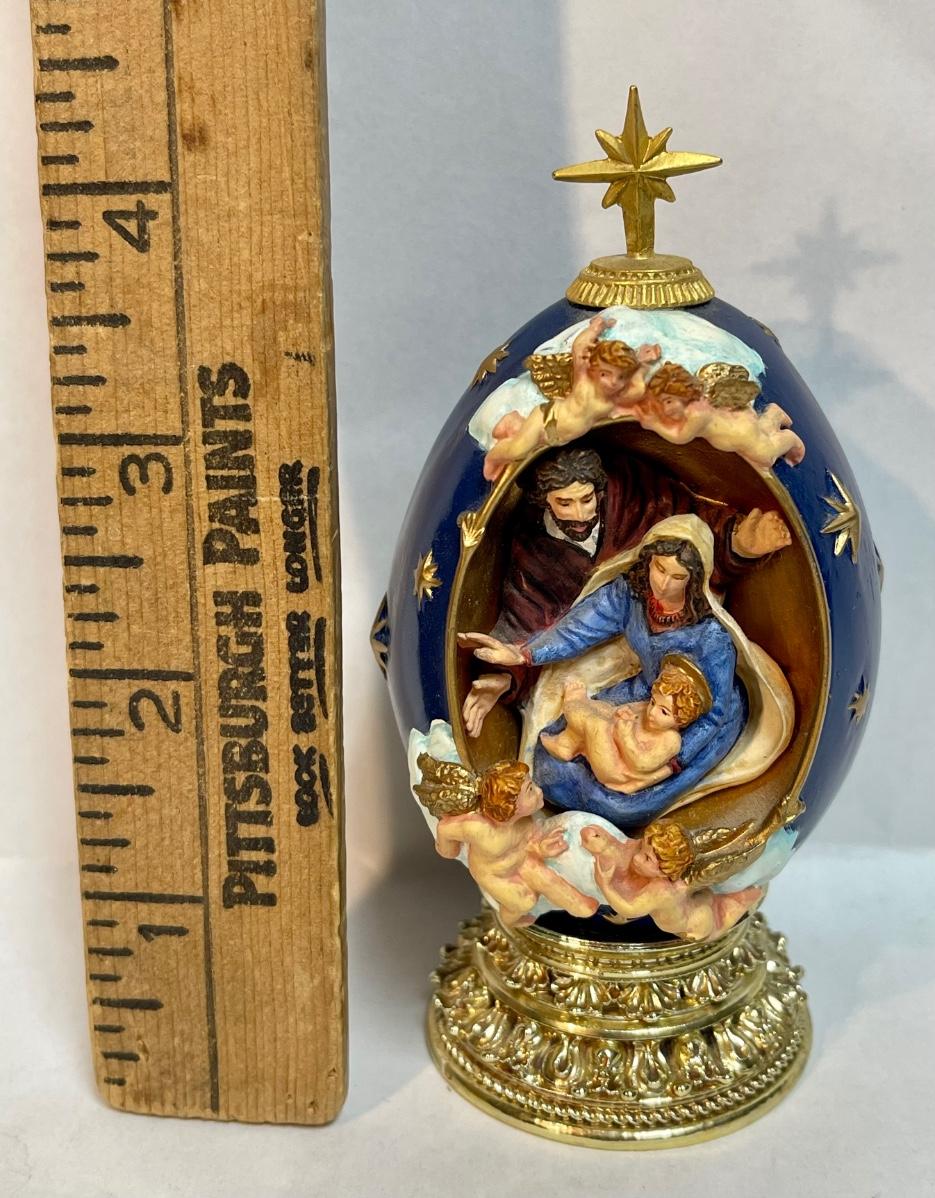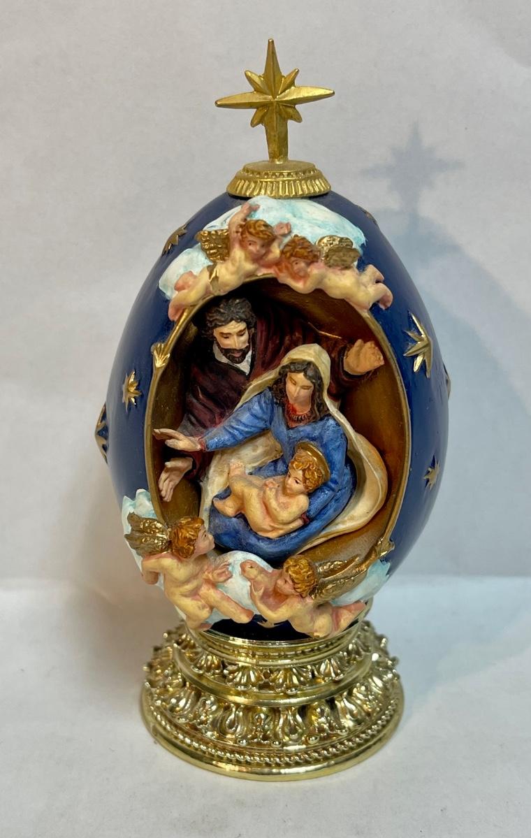 Vintage Nativity Franklin Mint House of Faberge Christmas Blue Egg