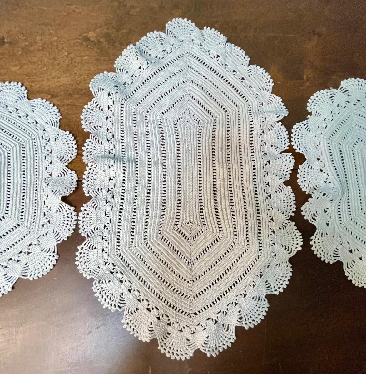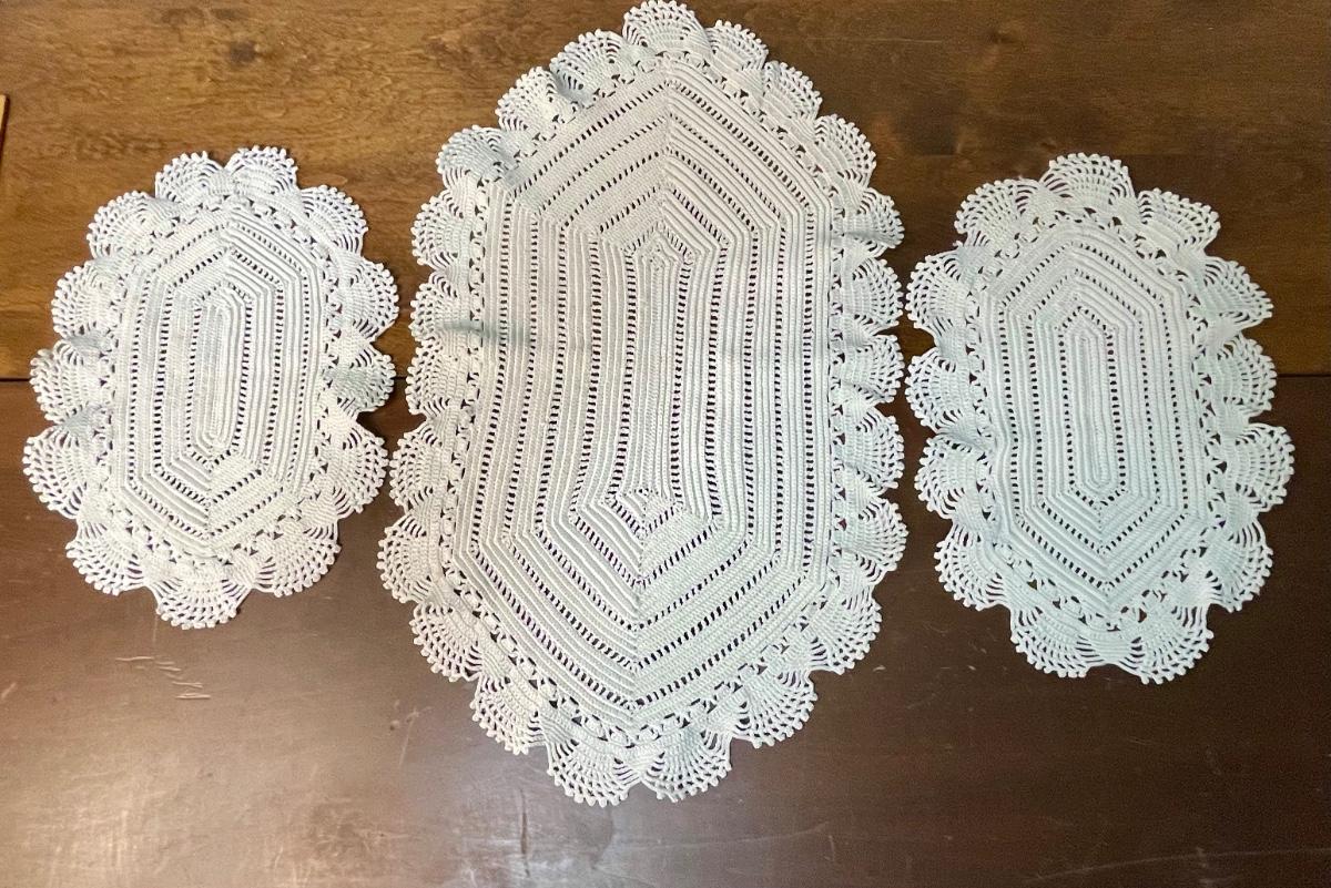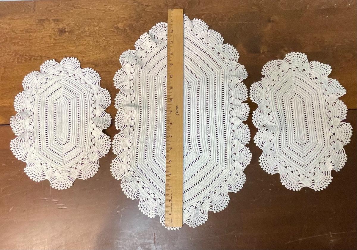 Vintage Linen Lot 2 - 3 piece set, white doillies