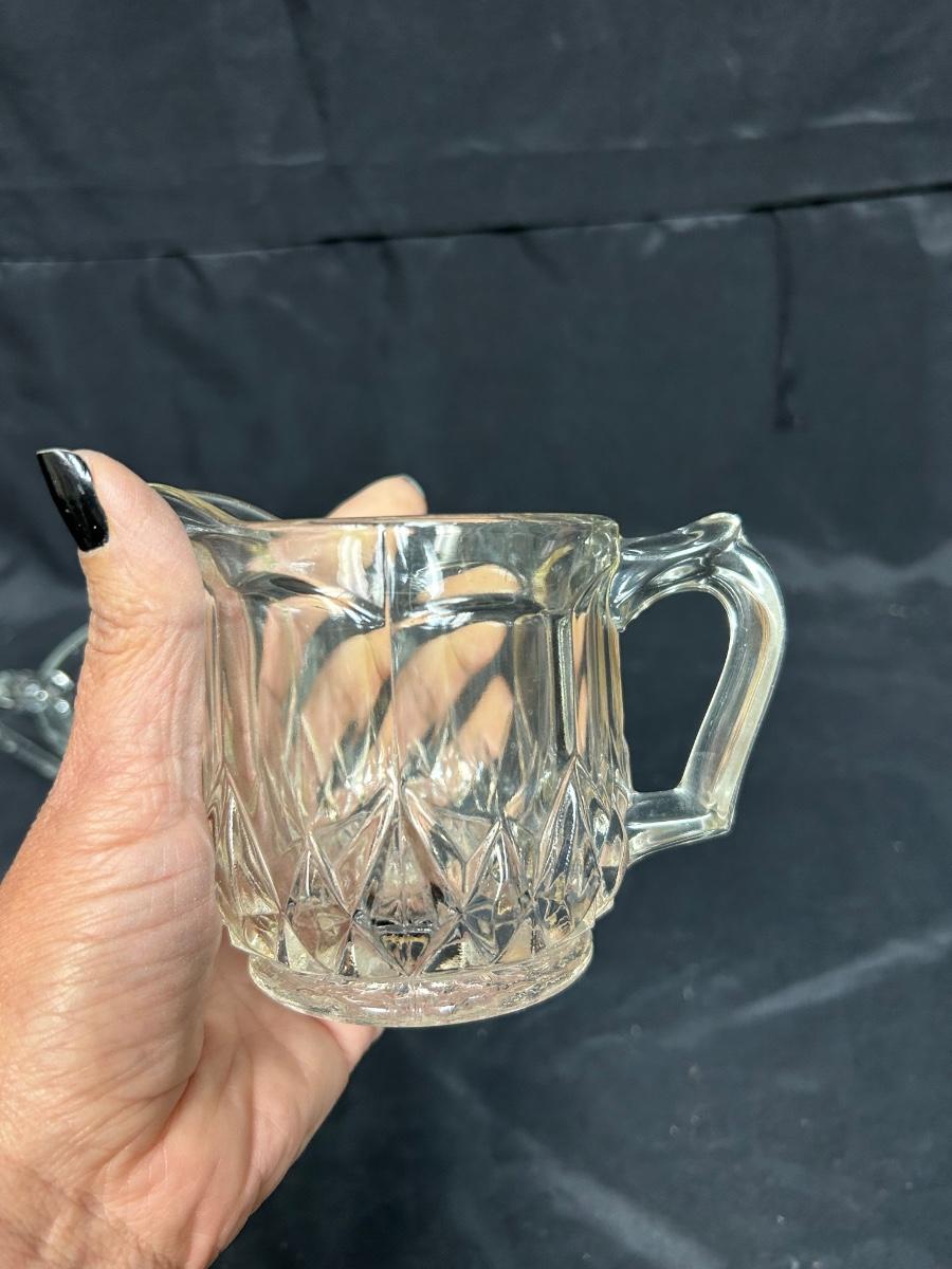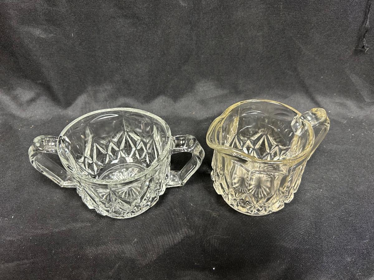 Vintage Clear Pressed Glass Cream and Sugar Set. In good condition. No chips.
