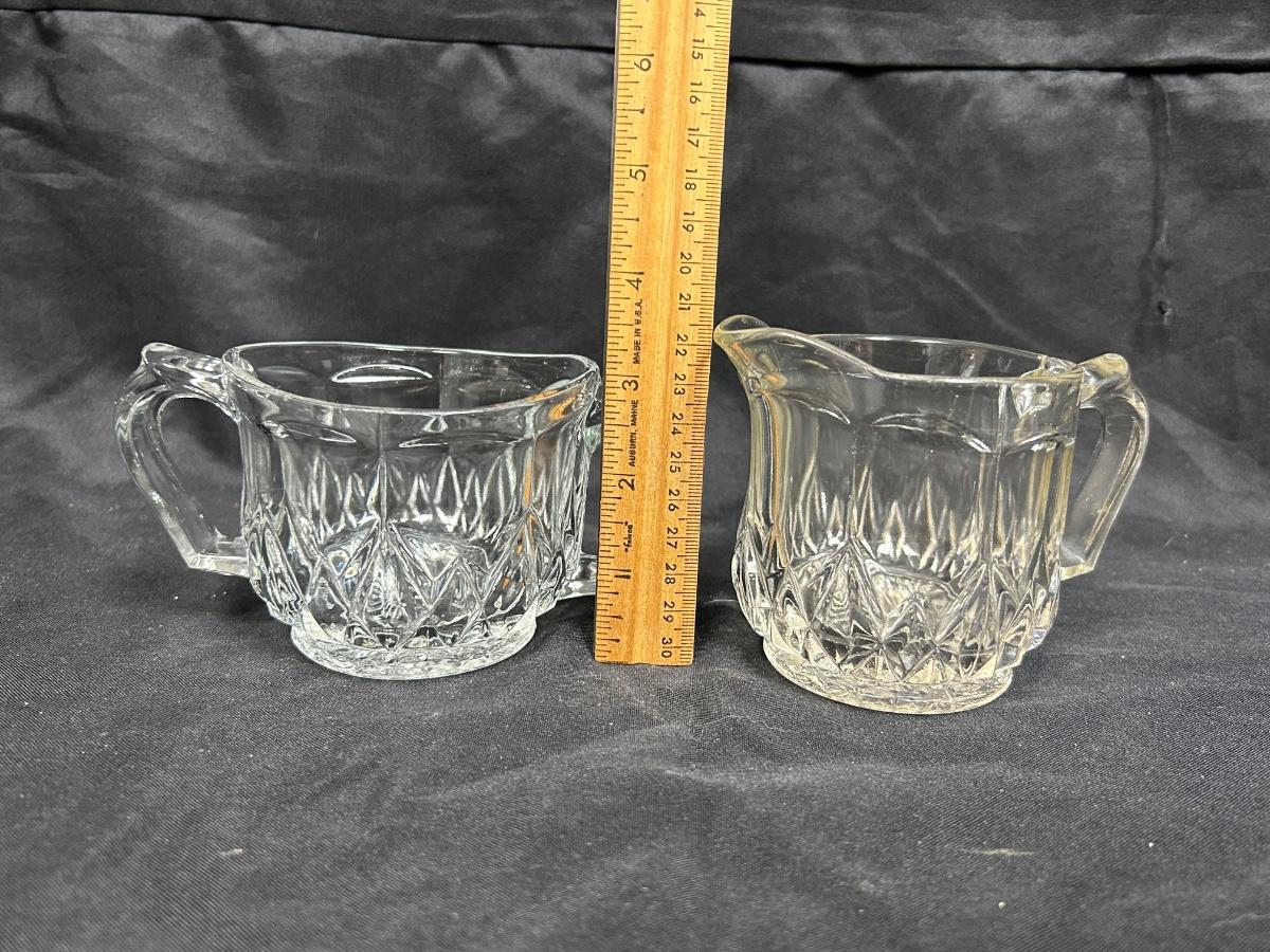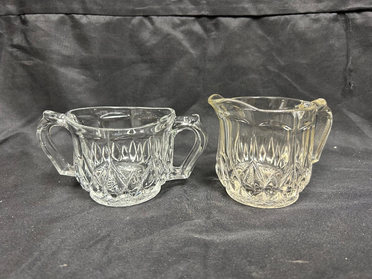 Vintage Clear Pressed Glass Cream and Sugar Set