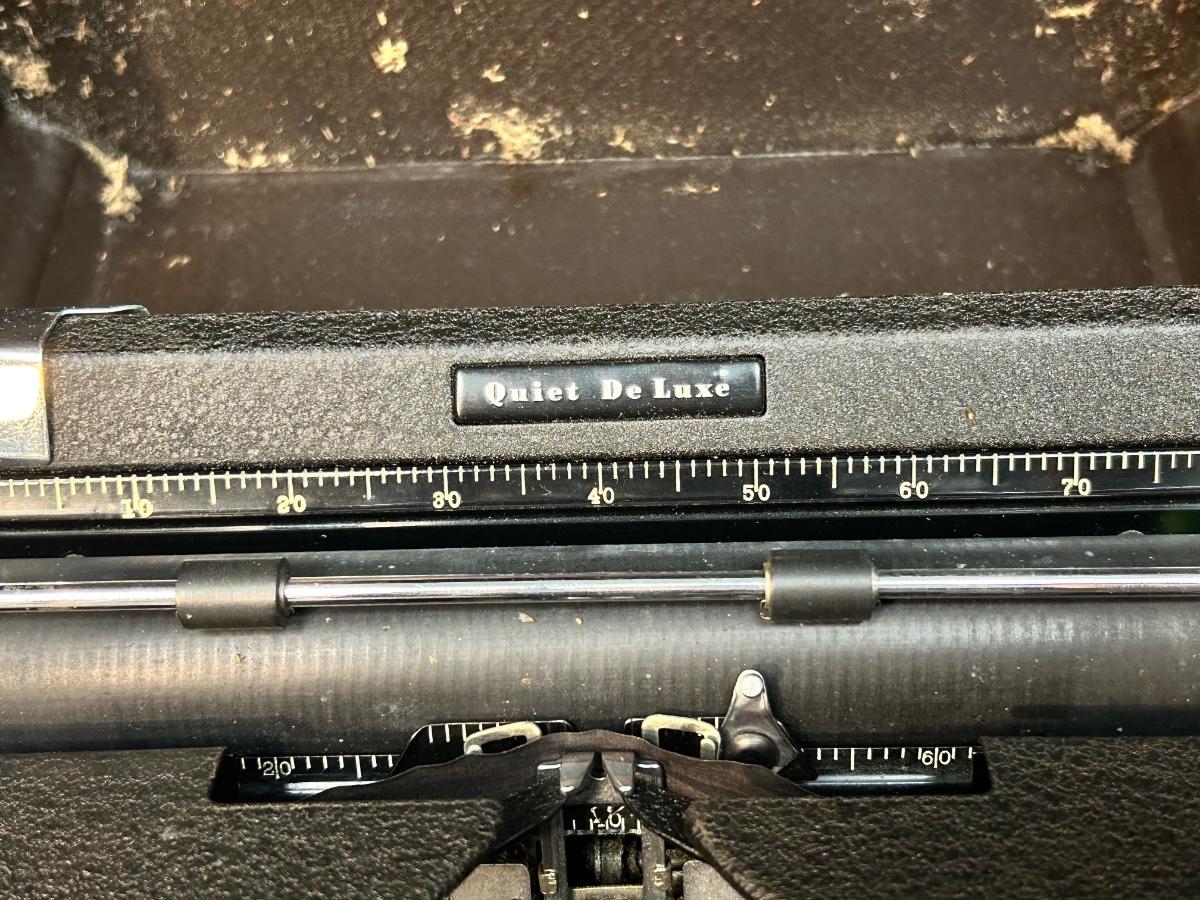 Vintage Royal Quiet De Luxe Typewriter with Carry Case and Manual. In vintage condition. Some of the keys stick when pressed, displays great.