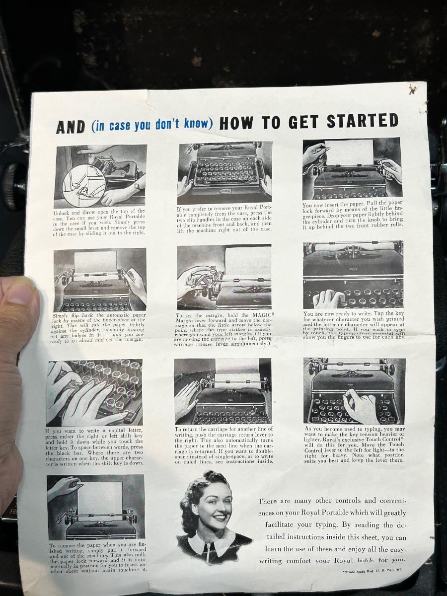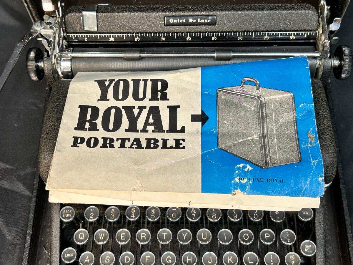 Vintage Royal Quiet De Luxe Typewriter with Carry Case and Manual