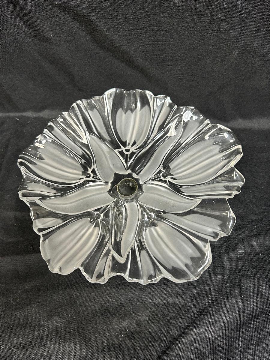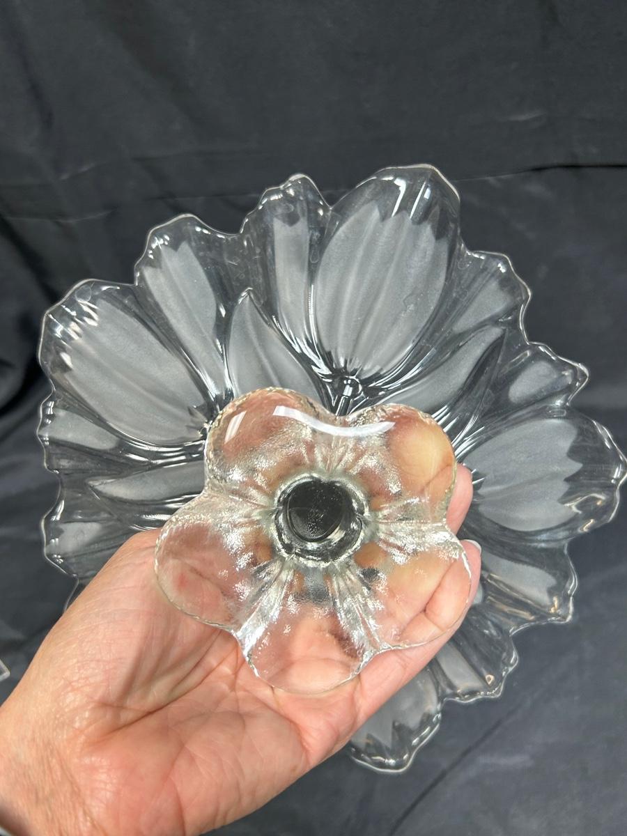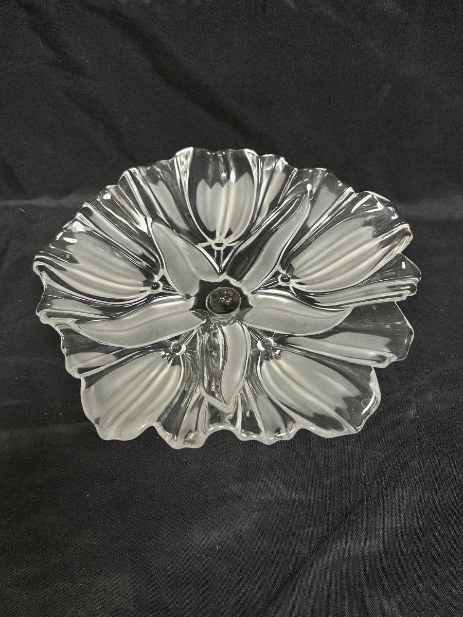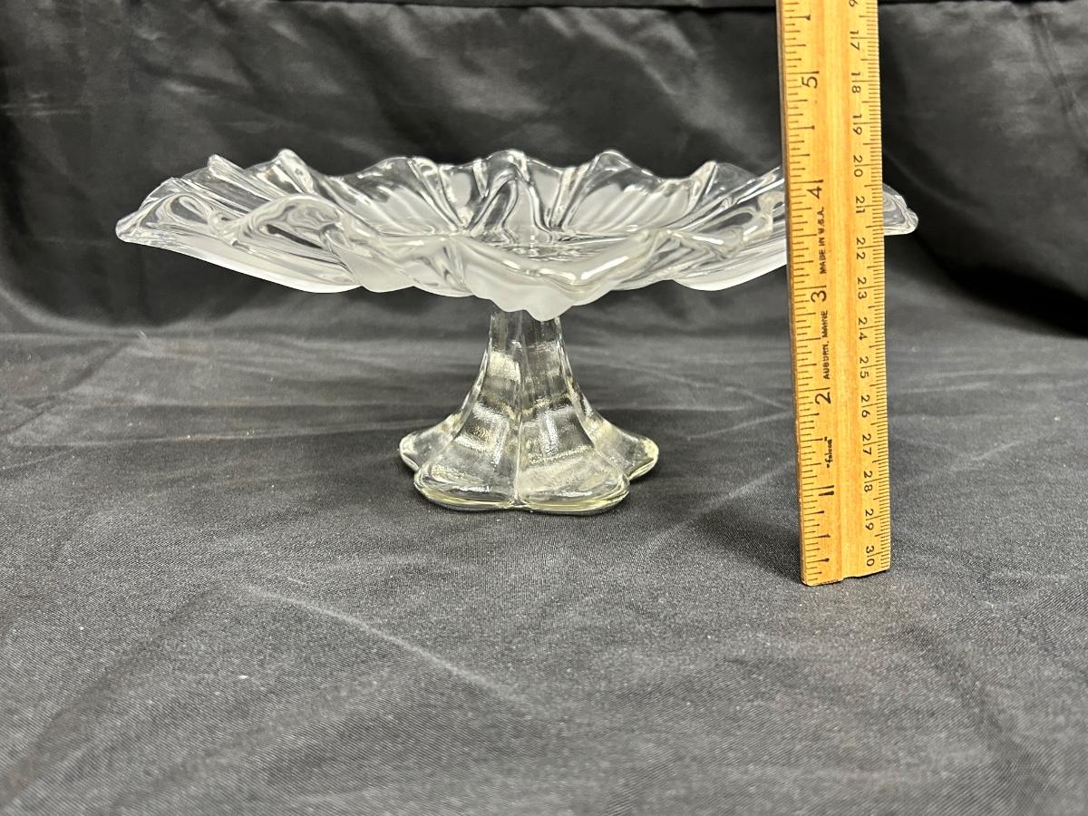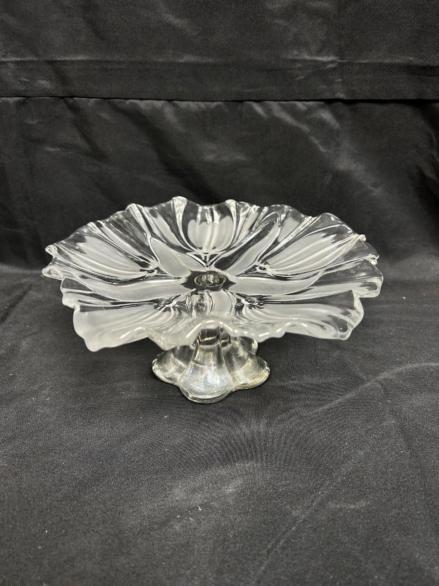 Flower Shaped Footed Pedestal Frosted Glass Crystal Bon Bon Serving Plate