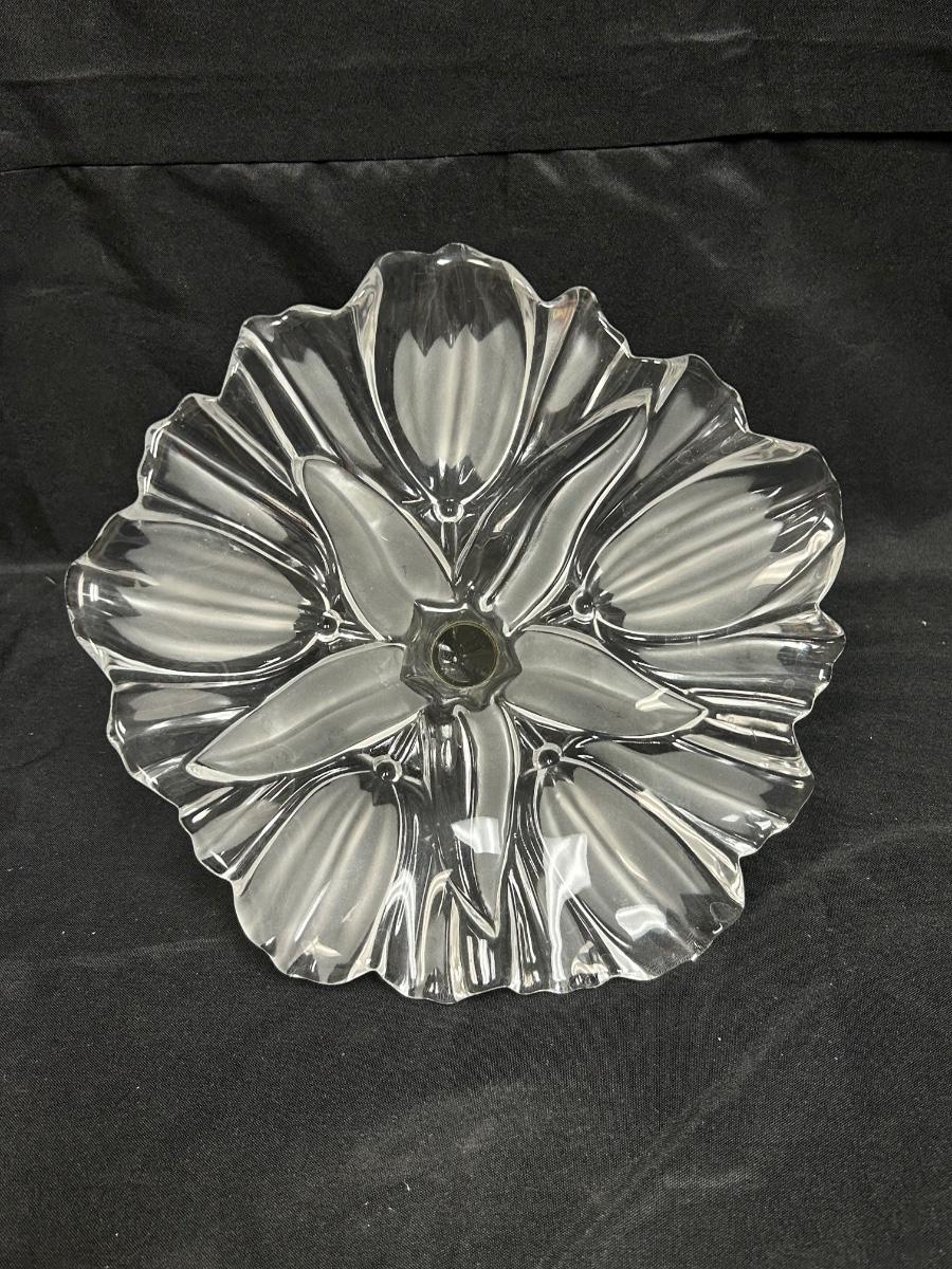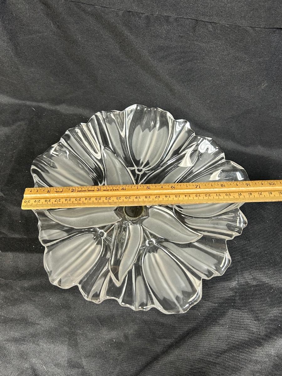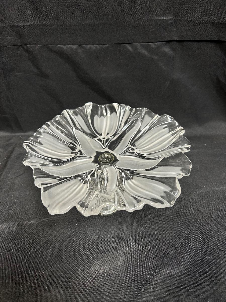 Flower Shaped Footed Pedestal Frosted Glass Crystal Bon Bon Serving Plate. In good condition. Believe to be Mikasa.