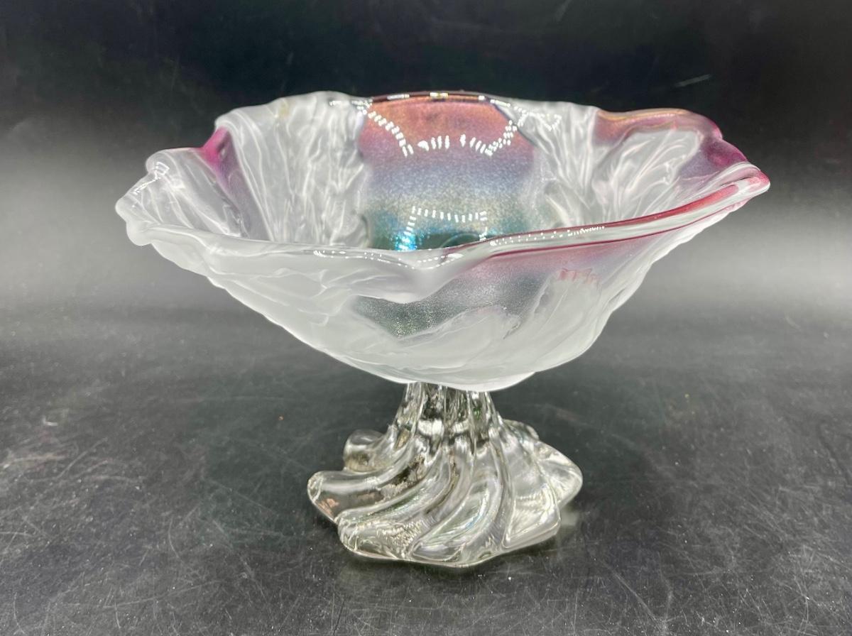 Swirl Glass Candy Dish Fruit Bowl on Pedestal