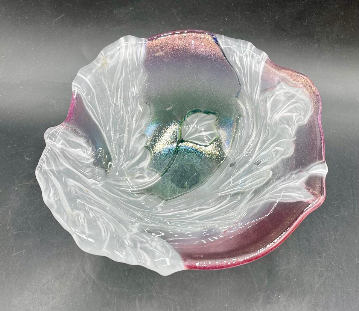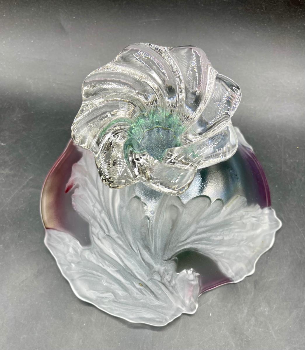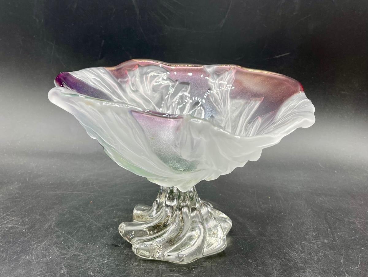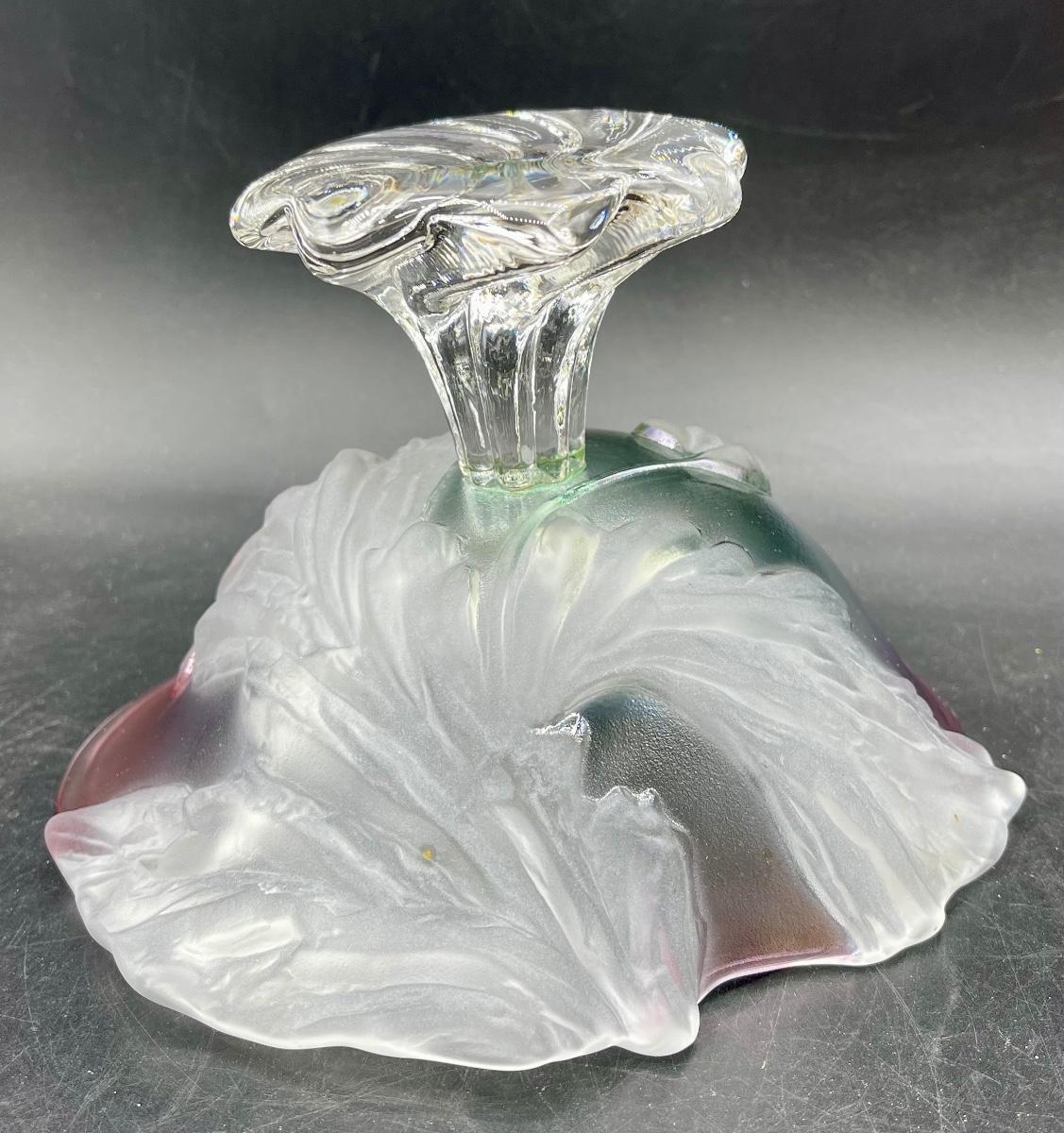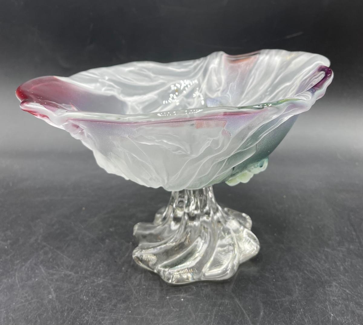 Clear and frosted glass with green and red color highlights, In good condition, no chips or cracks.