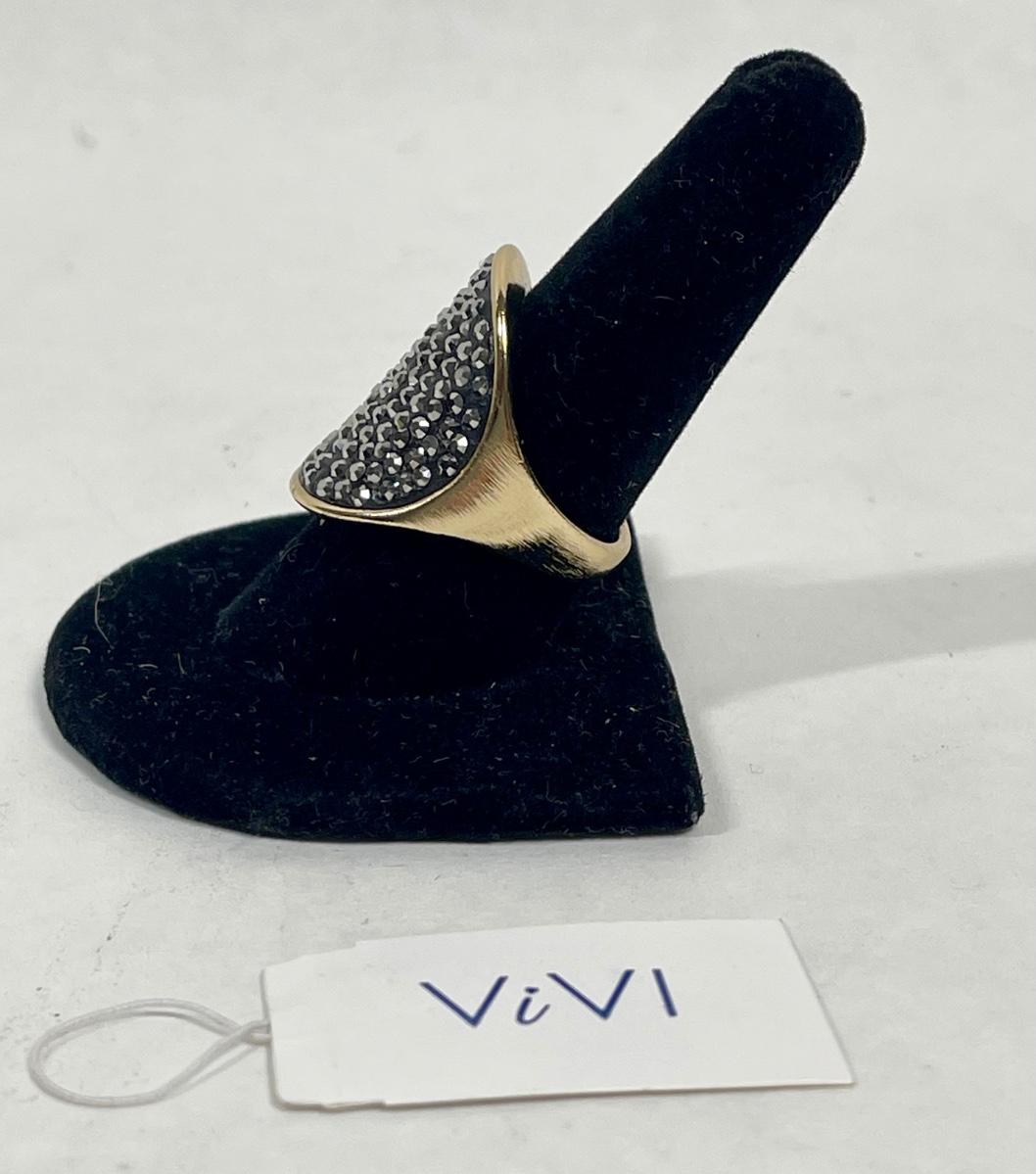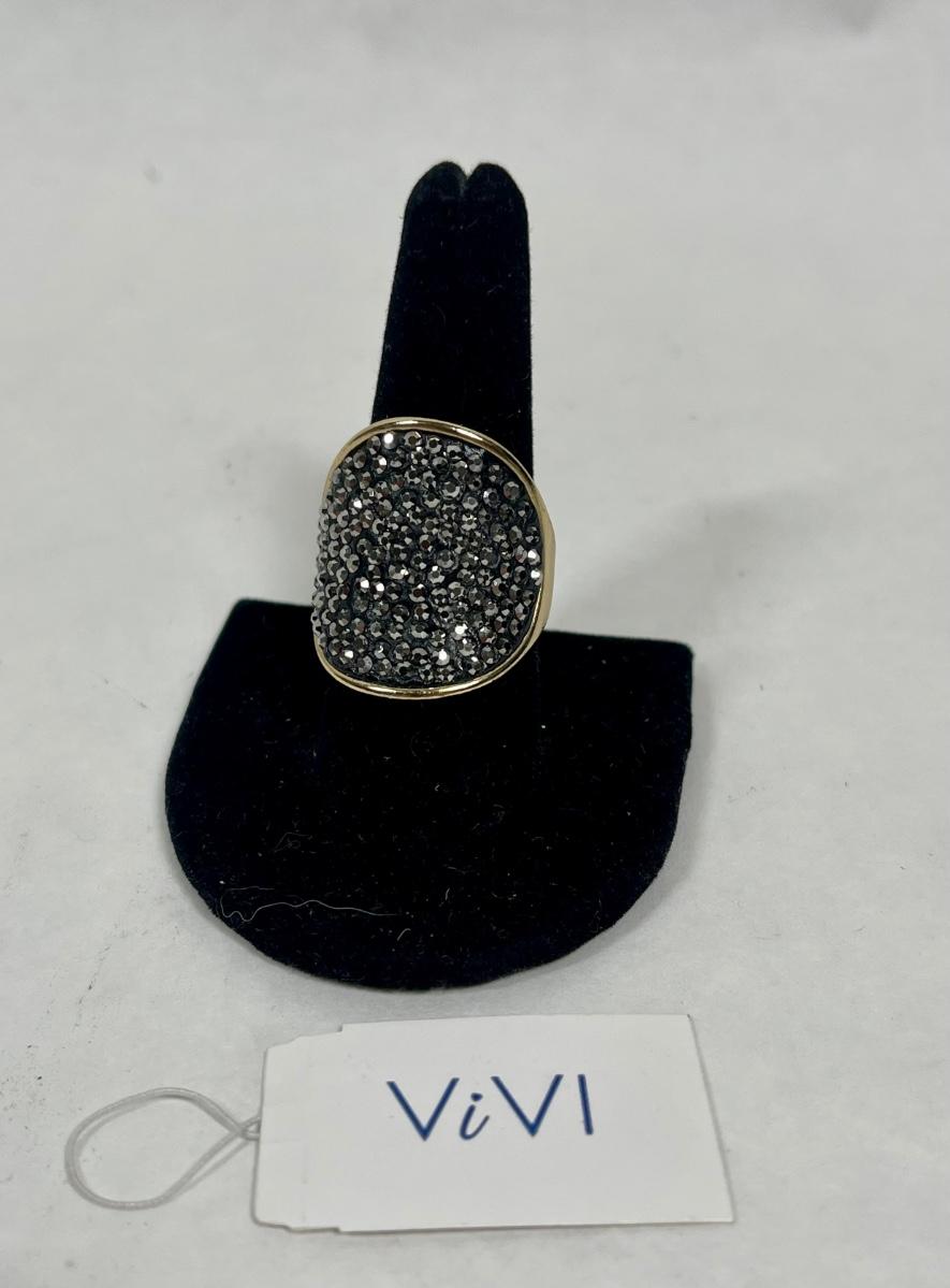 Vivi Silver-tone Black & Clear Costume Fashion Jewelry Ring