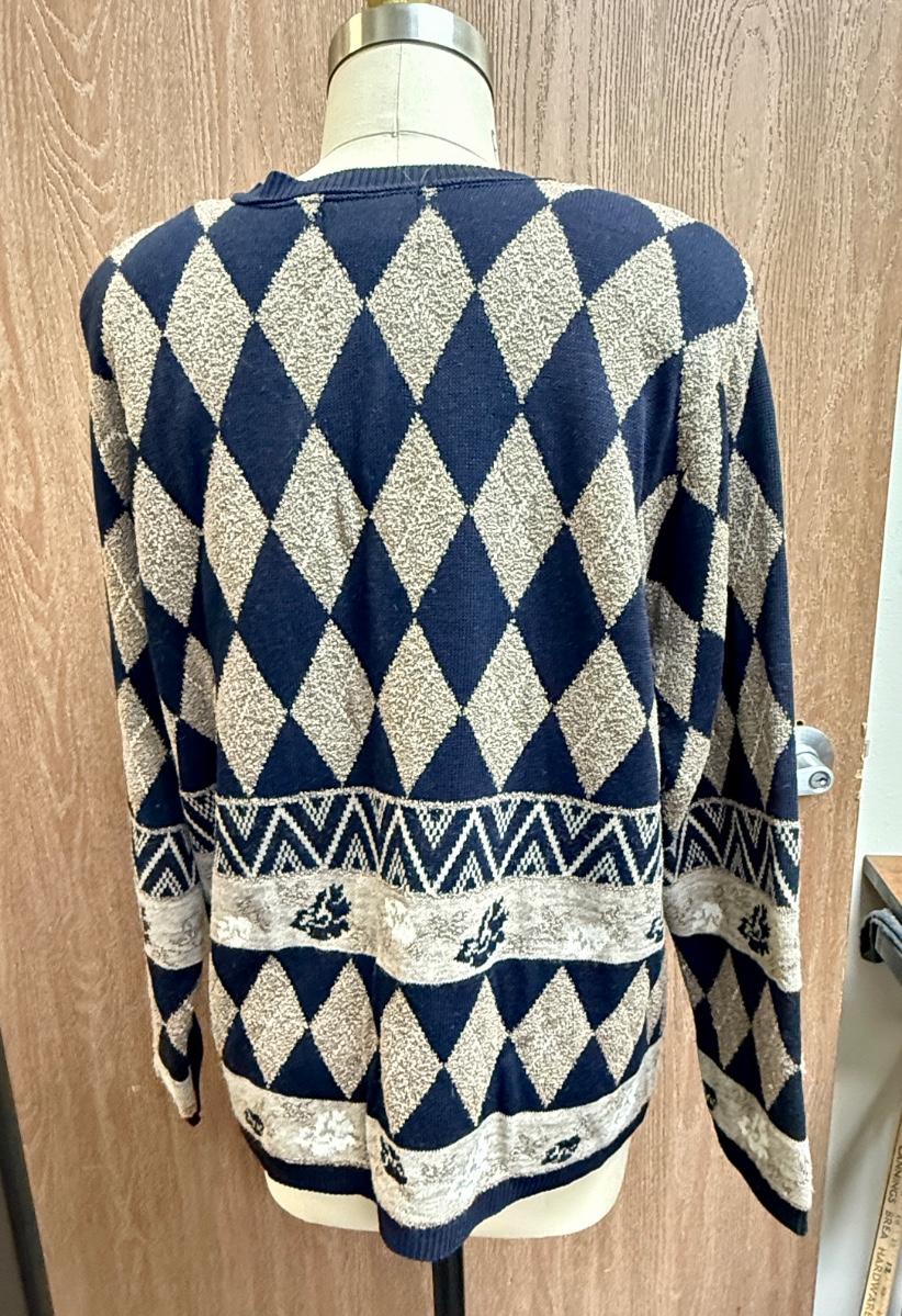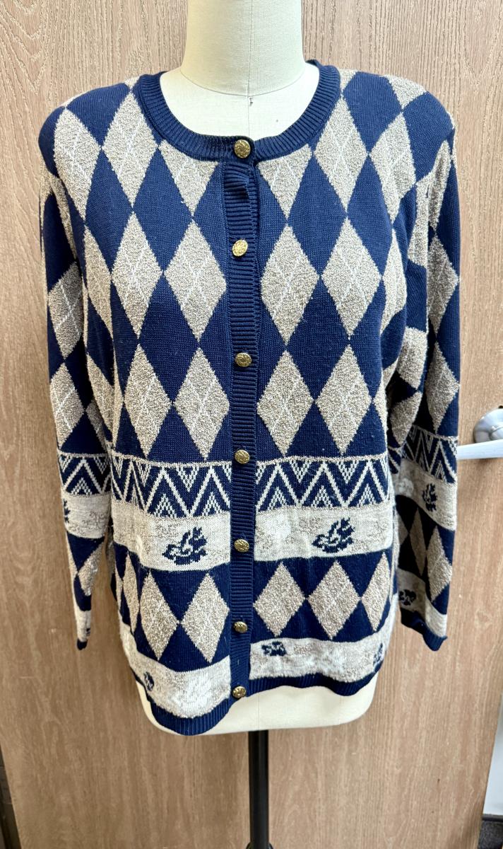 Alfred Dunner Argyle Cardigan Sweater size L large made in USA