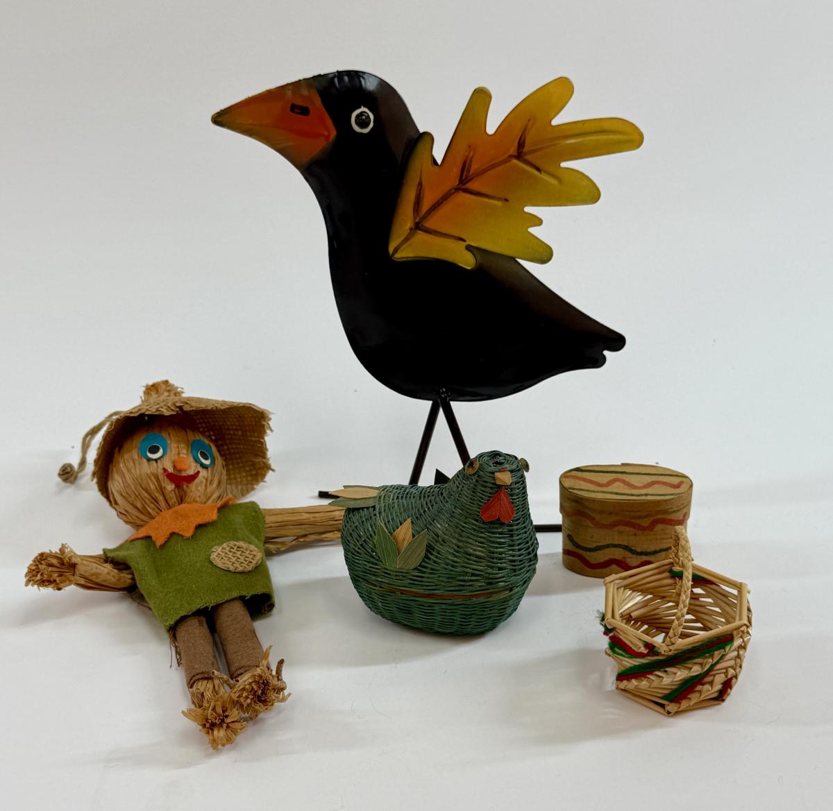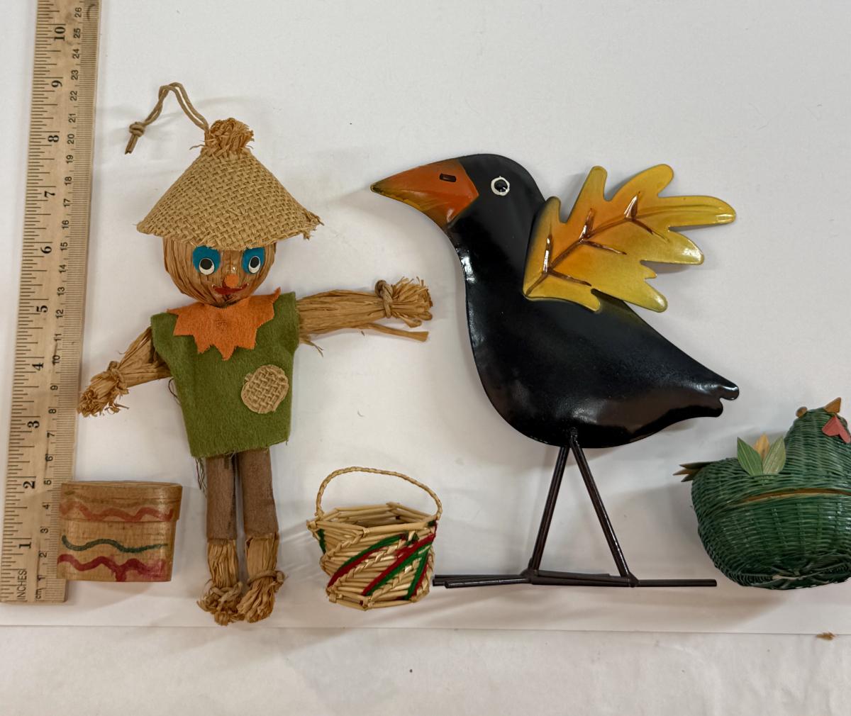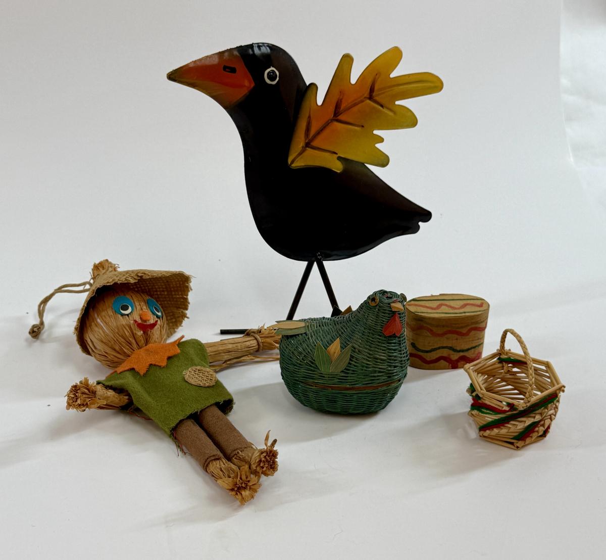 Includes scarecrow, crow, chicken. basket, and more.