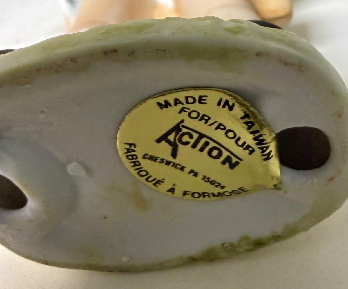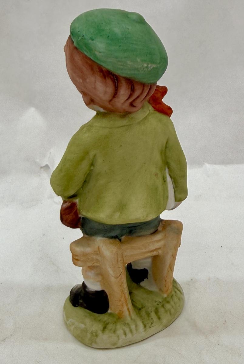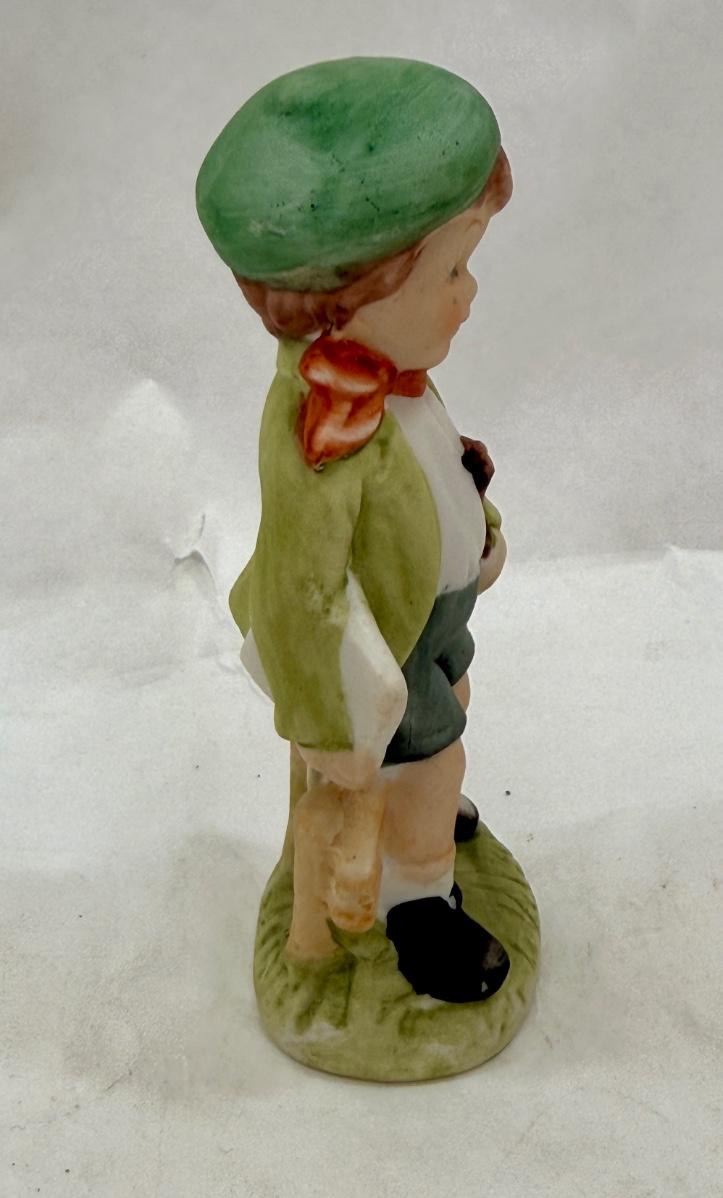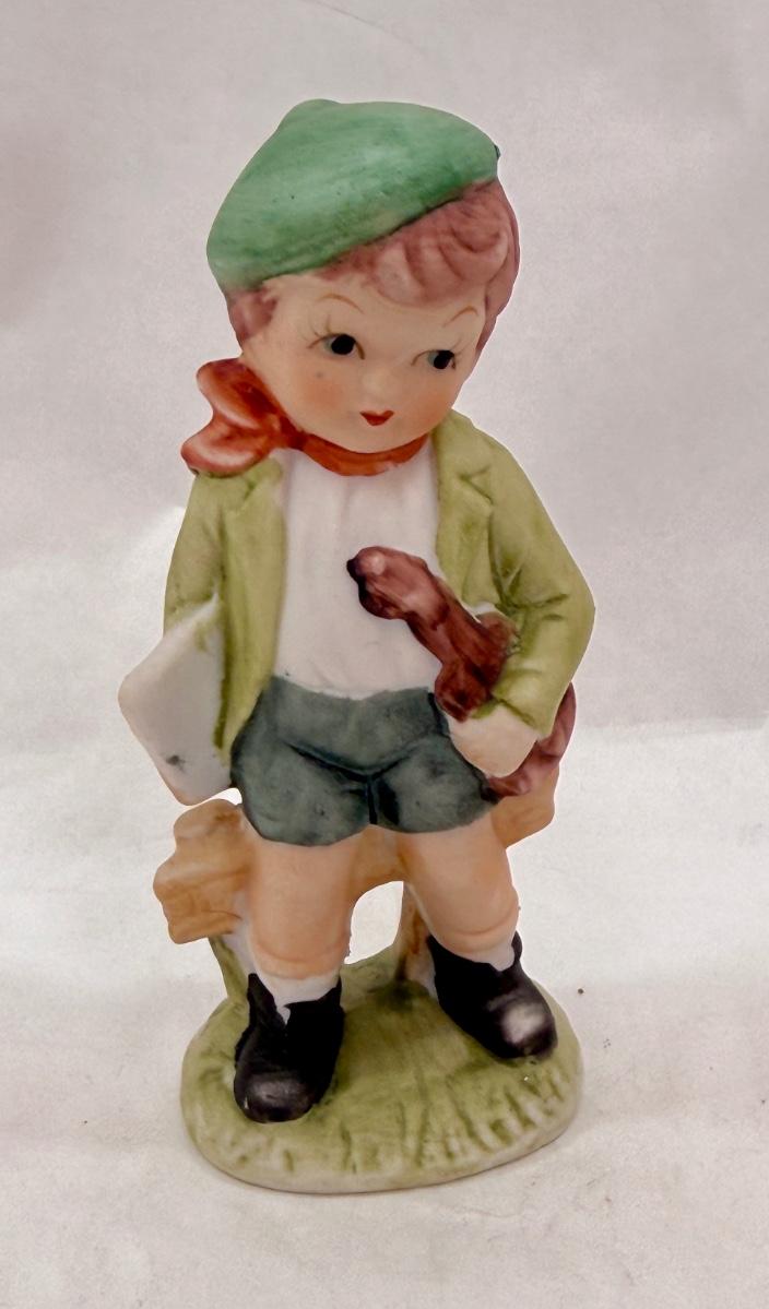 Boy holding sheet music and a violin. Bisque ceramic made in Taiwan for Action. Good condition, approx. 4.5" tall.