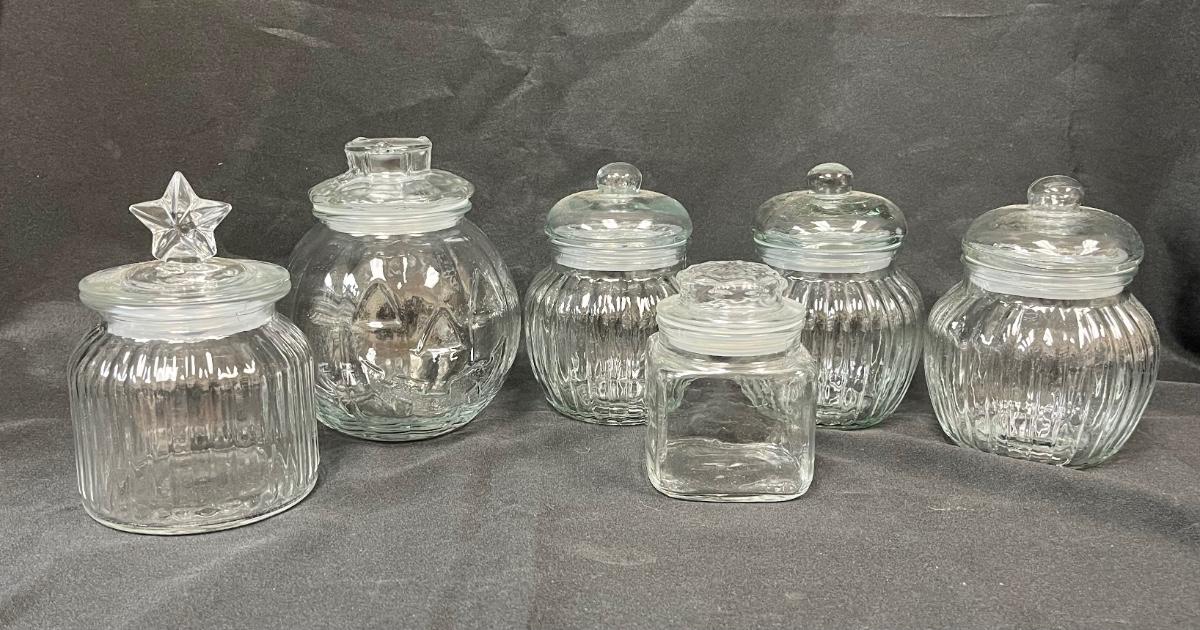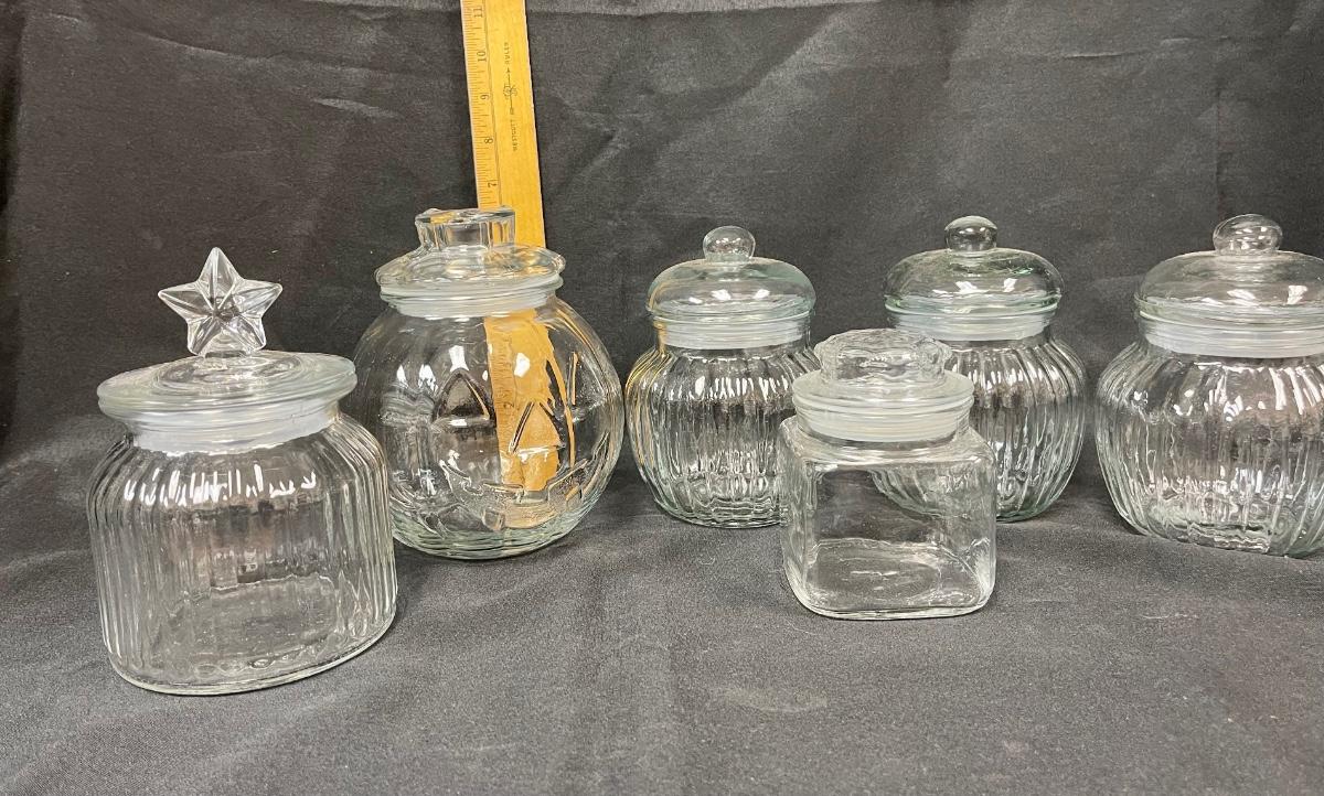 Clear Glass Anchor Hocking Apothecary Jars Lot canister vintage kitchen decor