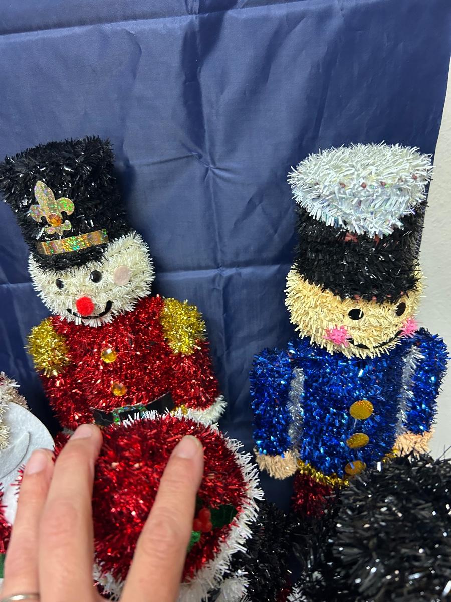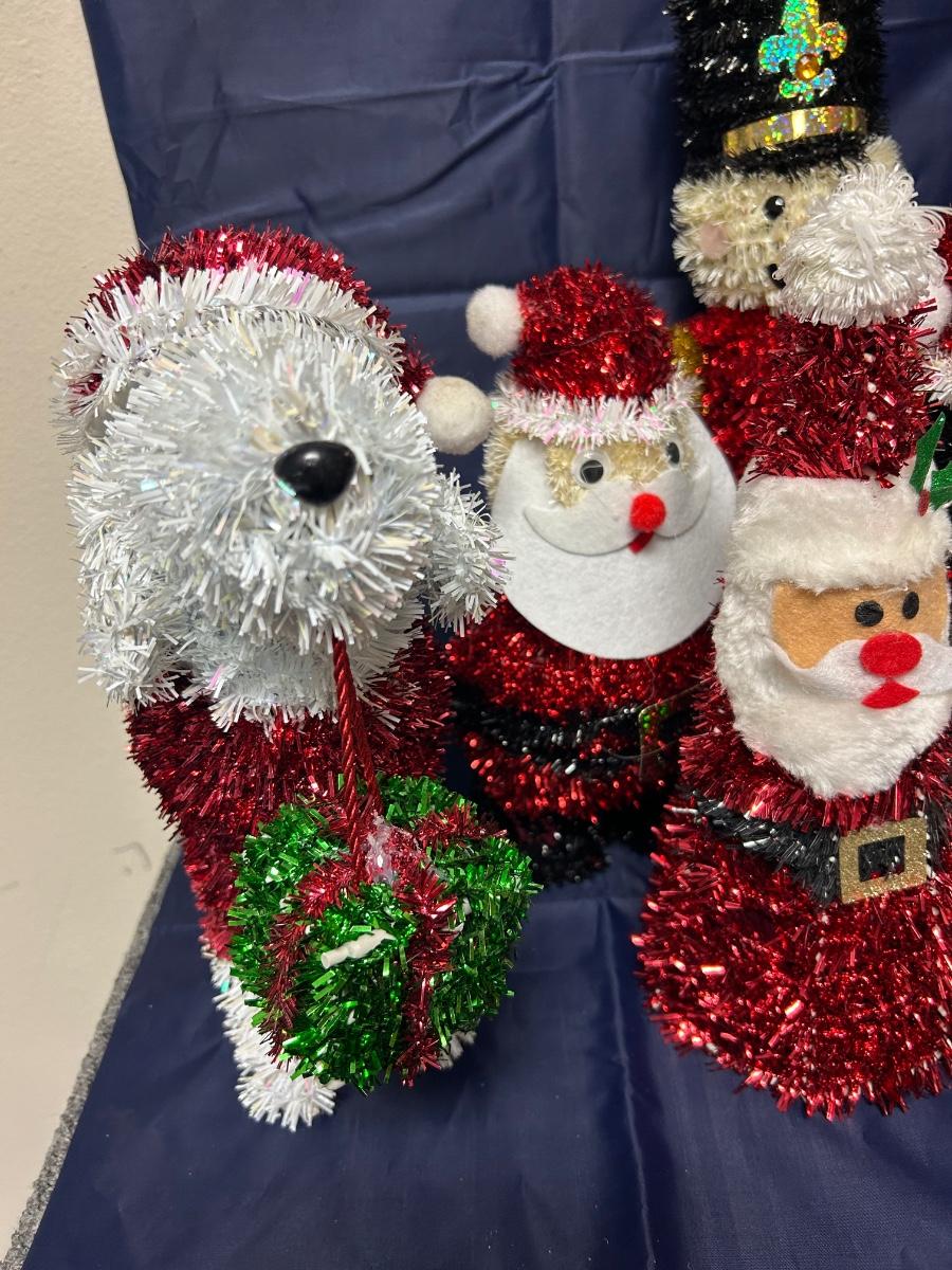 Christmas Foil Tinsel Holiday Decor. Plastic frames with garland like tinsel covering.