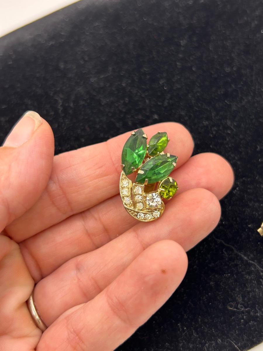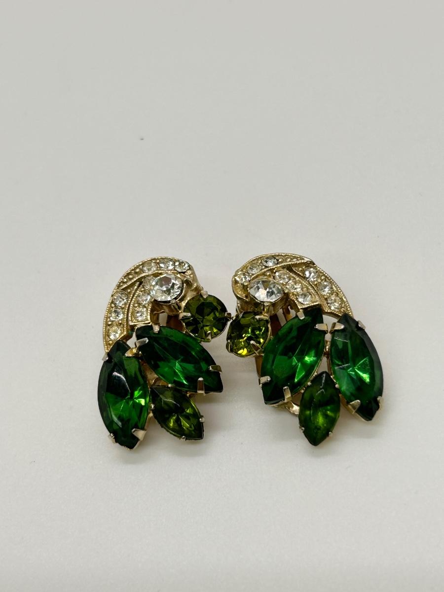 Pair of Vintage Emerald Green Rhinestone Clip On. In good condition, no missing stones.