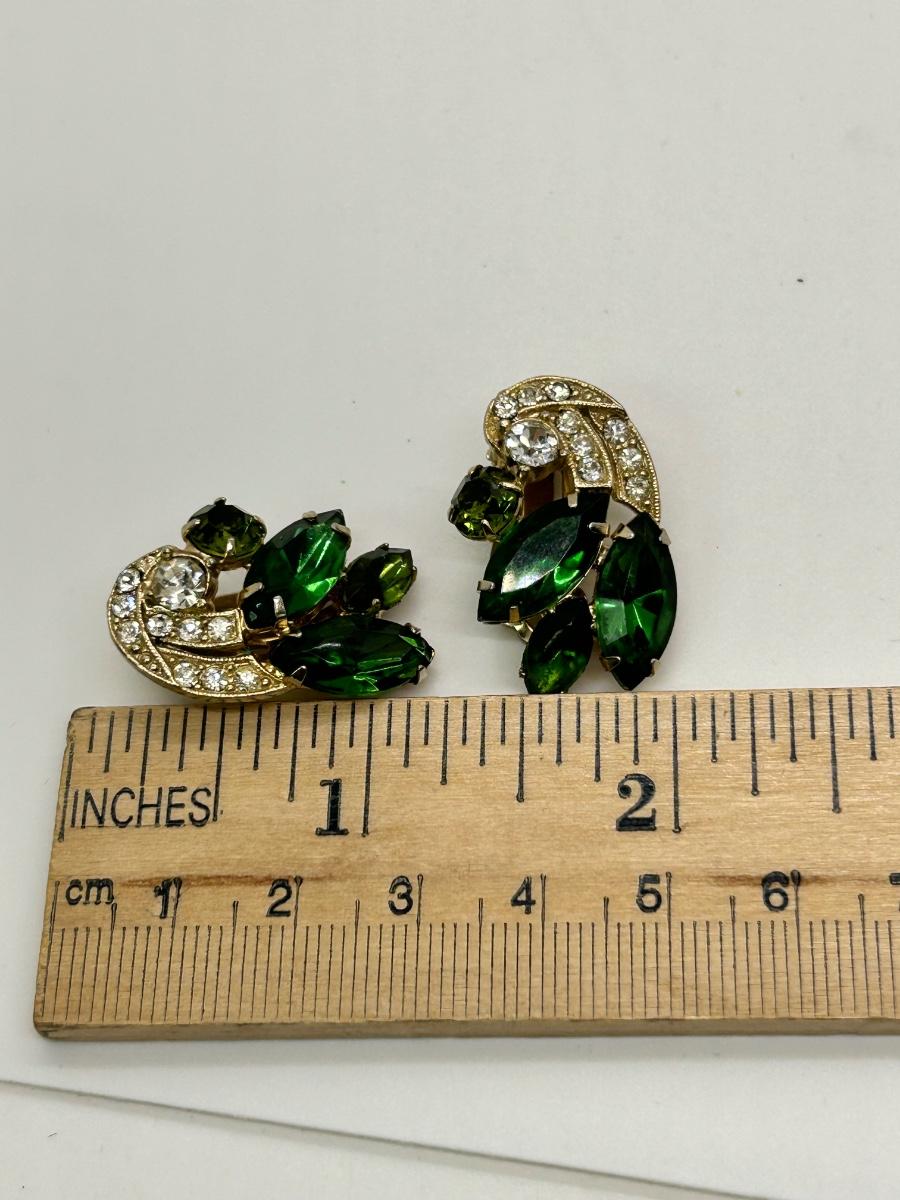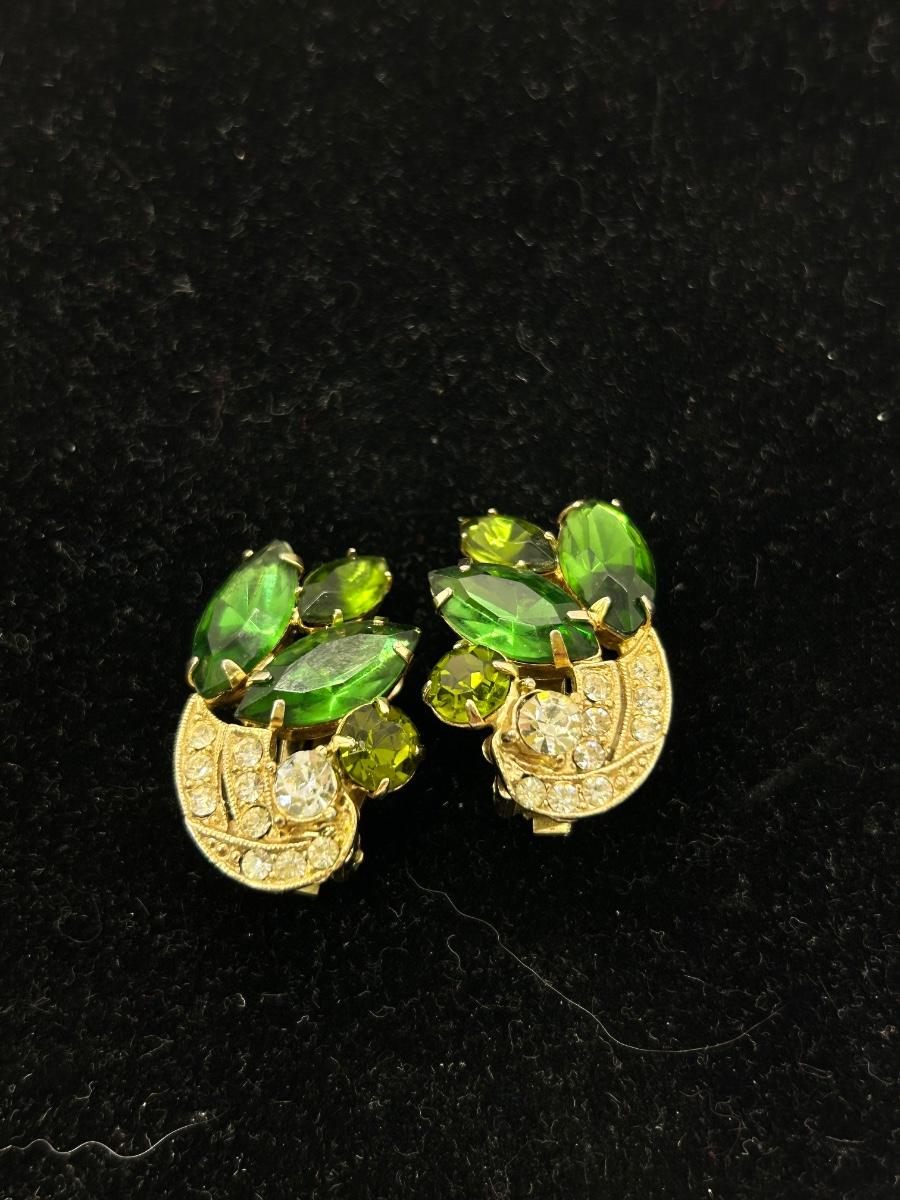 Pair of Vintage Emerald Green Rhinestone Clip On
