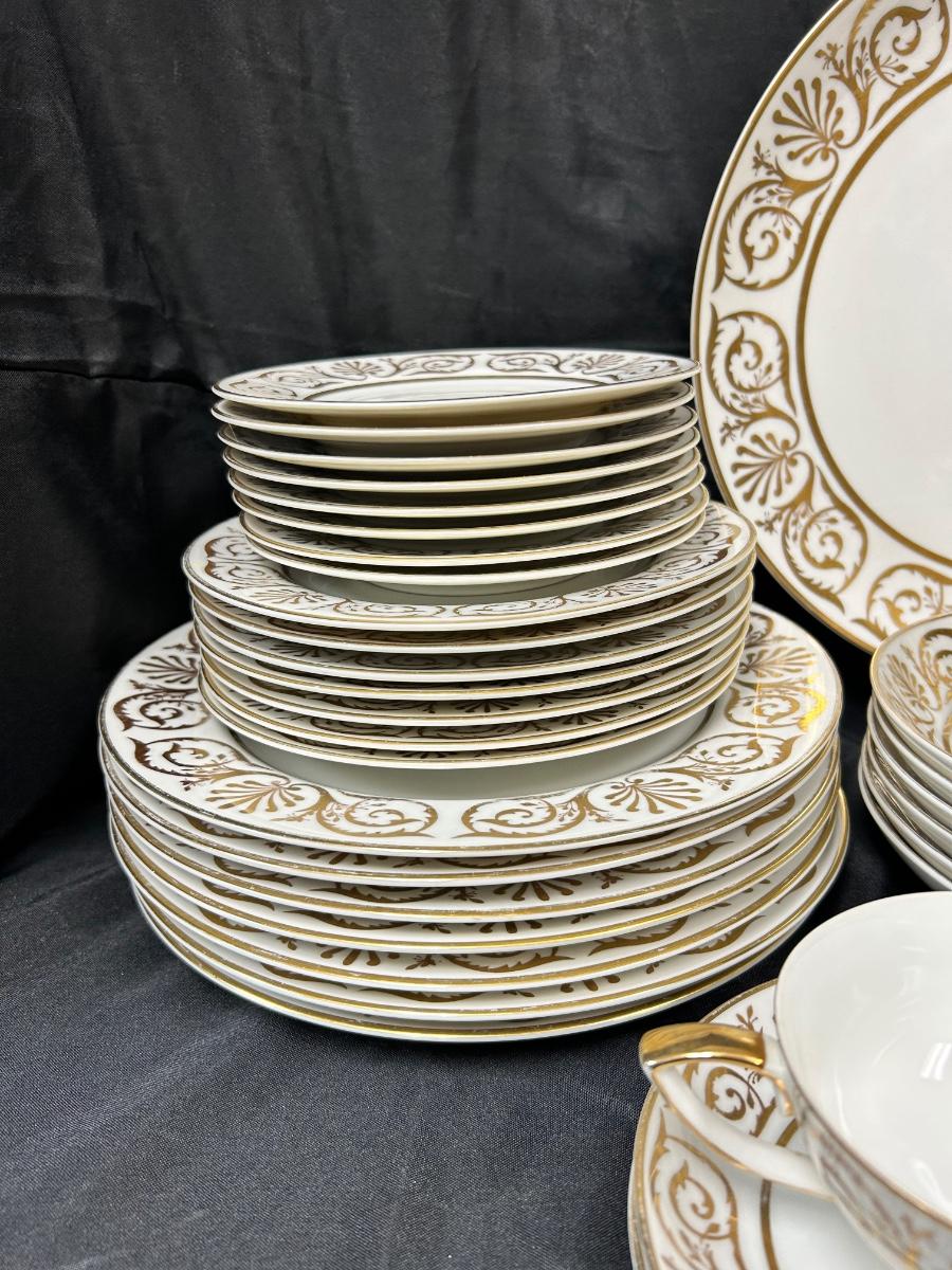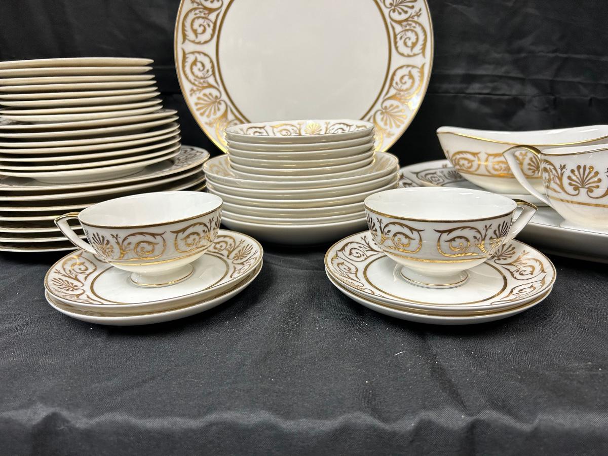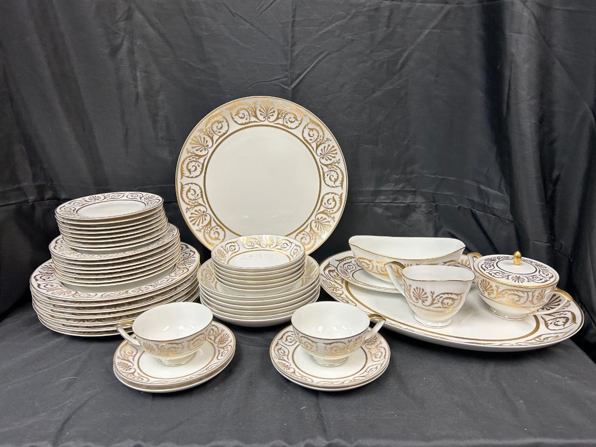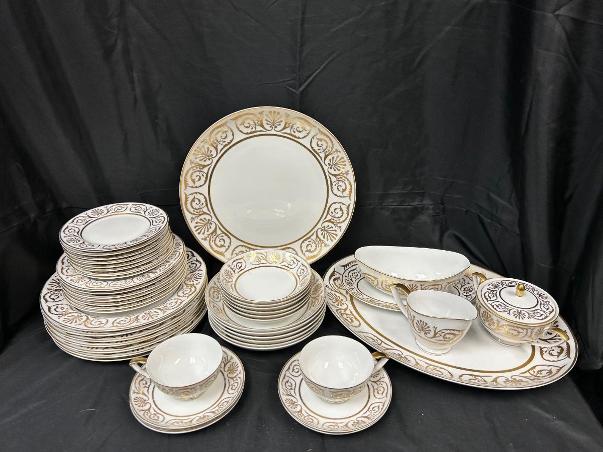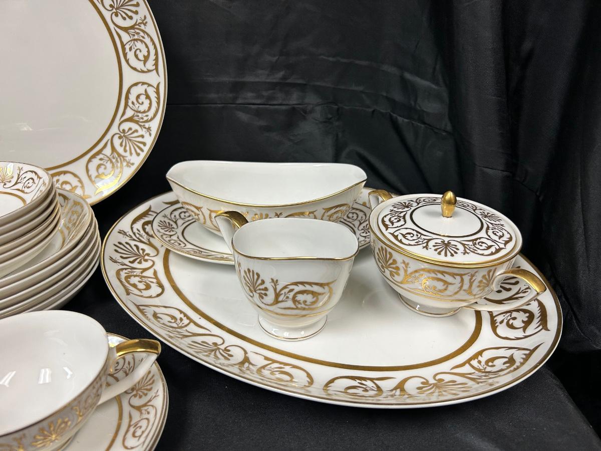 Vintage White and Gold Palazzo China Dishware Dish Set Anthemion 8271 Pattern Japan