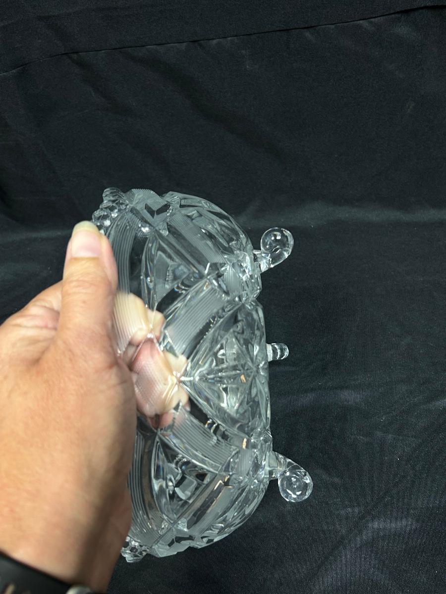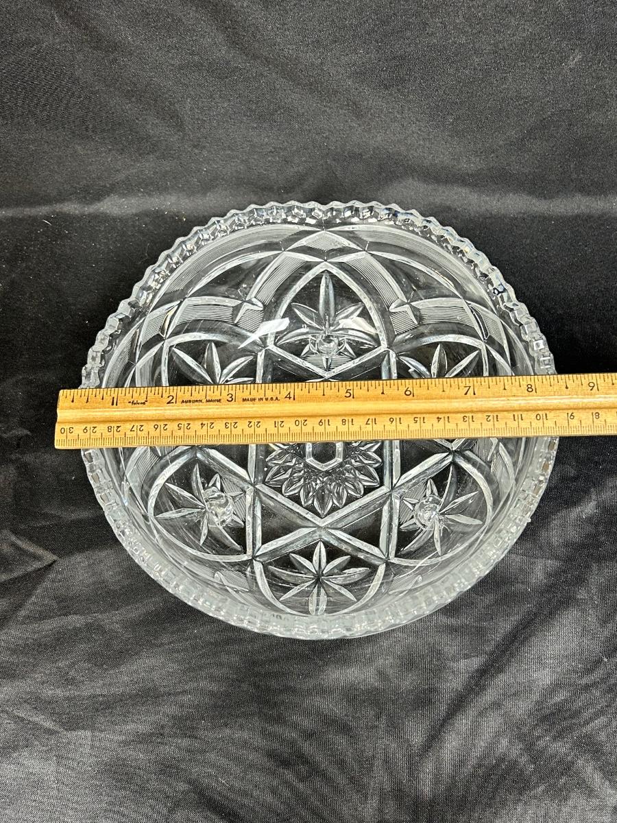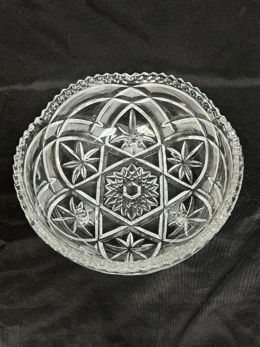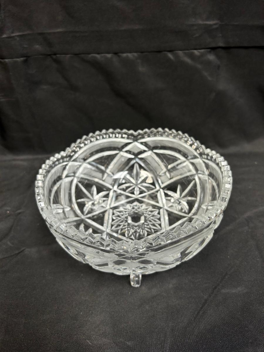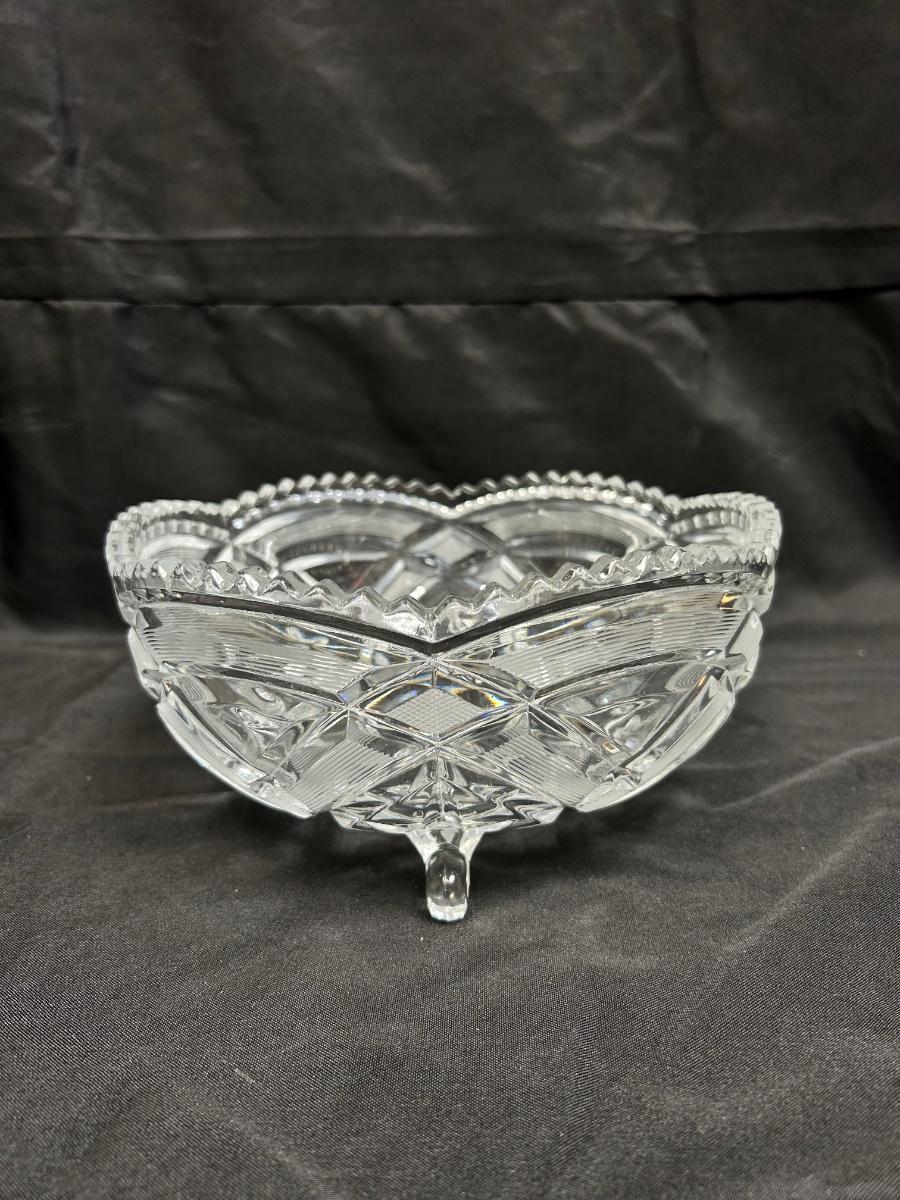 Small Sawtooth Footed American Brilliant Cut Glass Crystal Bowl Serving Dish