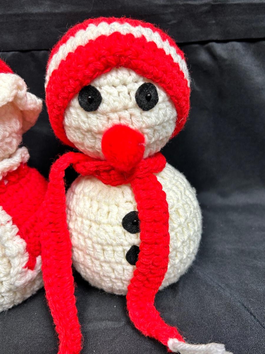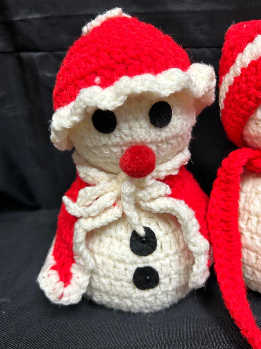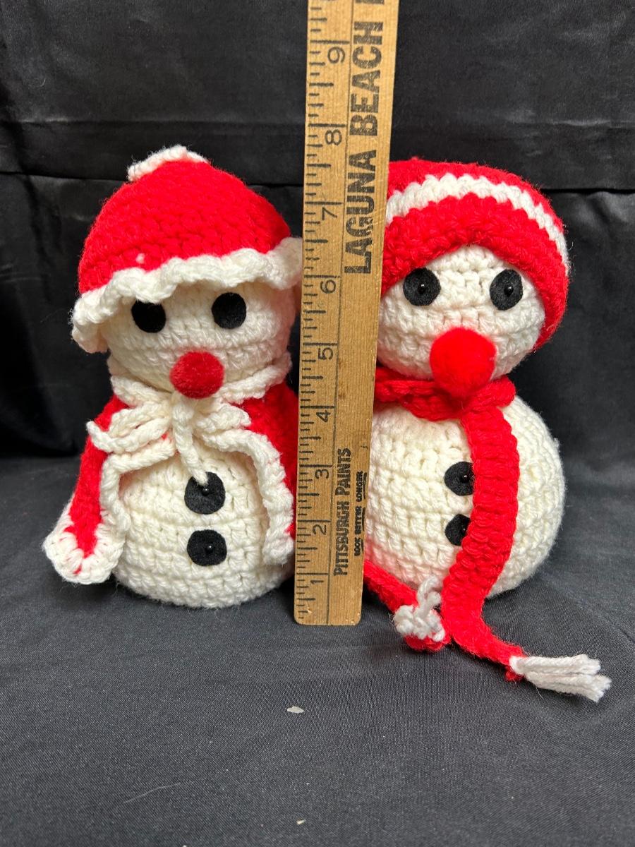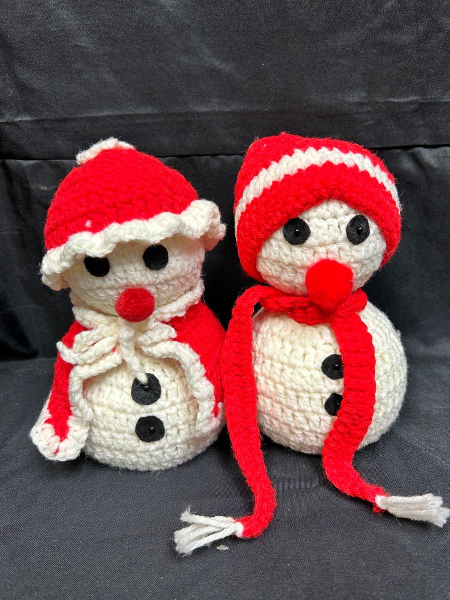 Pair of Vintage Crochet Yarn Christmas Holiday Snowmen Dolls