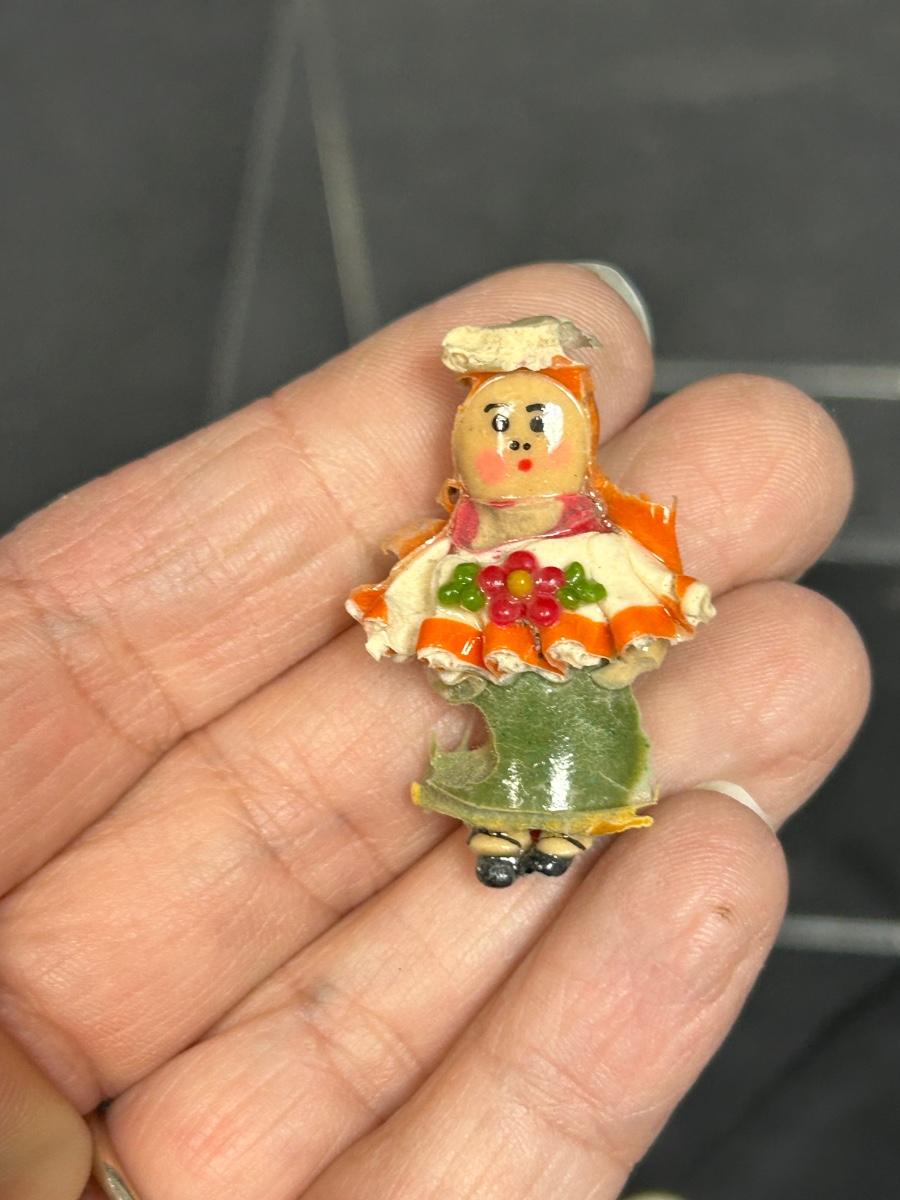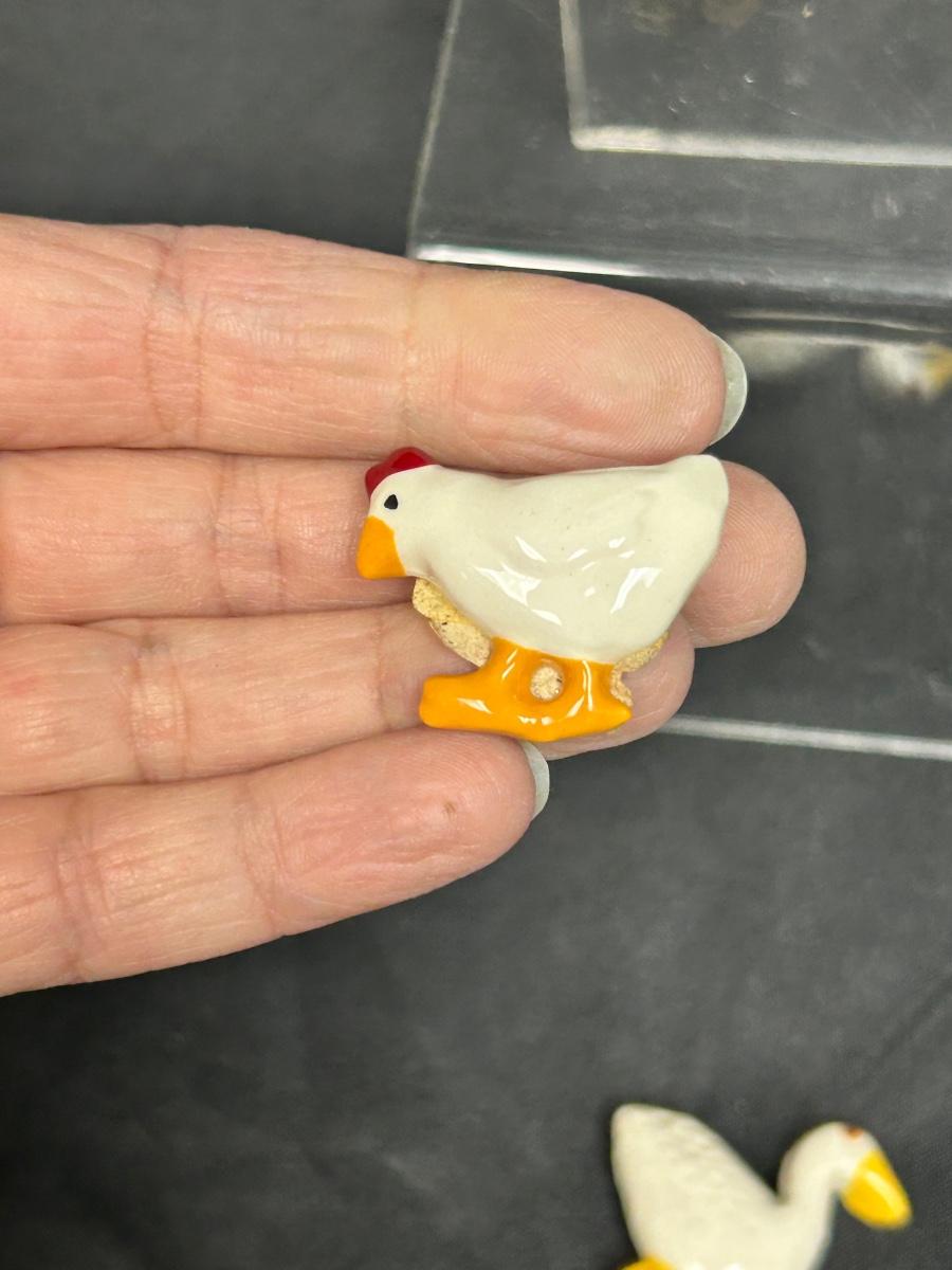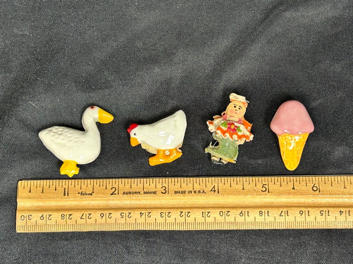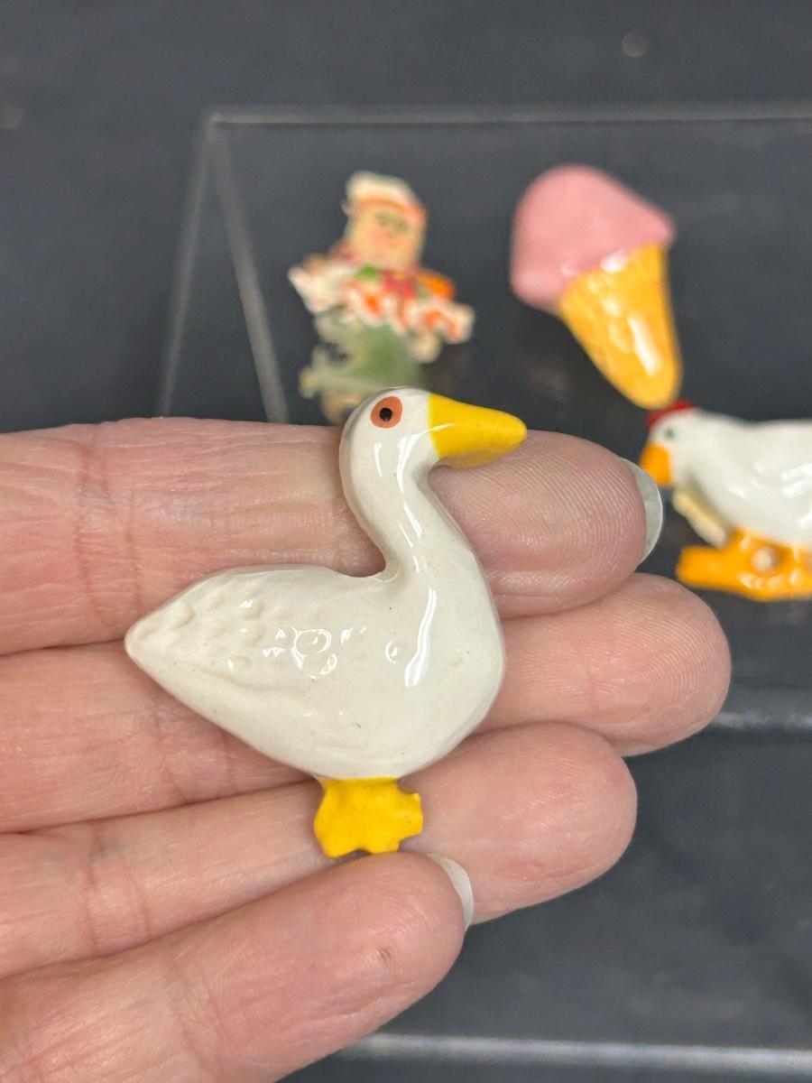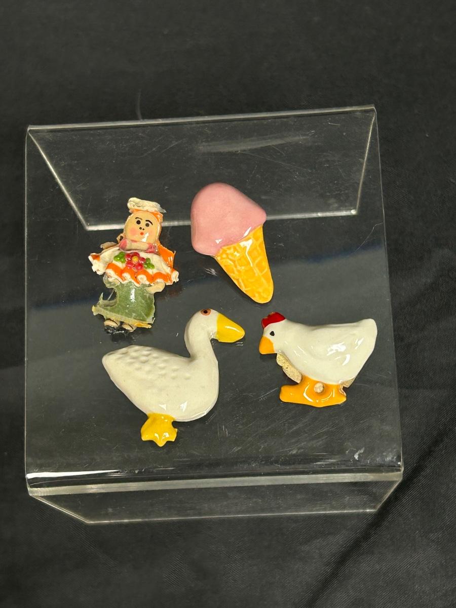 Lot of Four Painted Plaster Lapel Pins Duck Hen Ice Cream Cone Girl