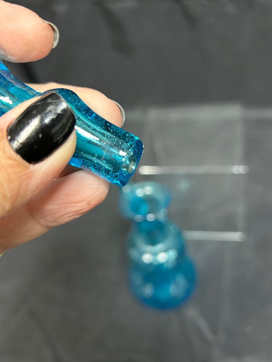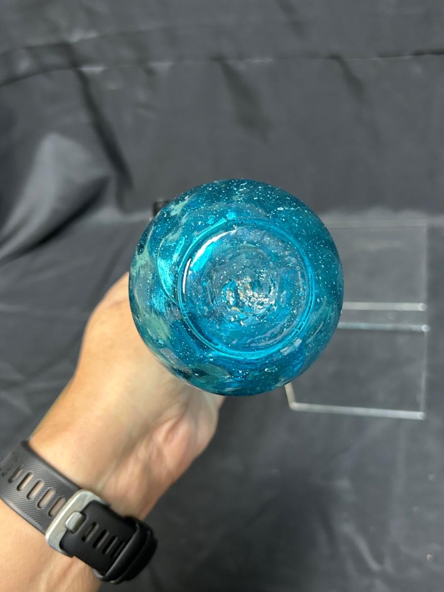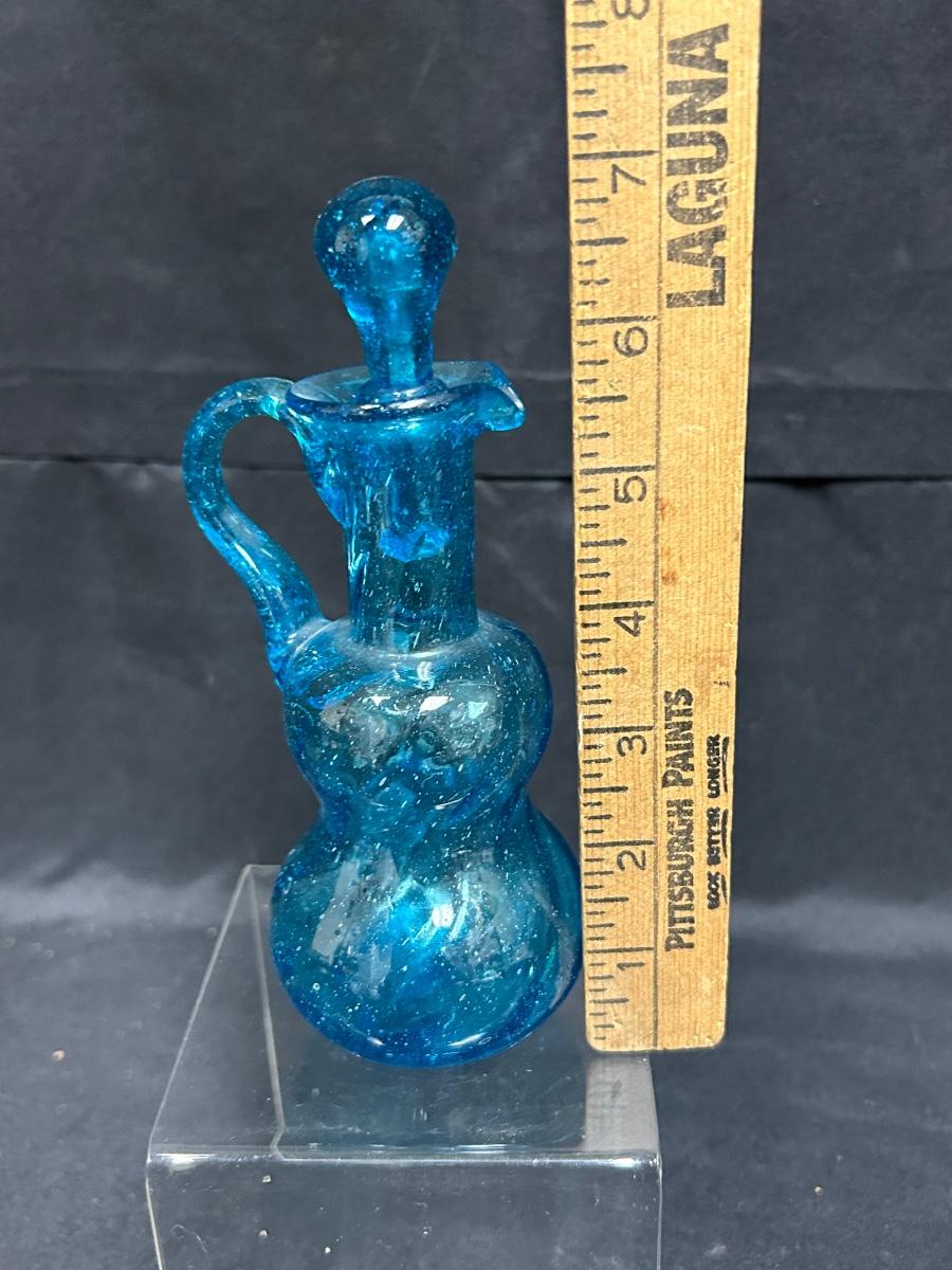 Turquoise Blue Crackle Bubble Glass Small Decanter Oil Vinegar Cruet Bottle