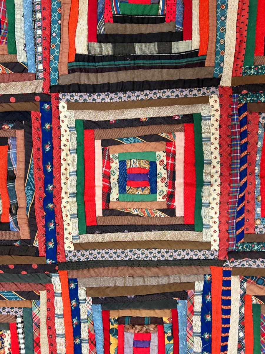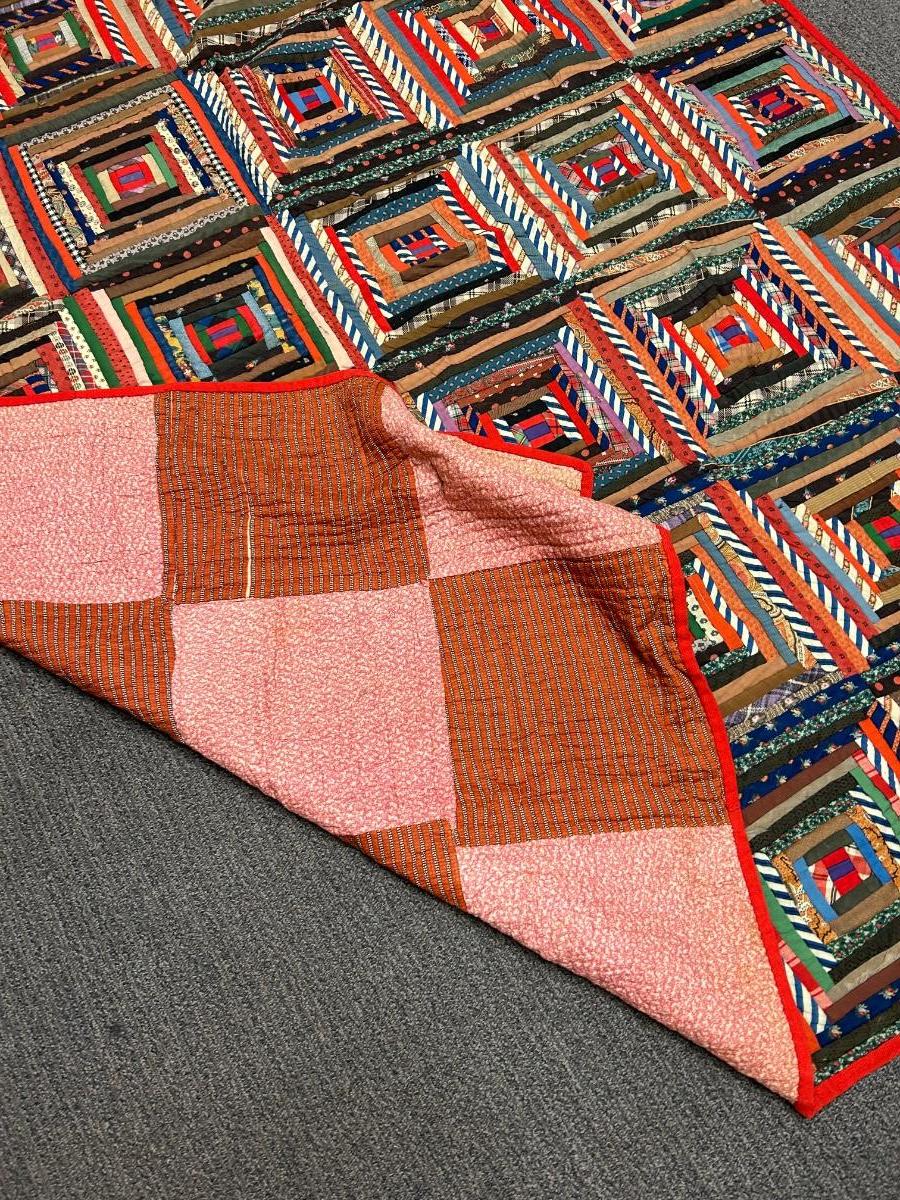 Vintage Hand Made Colorful Strip Squares Quilt Blanket