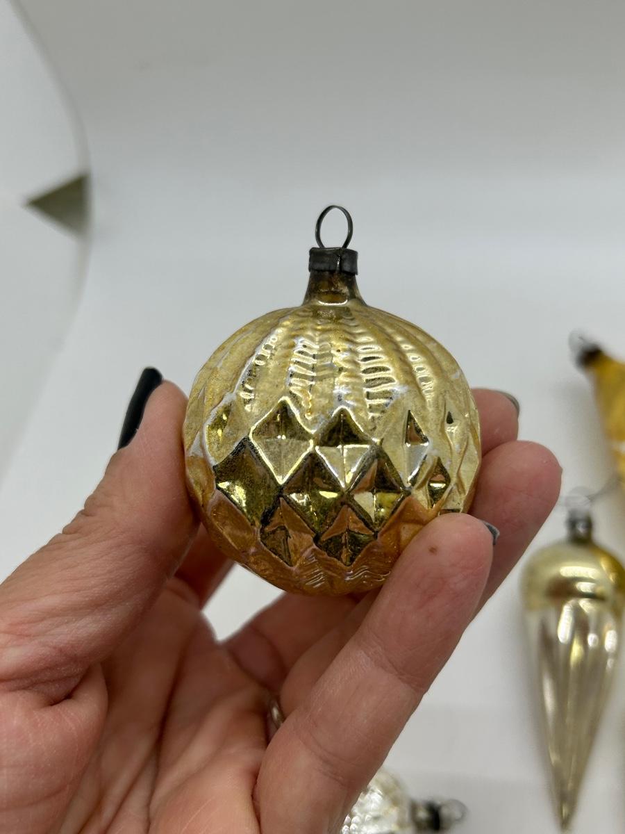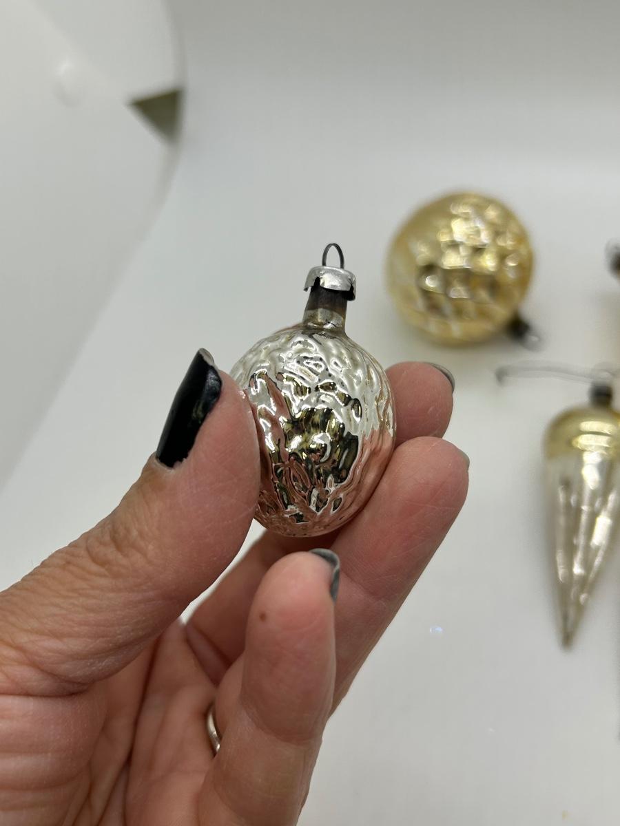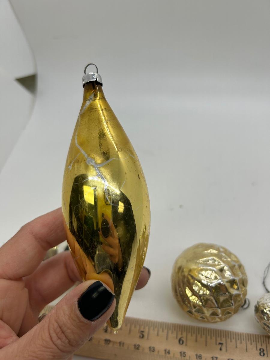 Vintage Silver and Gold Blown Glass Christmas Holiday Tree Ornaments