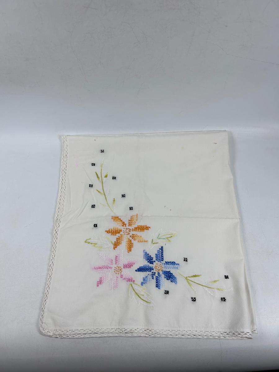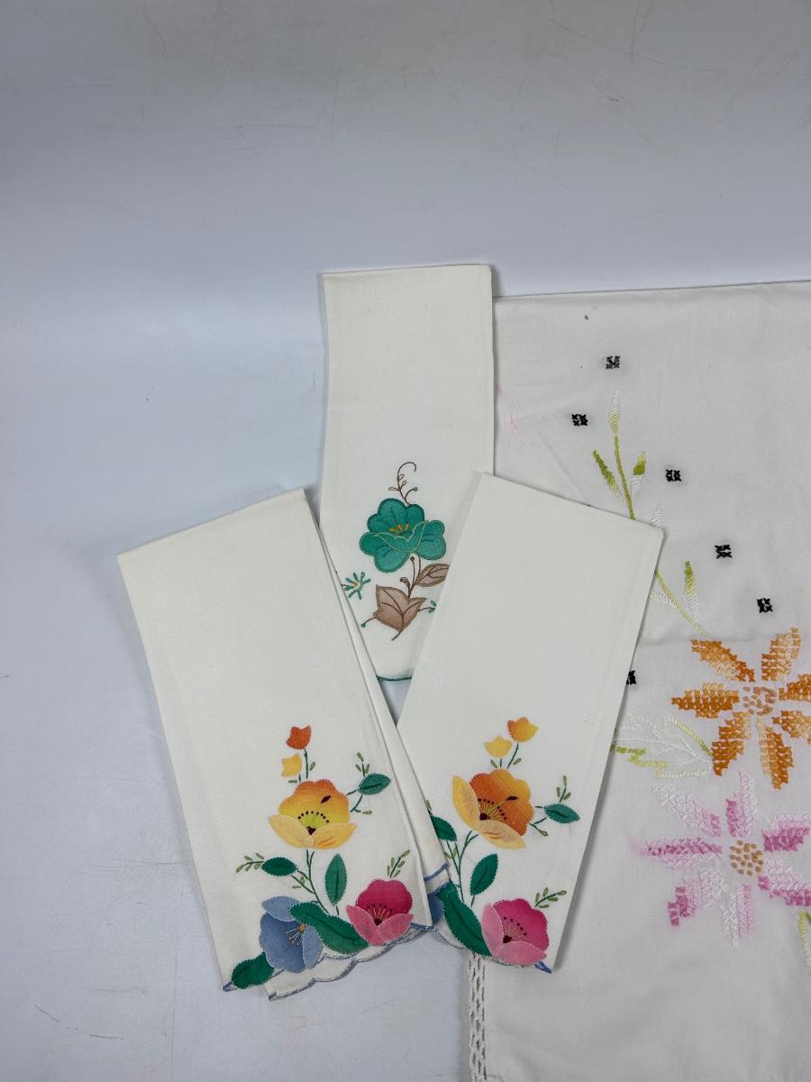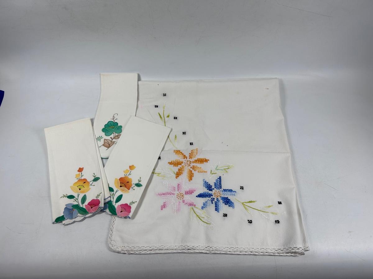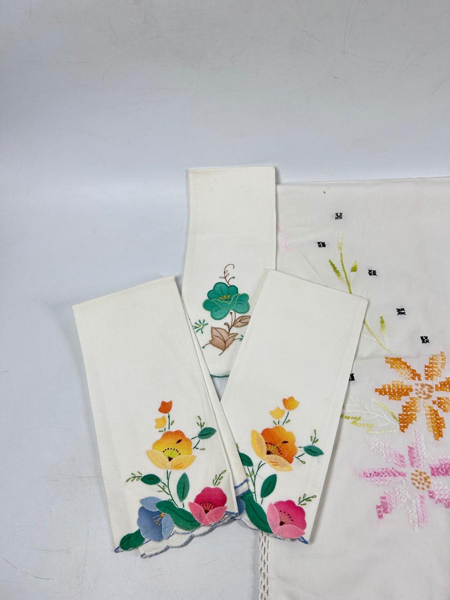 Vintage Flower Embroidered Applique Table Linens Napkins Tablecloth