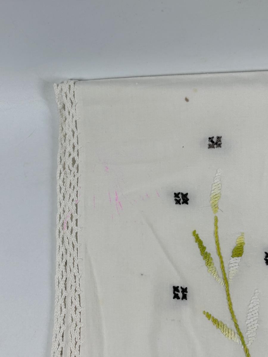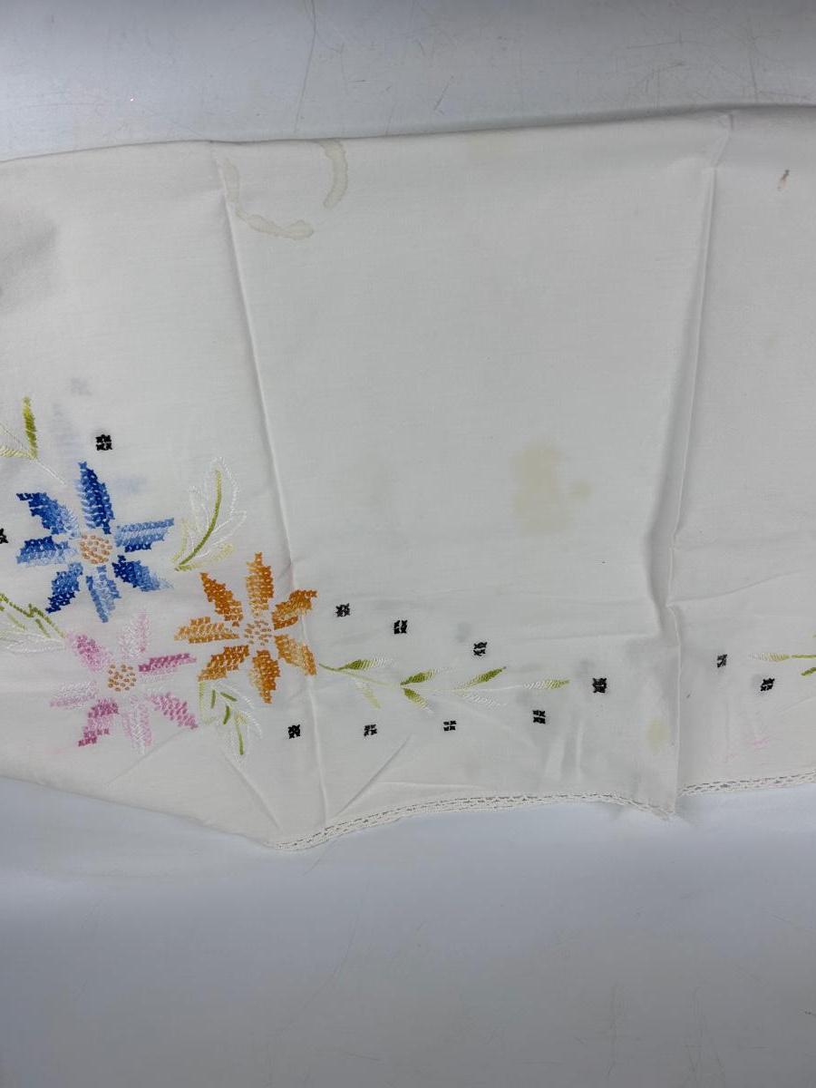 Vintage Flower Embroidered Applique Table Linens Napkins Tablecloth. In good vintage condition. May have light discoloration, no serious spots noticed.