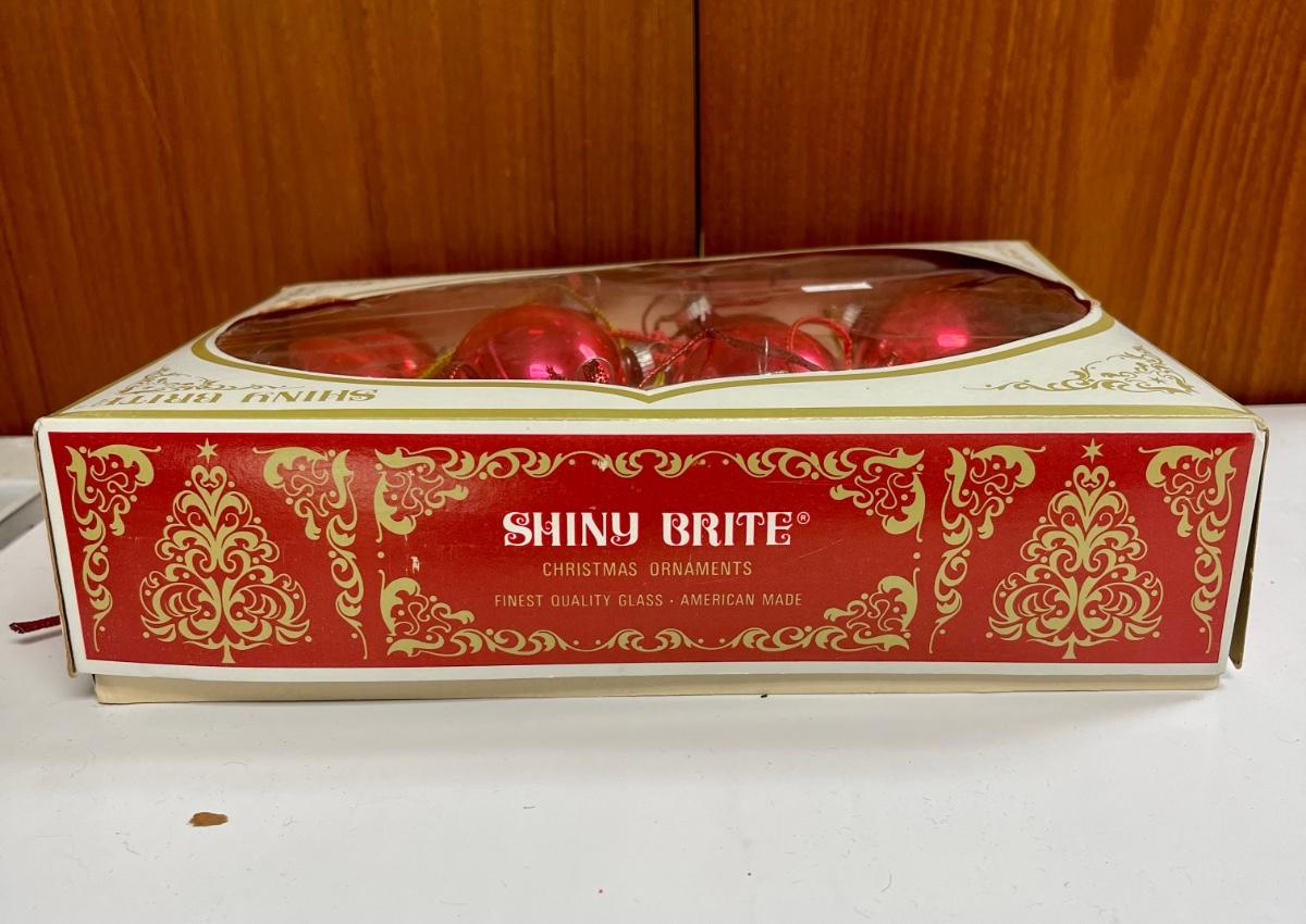Redish Pink Glass Shiney Brite Christmas Tree Ornaments