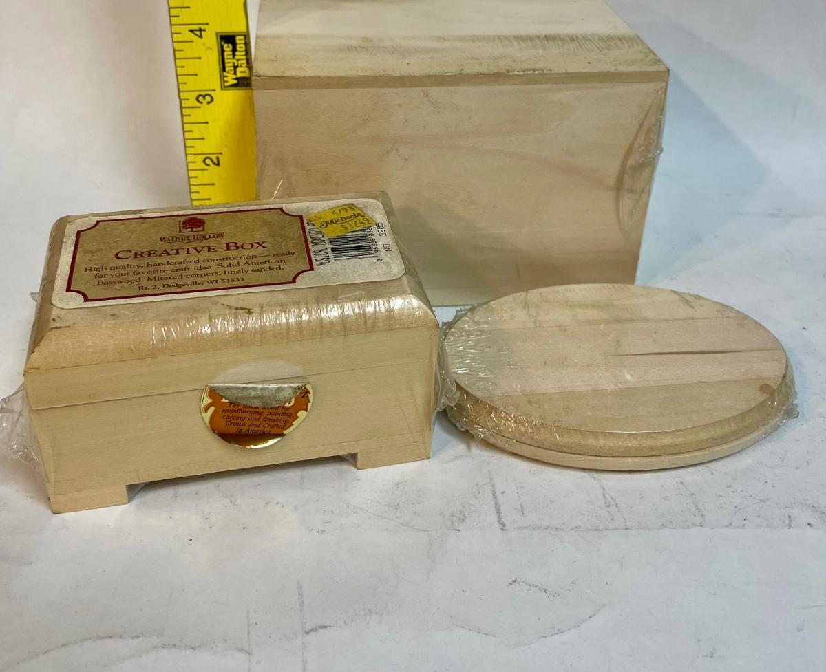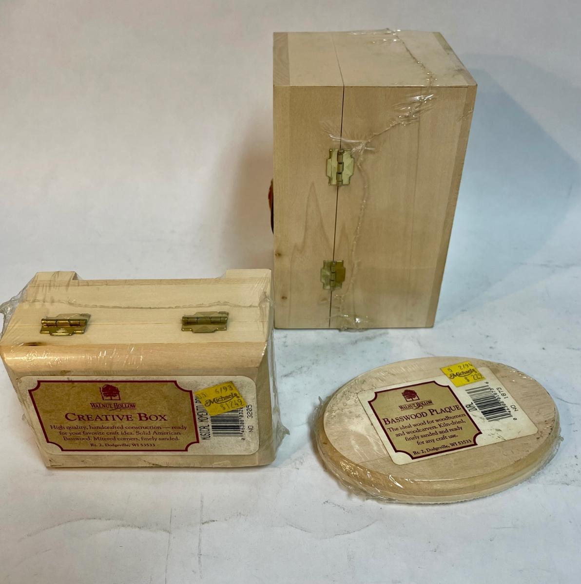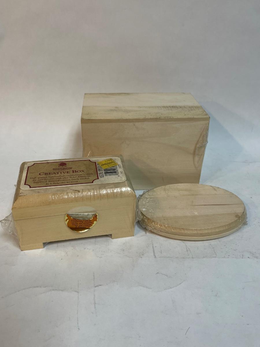 Lot of 3 Wood Decorating Projects 2 boxes and 1 plaque unfinished wood