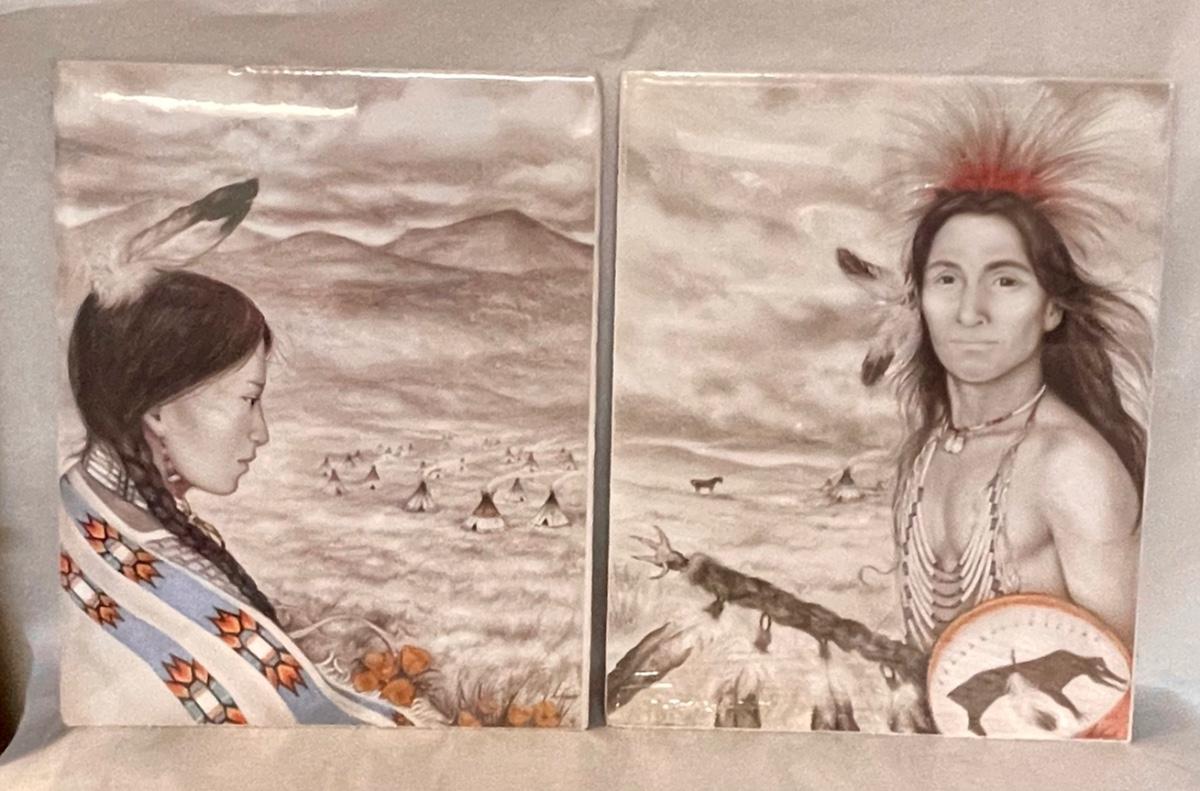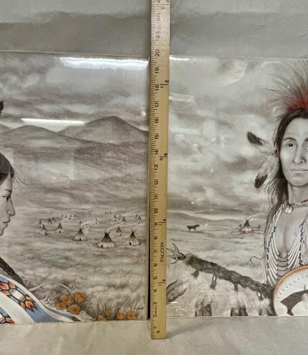 Prints are shrink-wrapped in plastic, mounted on cardboard. Both are 16" x 20". Images are of a young woman and a young man, excellent like-new condition.