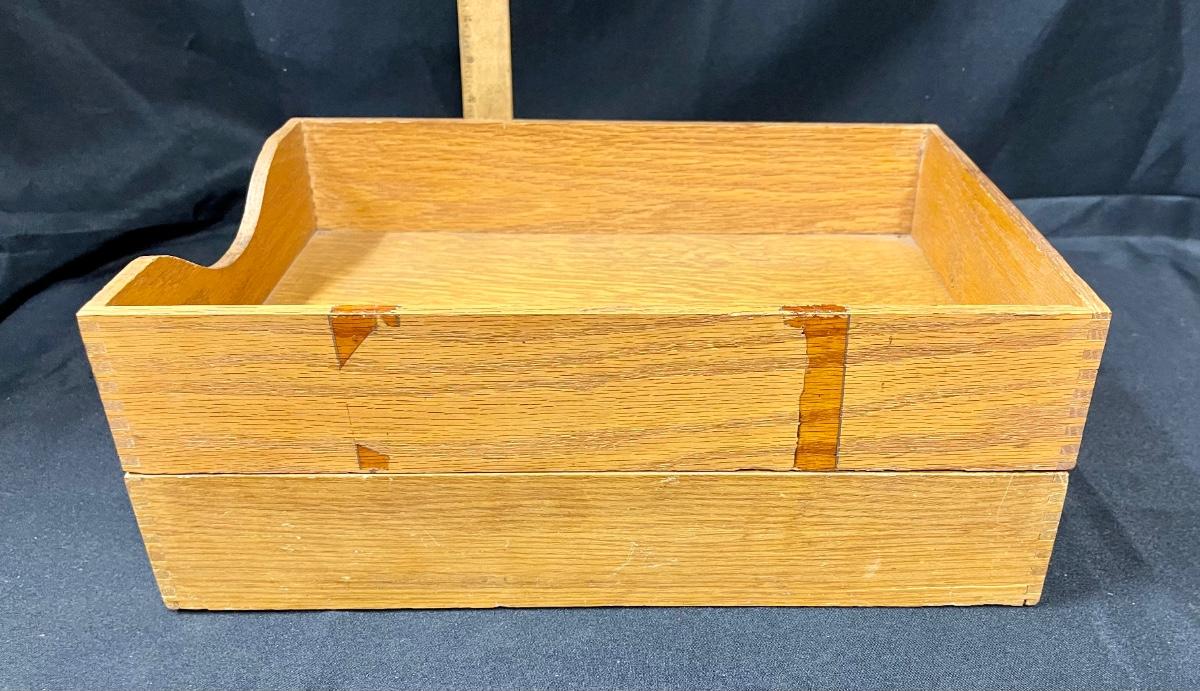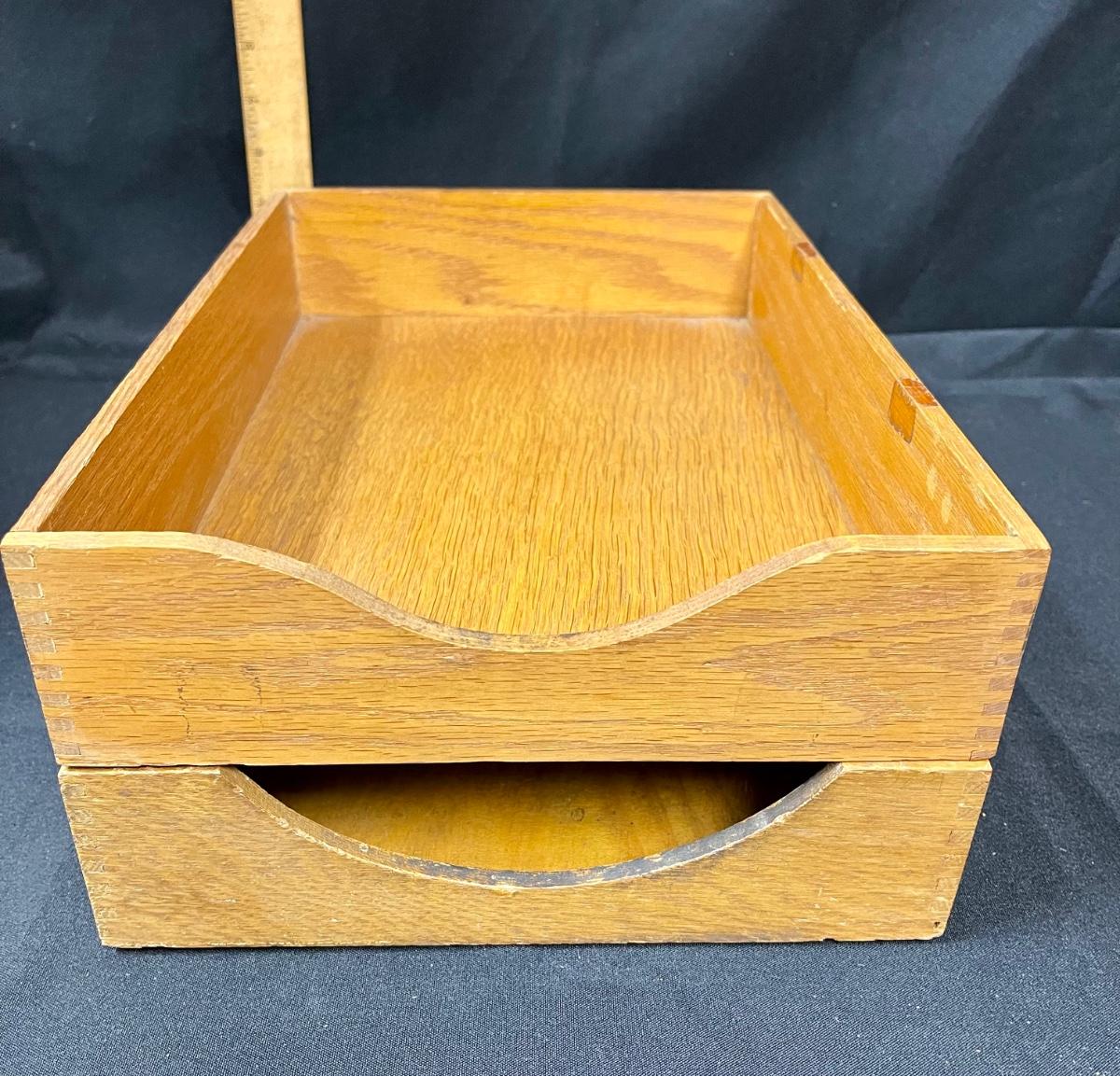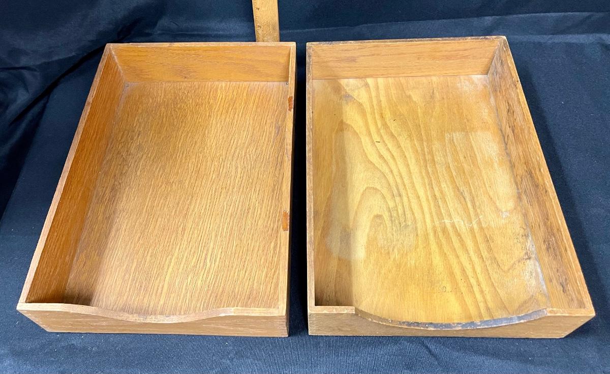 Pair of Wooden Vintage Office Paper Mailroom Organizing Trays
