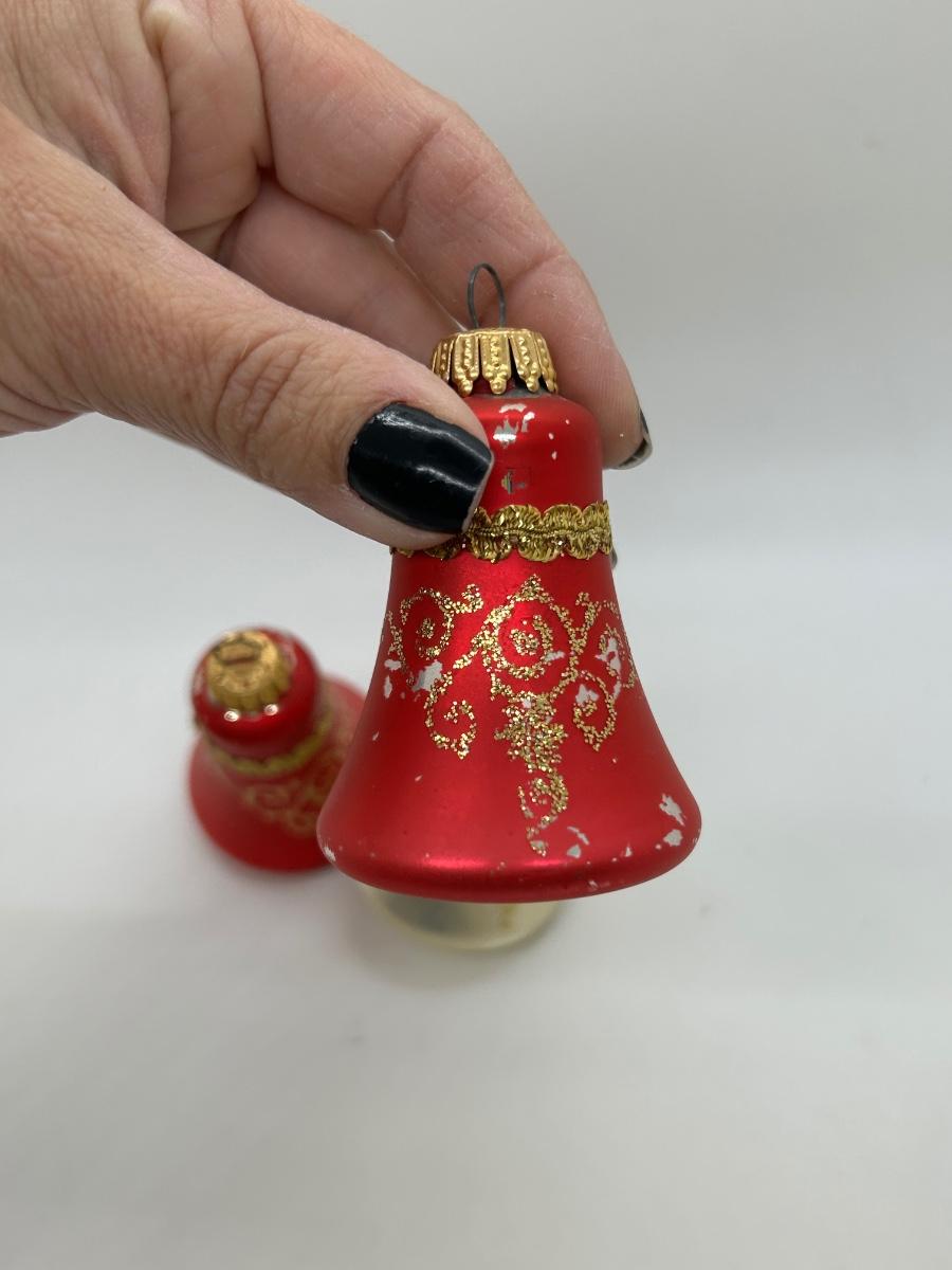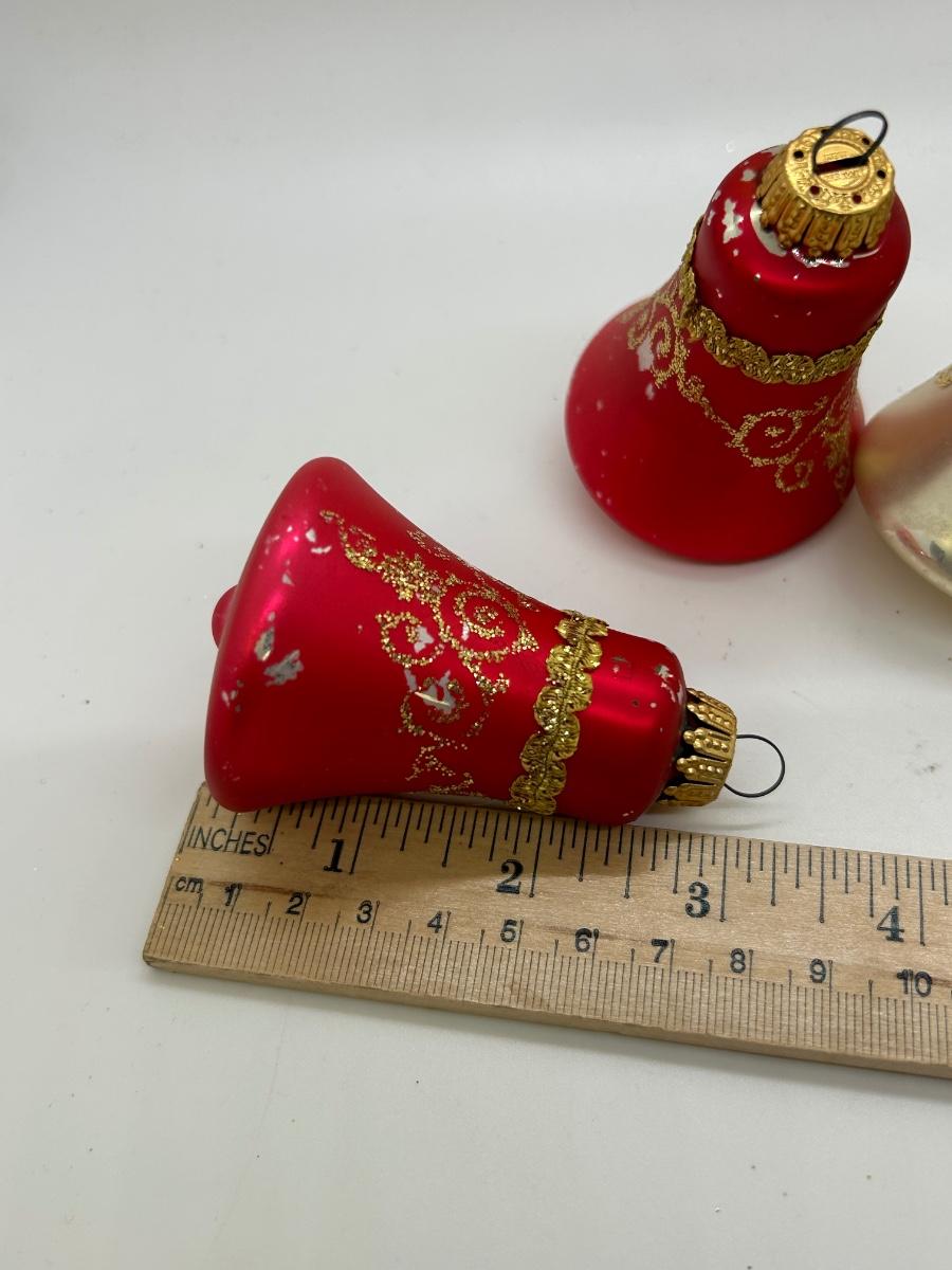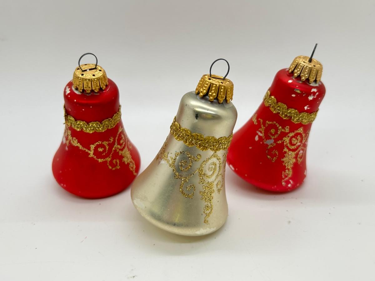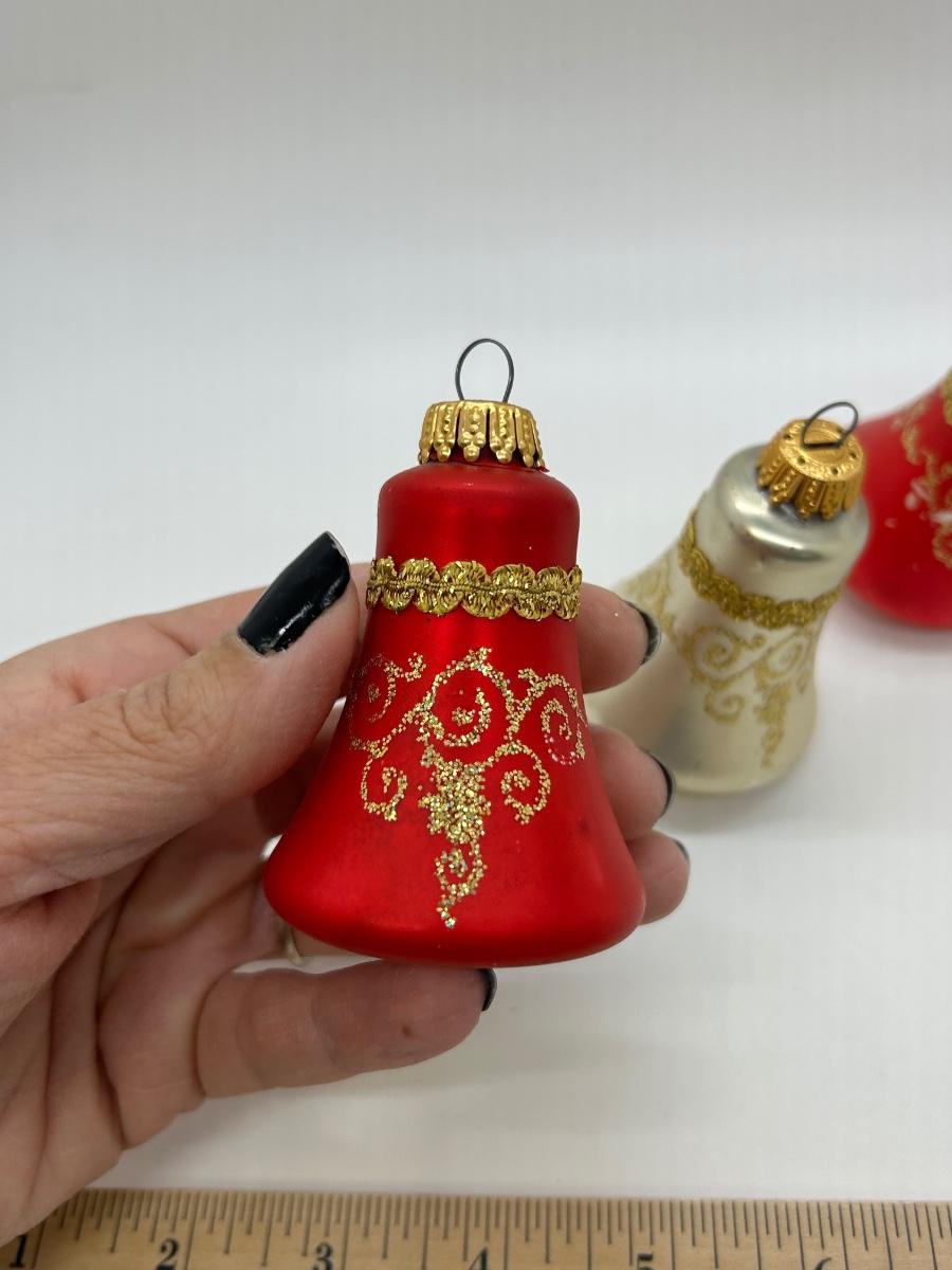 Vintage Red, Silver, & Gold Christmas Tree Holiday Ornament Bells
