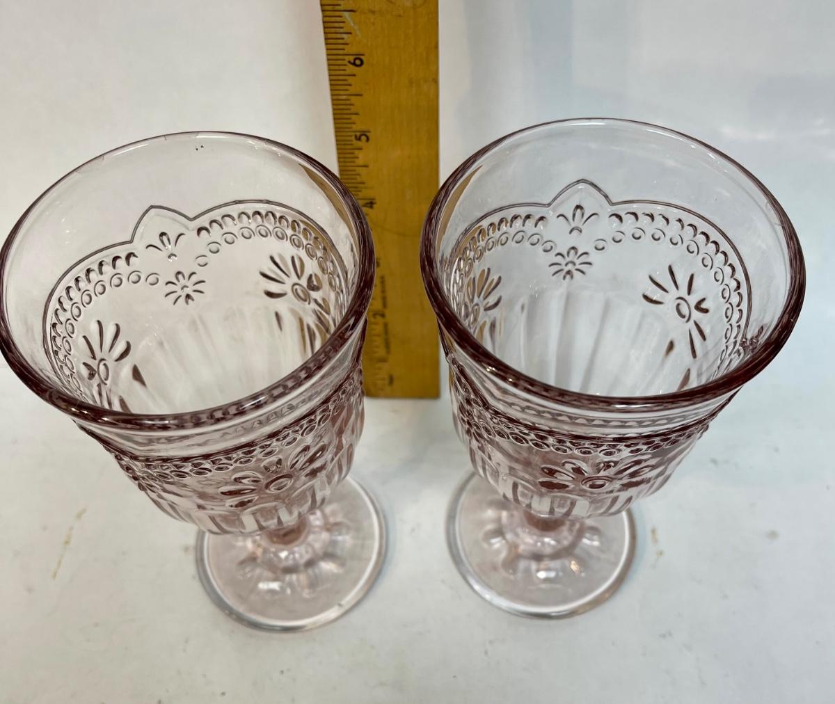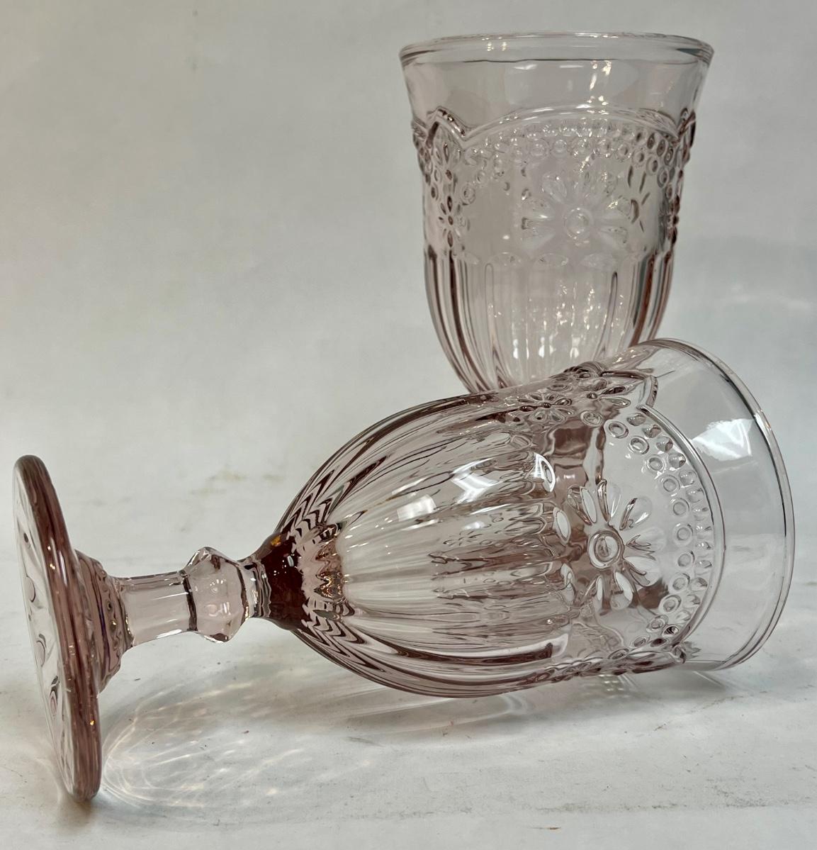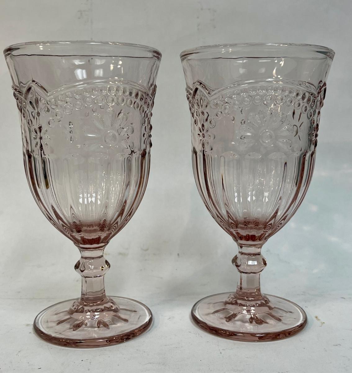 Abbott Collection Desiree Flower Wine Glass or Water Goblet, pink glass, 2 glasses