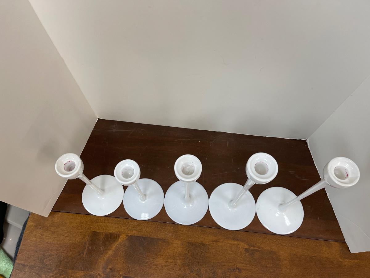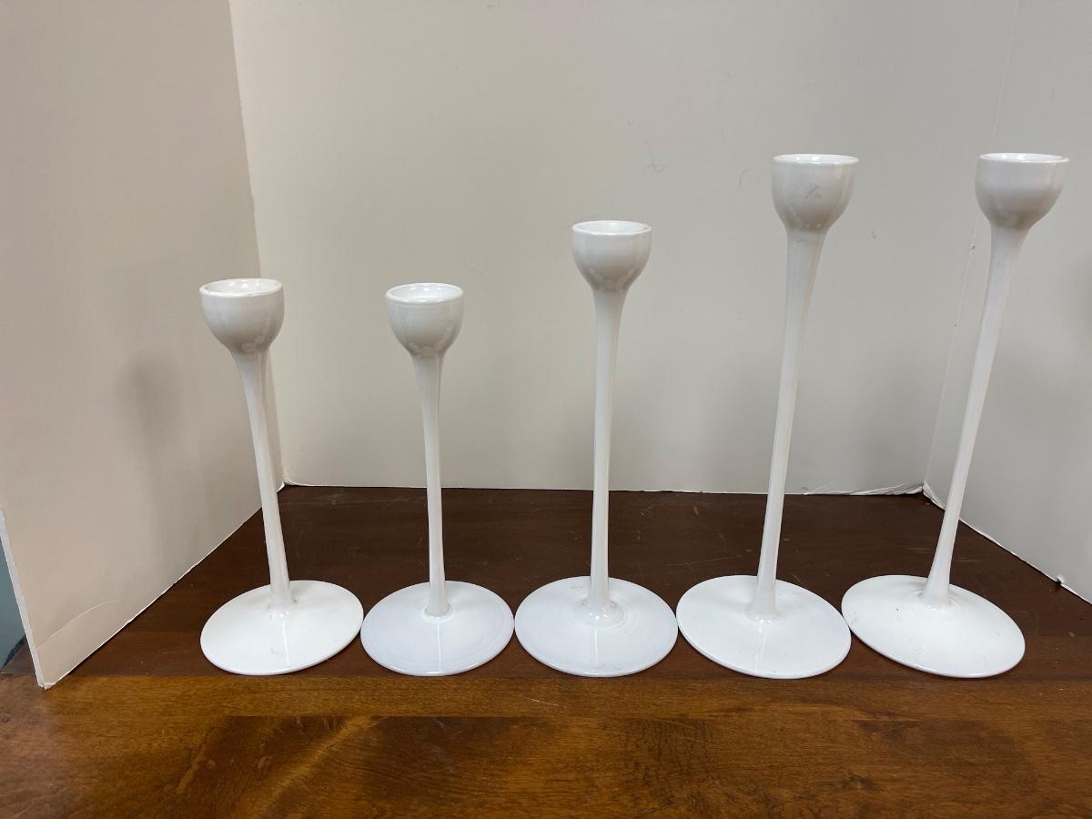 IKEA White Blomster Set of 5 Candlestick Candle Holders. In good condition. Different sizes.