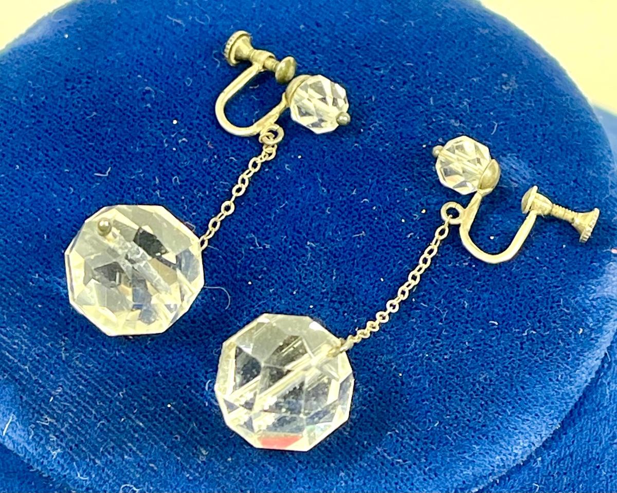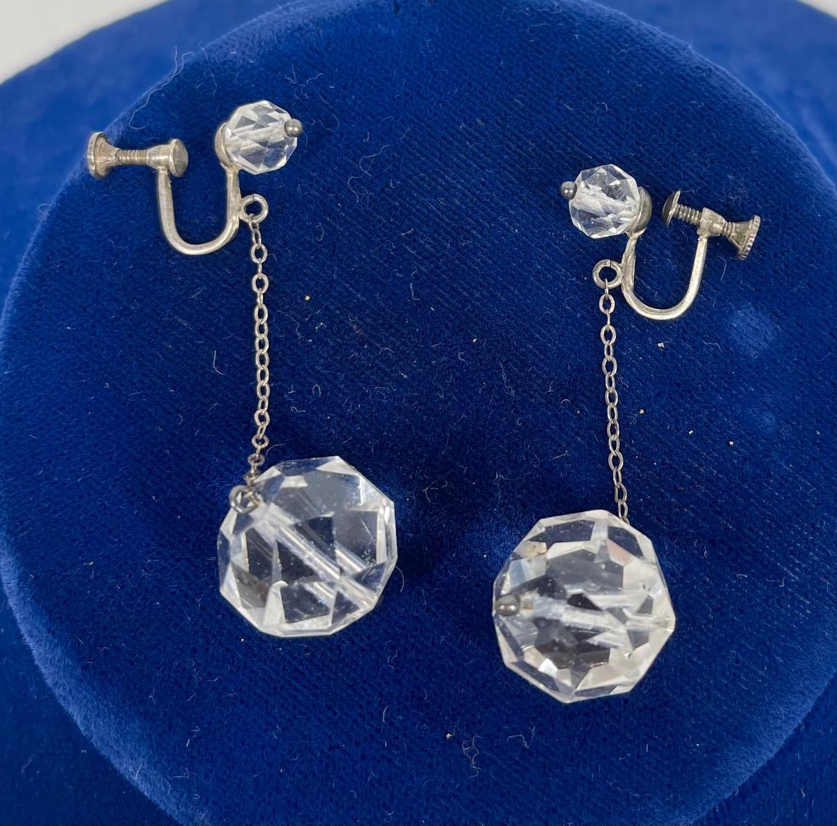 Art Deco Crystal Sterling Silver Dangling Earrings