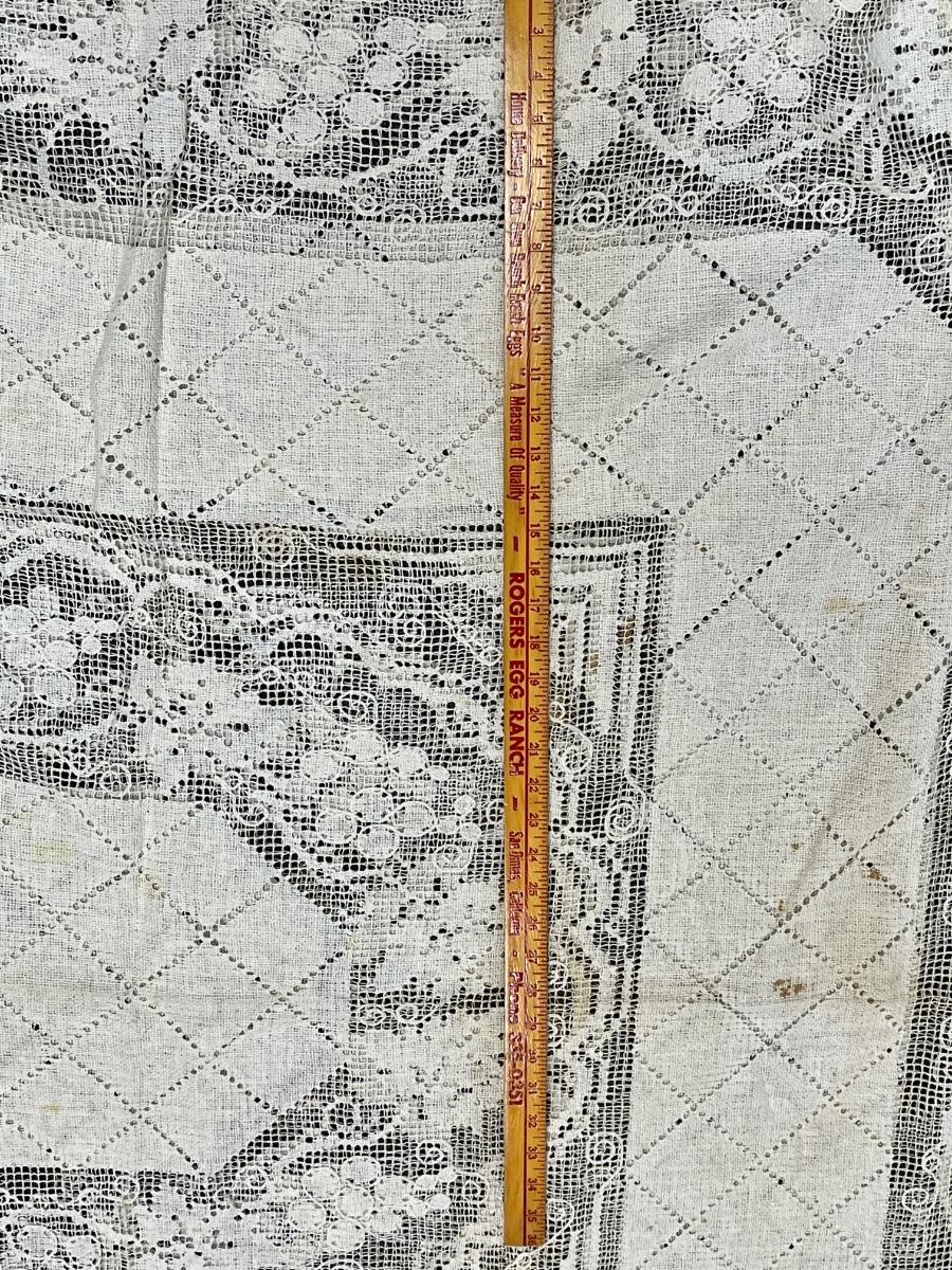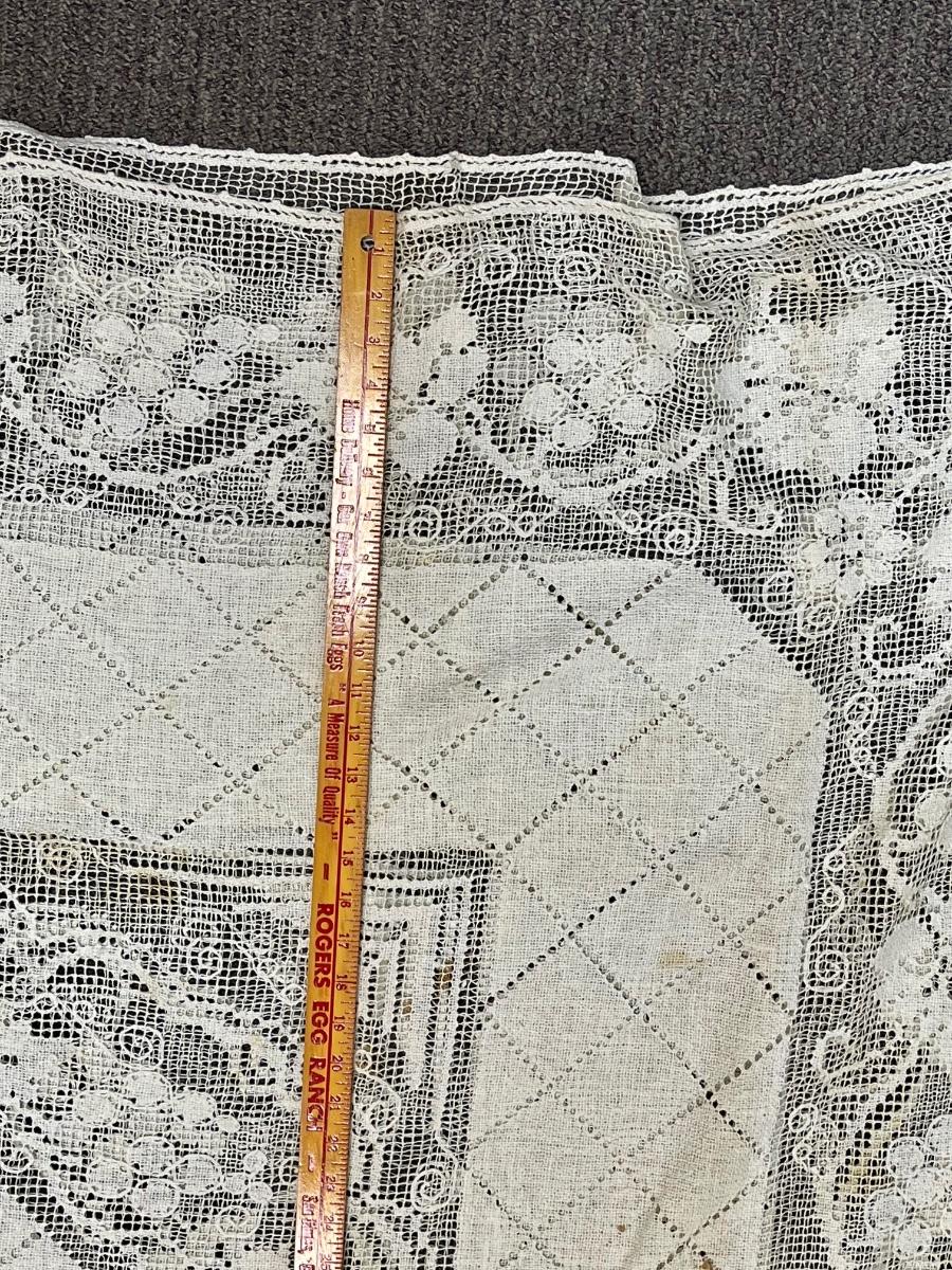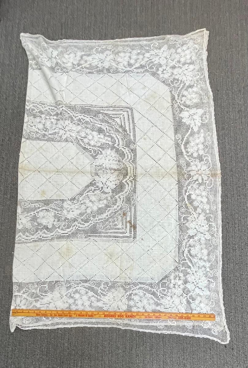 Vintage Lace Grapevine Patterned Lace Tablecloth. Signs of age and use.