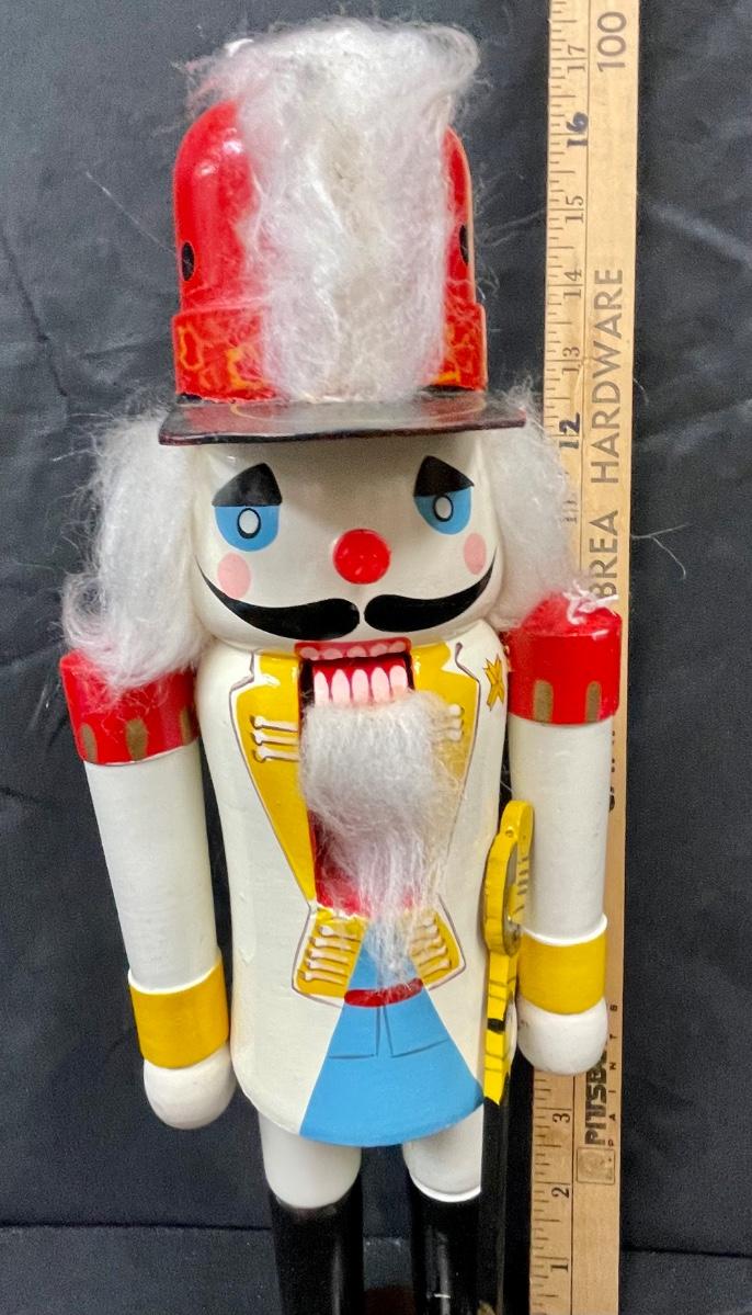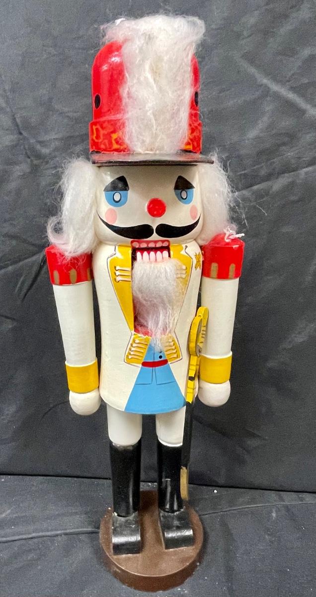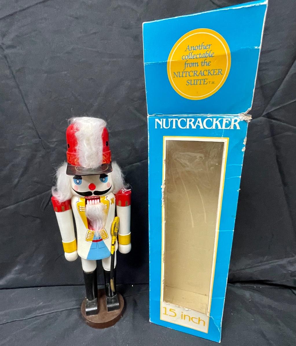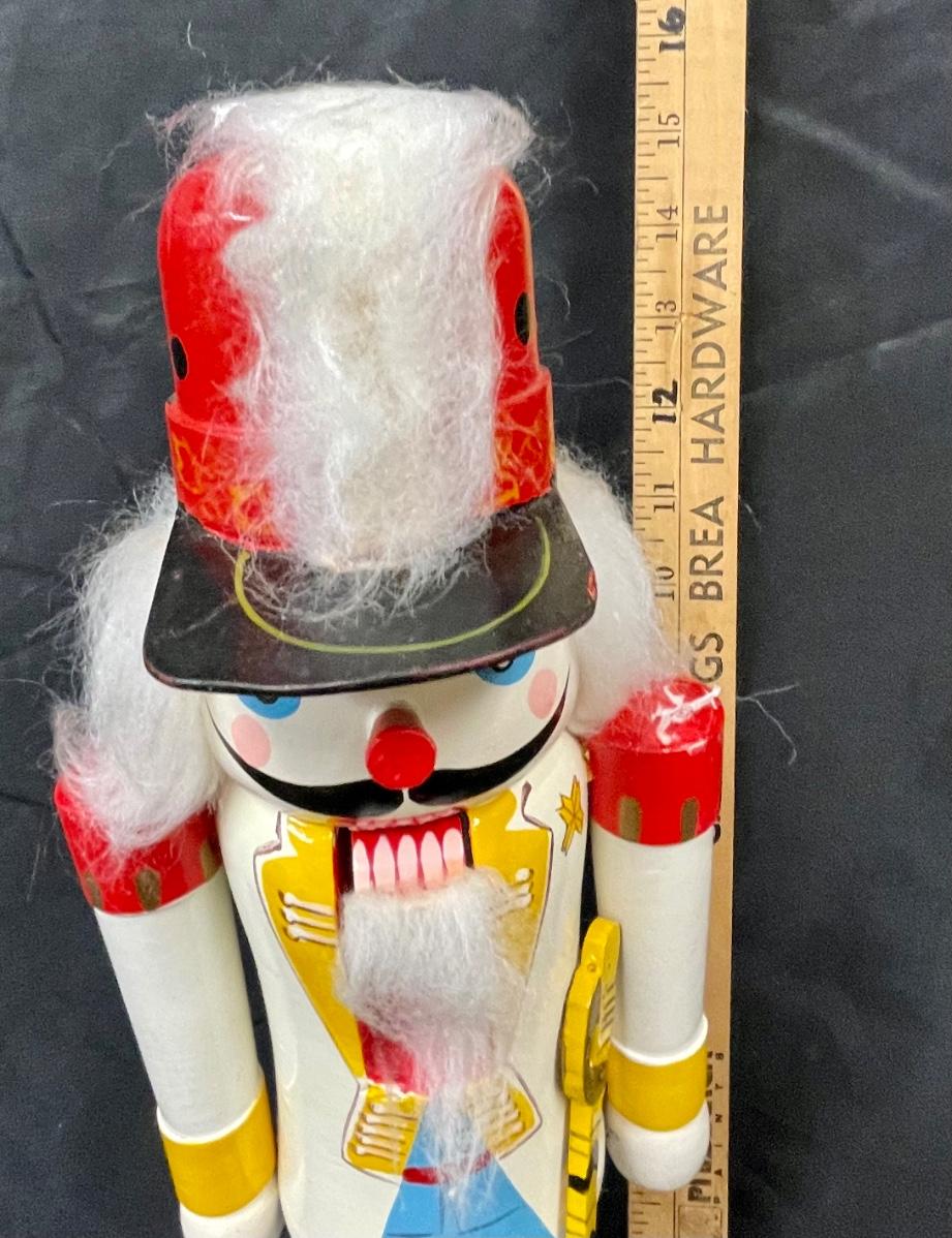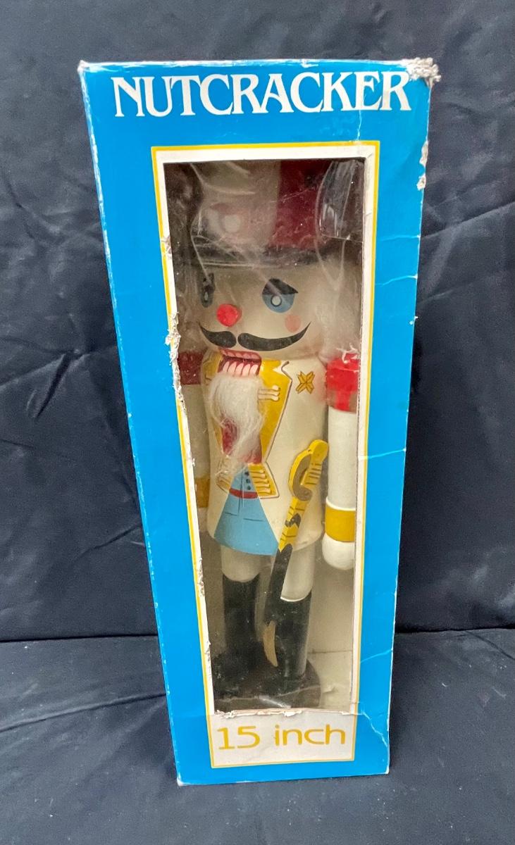 Vintage Colorfully Painted Wooden Nutcracker Christmas Holiday Decor in Original Box. 15" size.