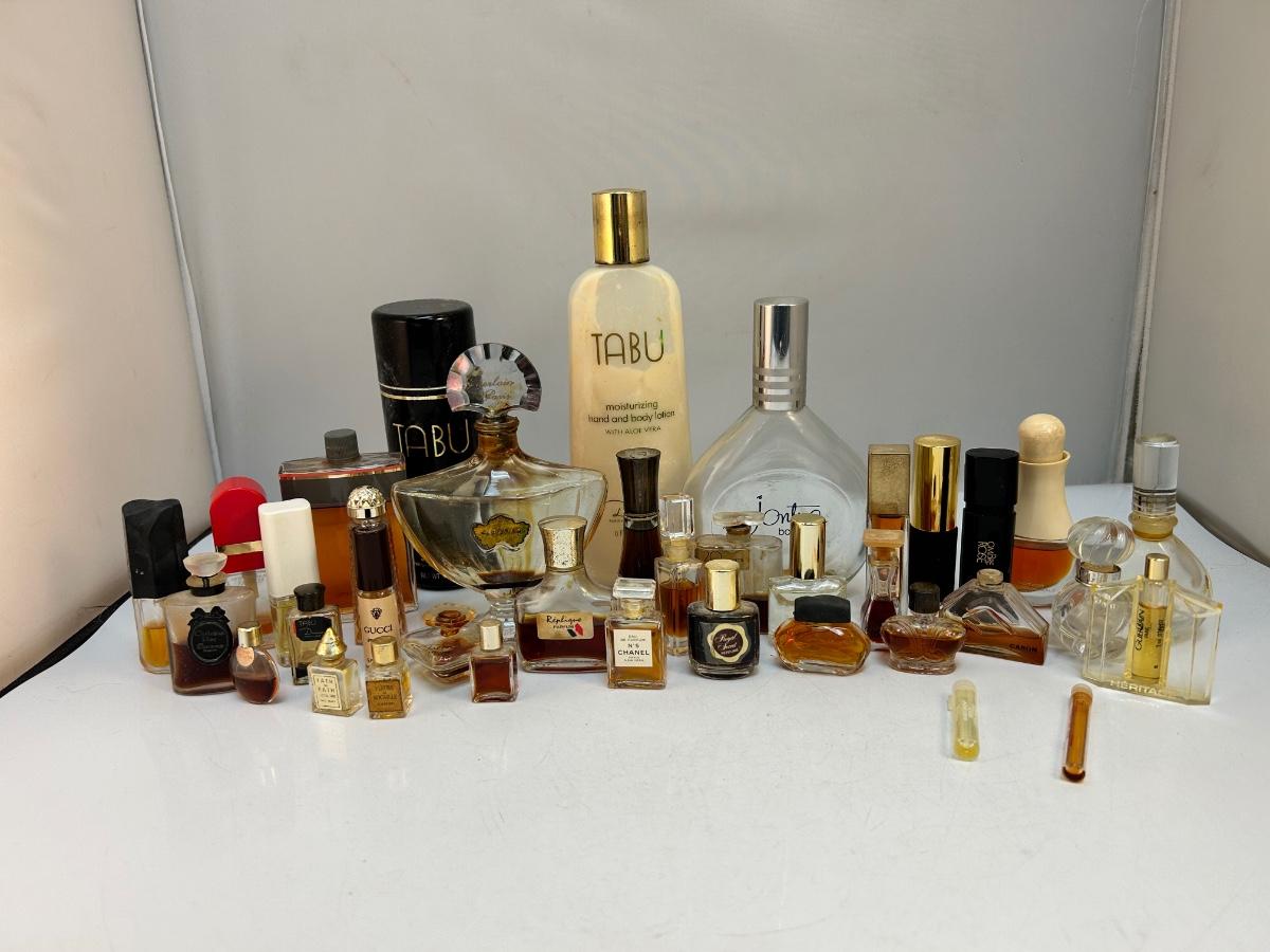 Huge Mixed Lot of Vintage and Retro Perfume Bottles Tabu Chanel Dior Gucci Various Amounts