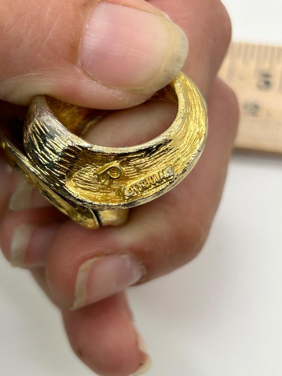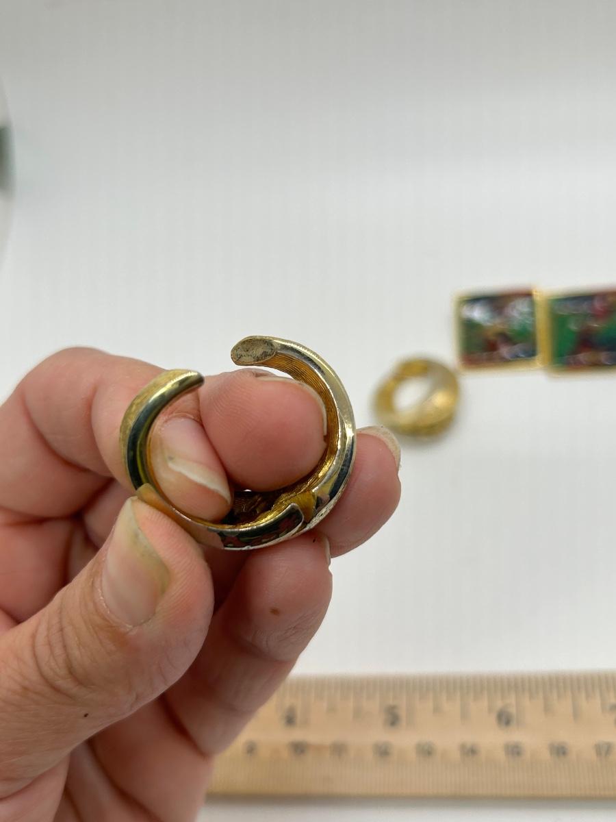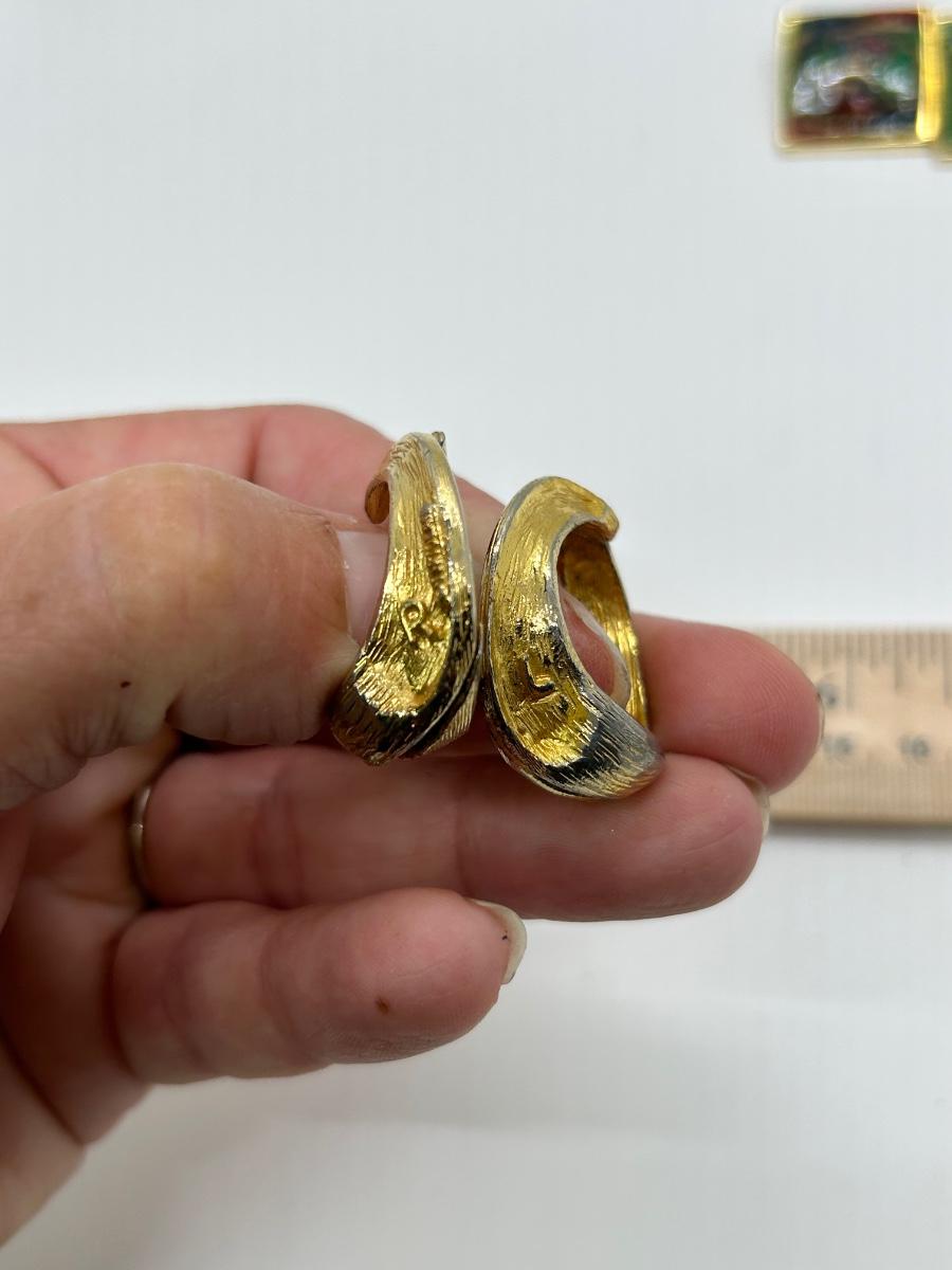 Retro Gold Tone Clip Style Earrings Hinged Loops Enamel Squares. In previously worn condition. The loops are hinged for wear and marked left and right.