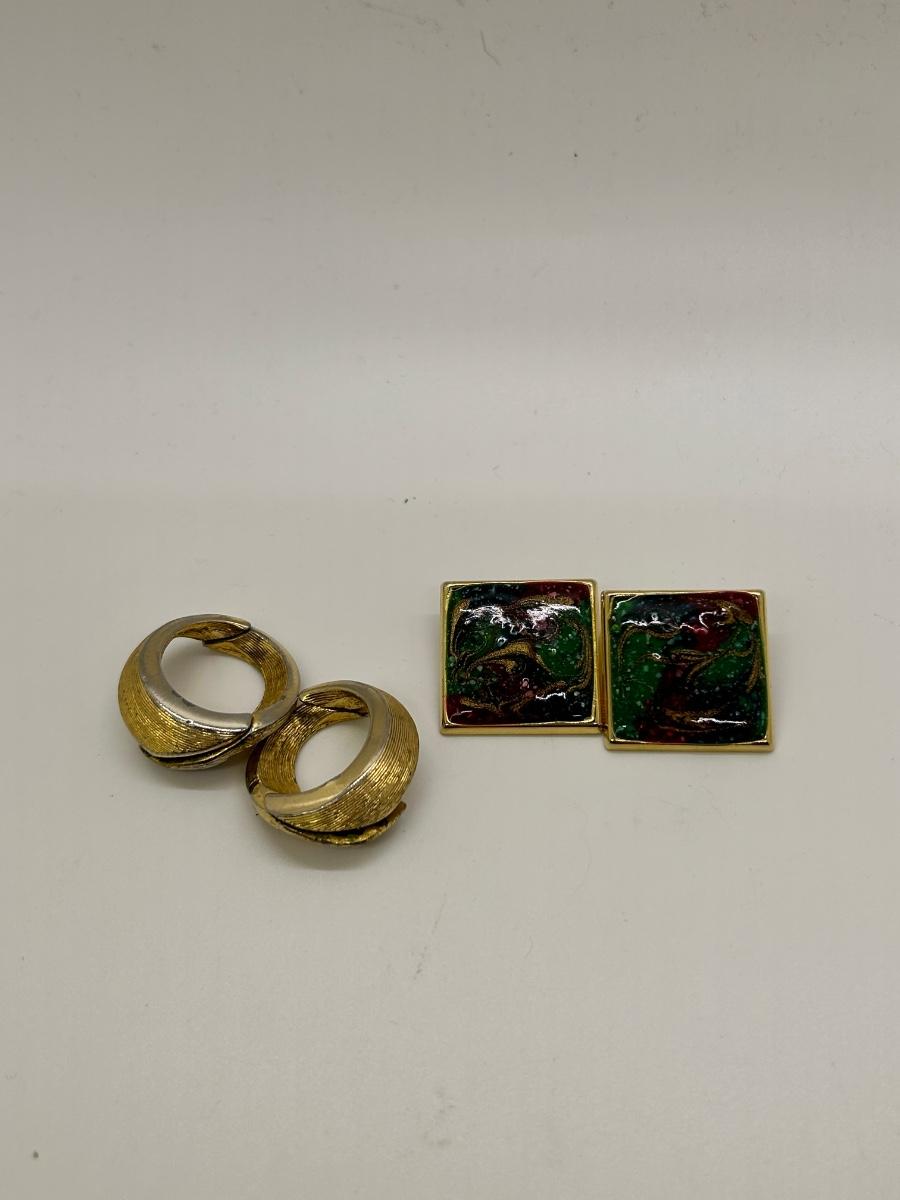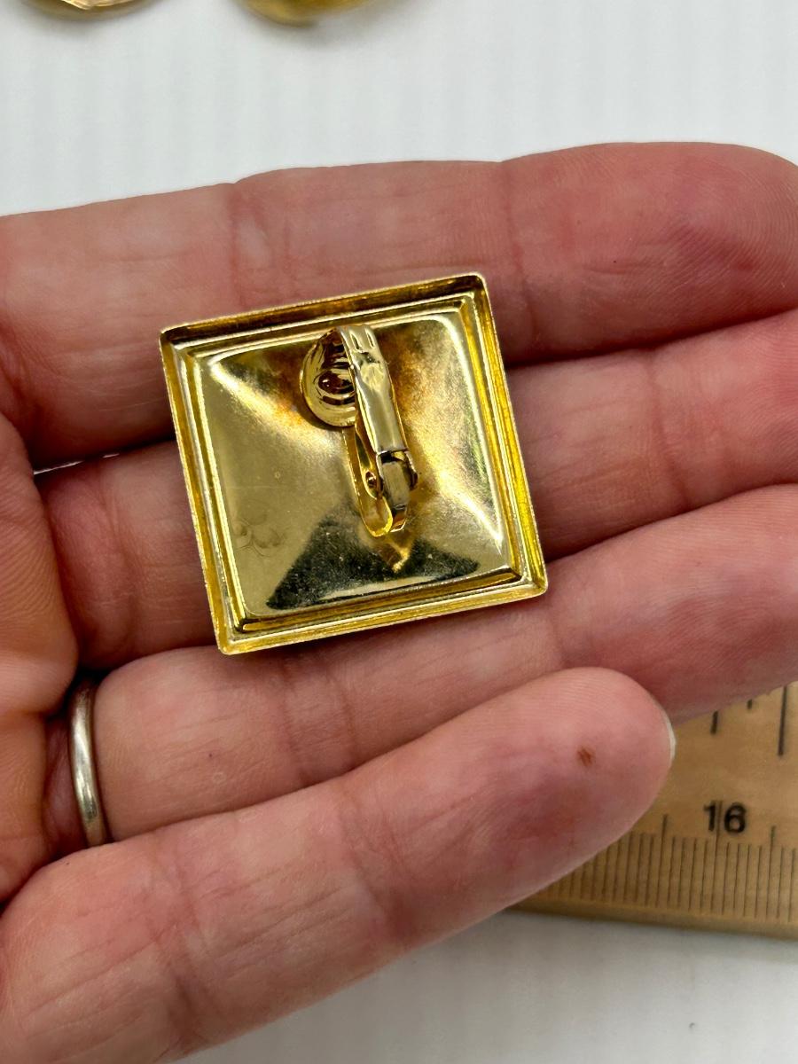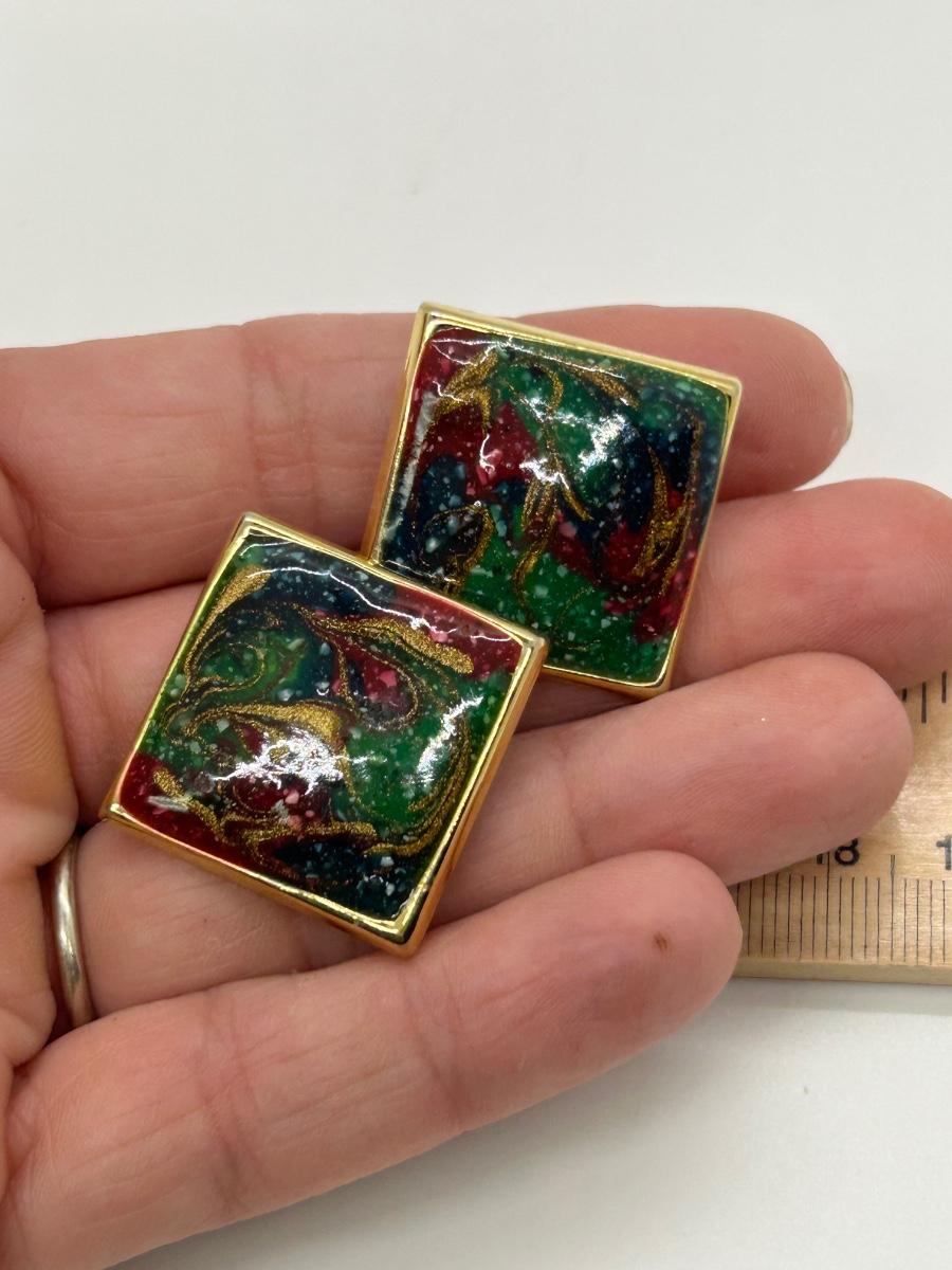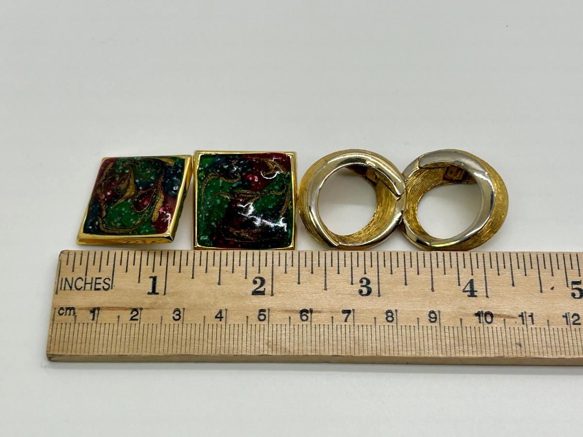 Retro Gold Tone Clip Style Earrings Hinged Loops Enamel Squares