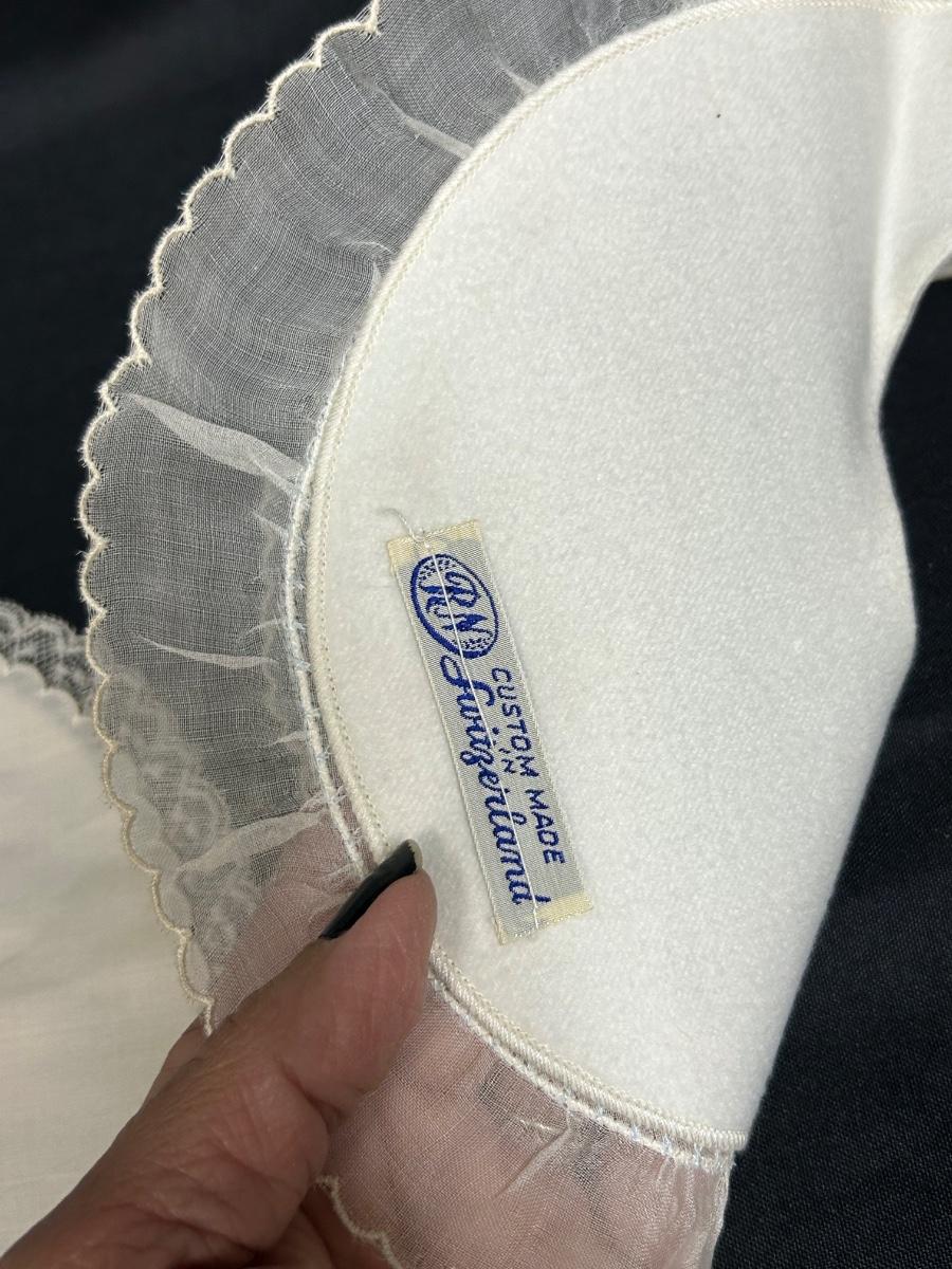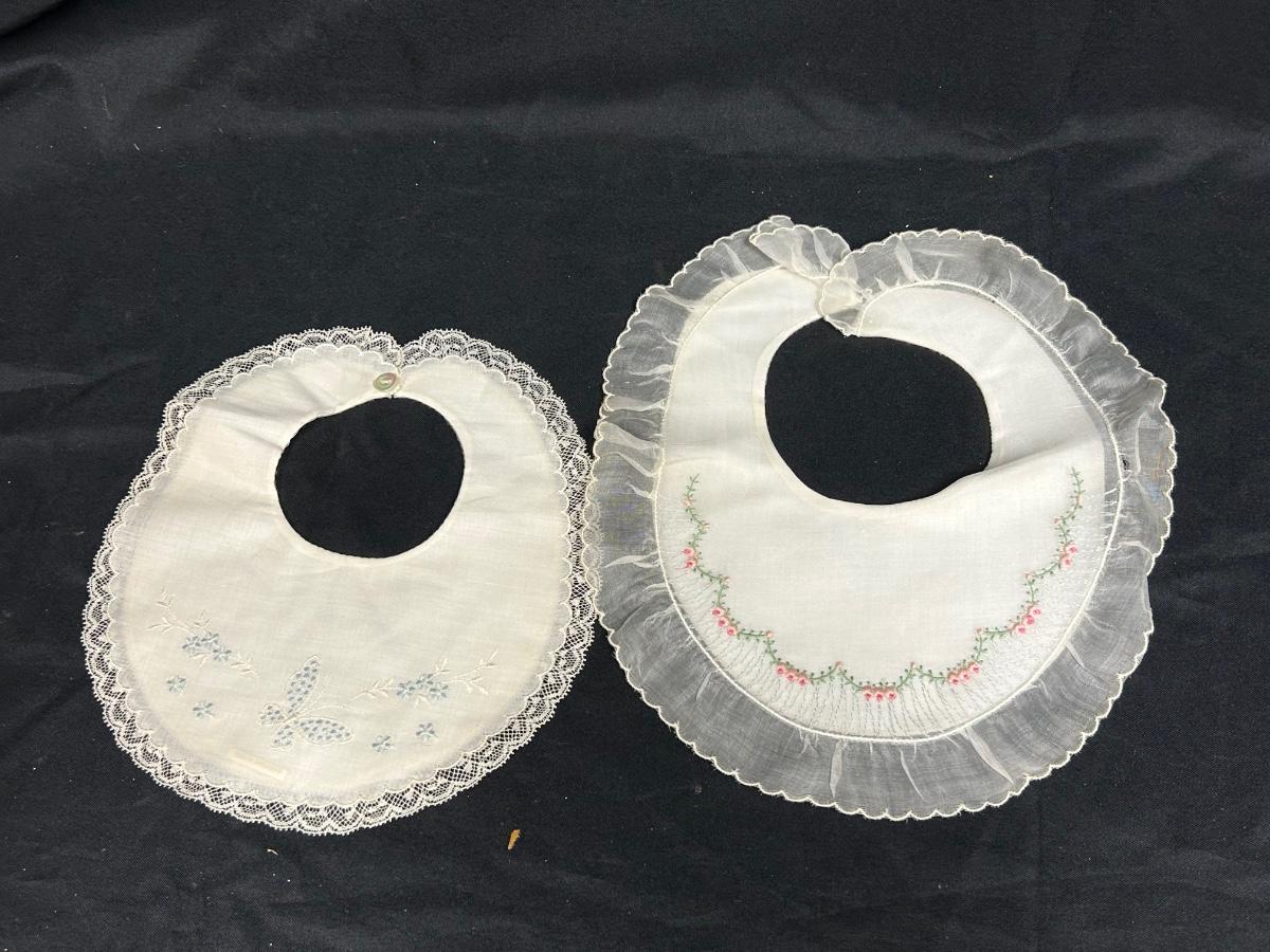 Pair of Vintage Flower Embroidered Dainty Infant Bibs Made in Switzerland