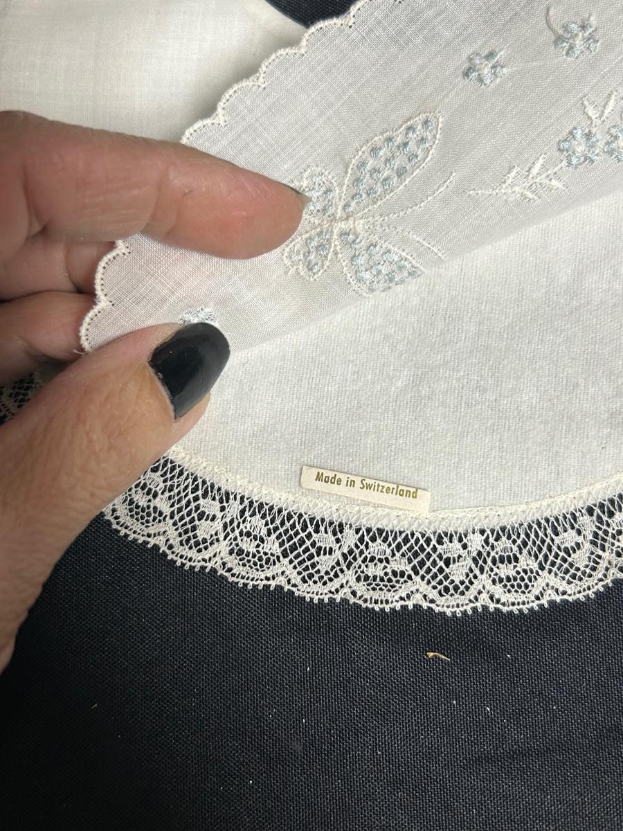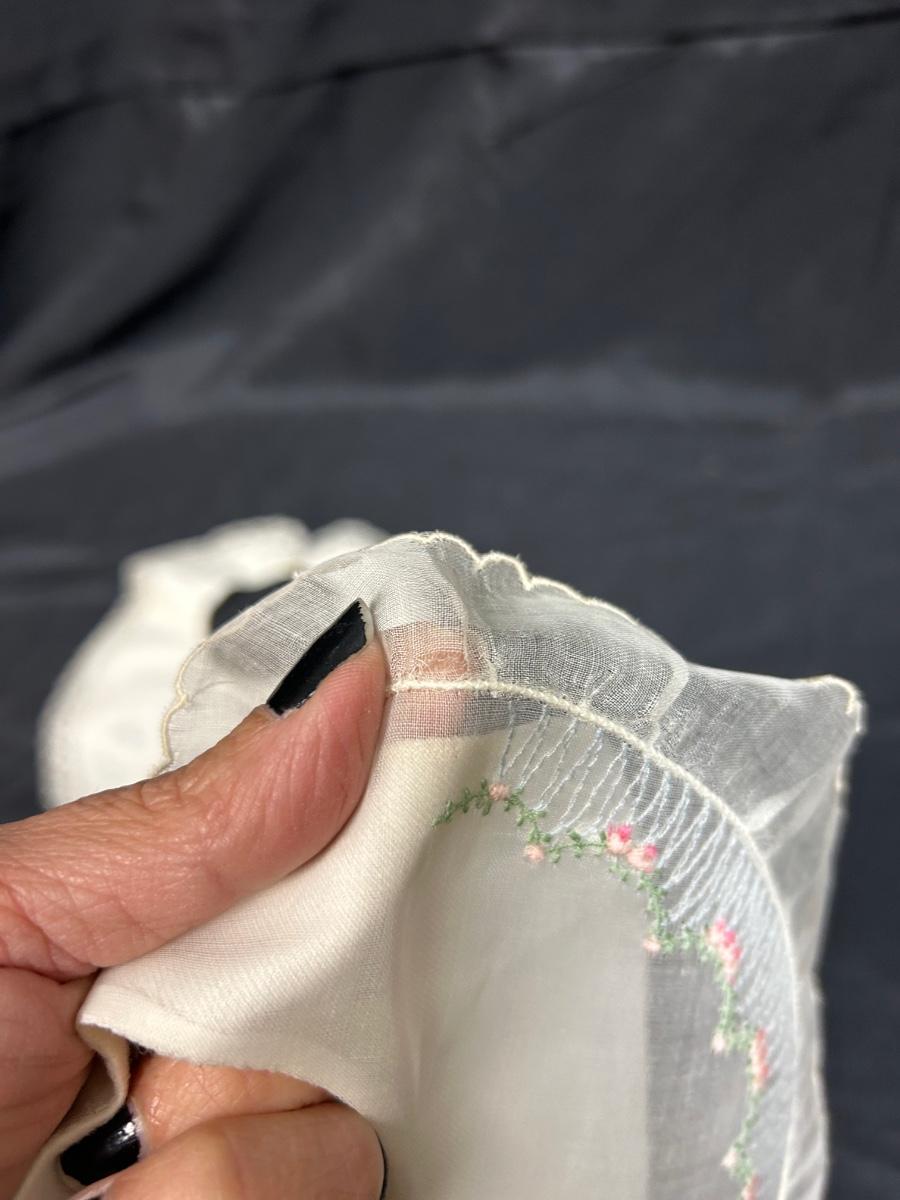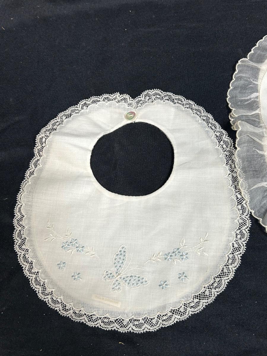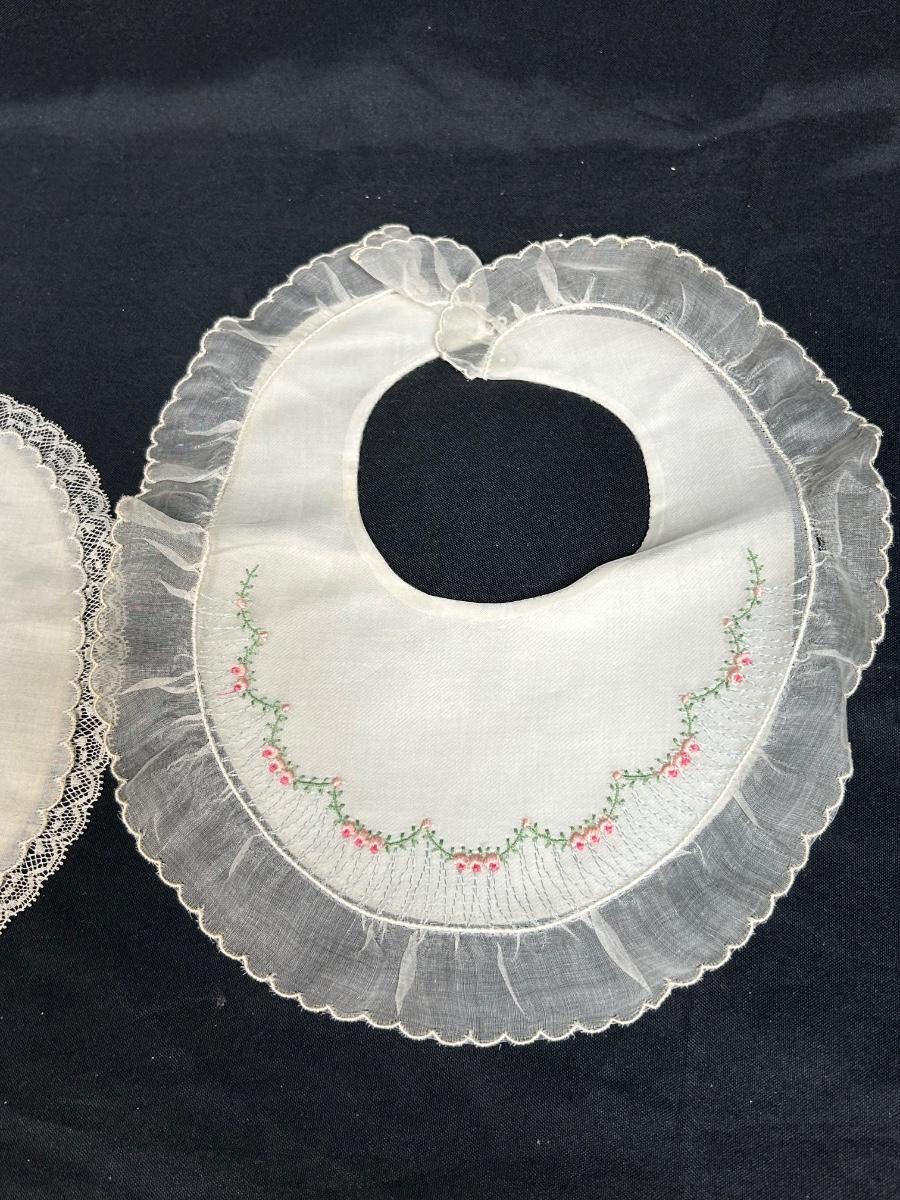 Pair of Vintage Flower Embroidered Dainty Infant Bibs Made in Switzerland. In good condition. No spots or stains.