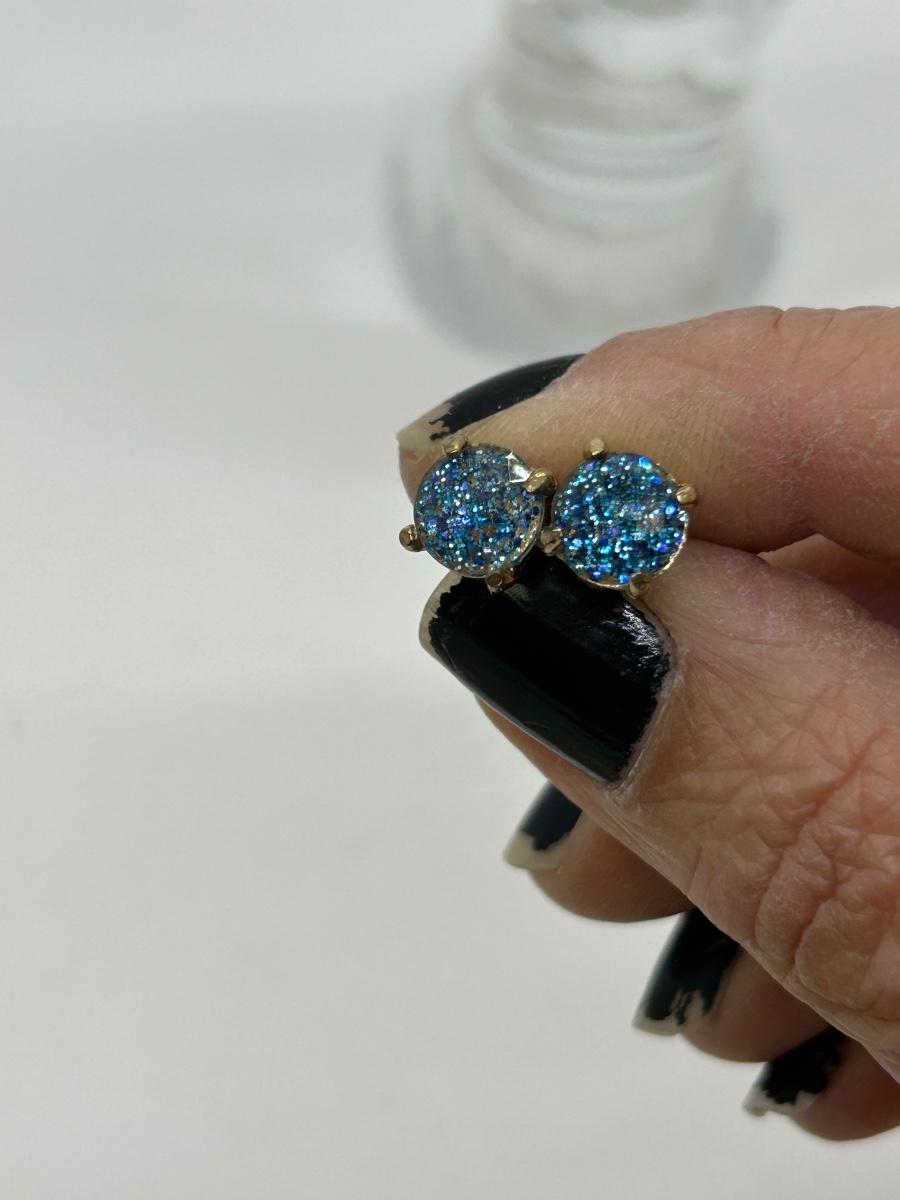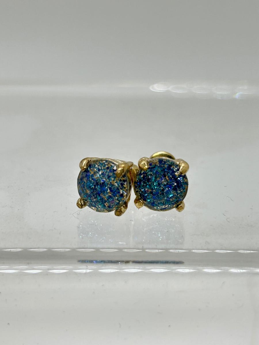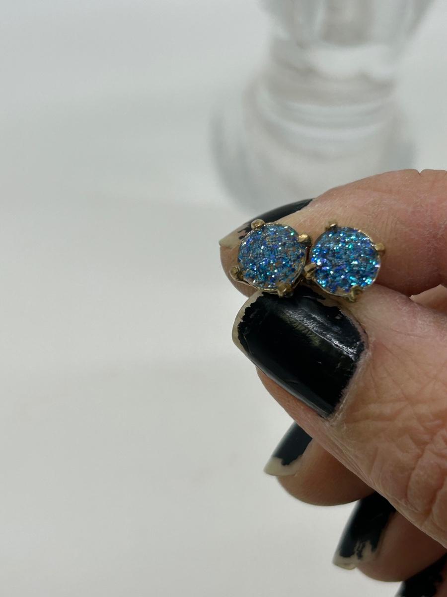 Pair of Small Shimmery Blue Stud Button Earrings. Good condition.