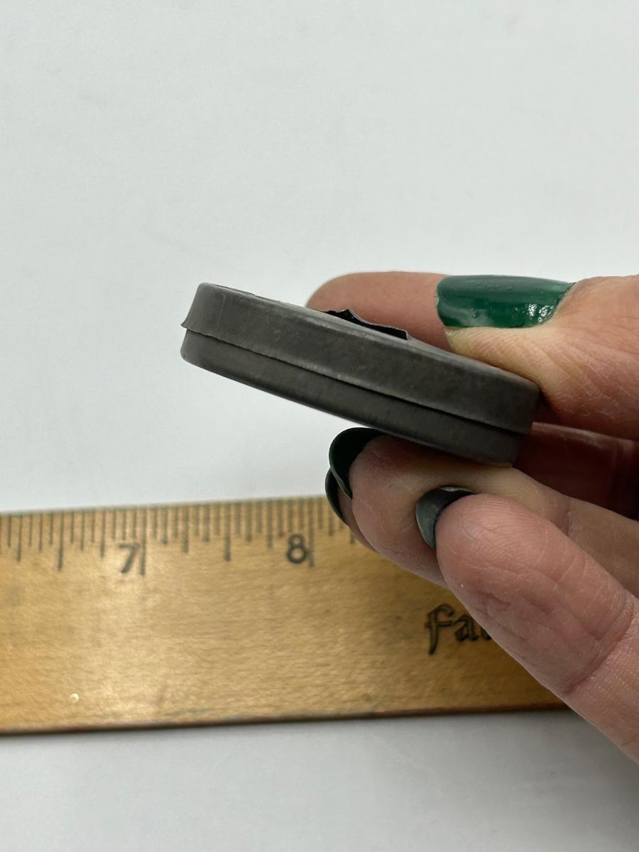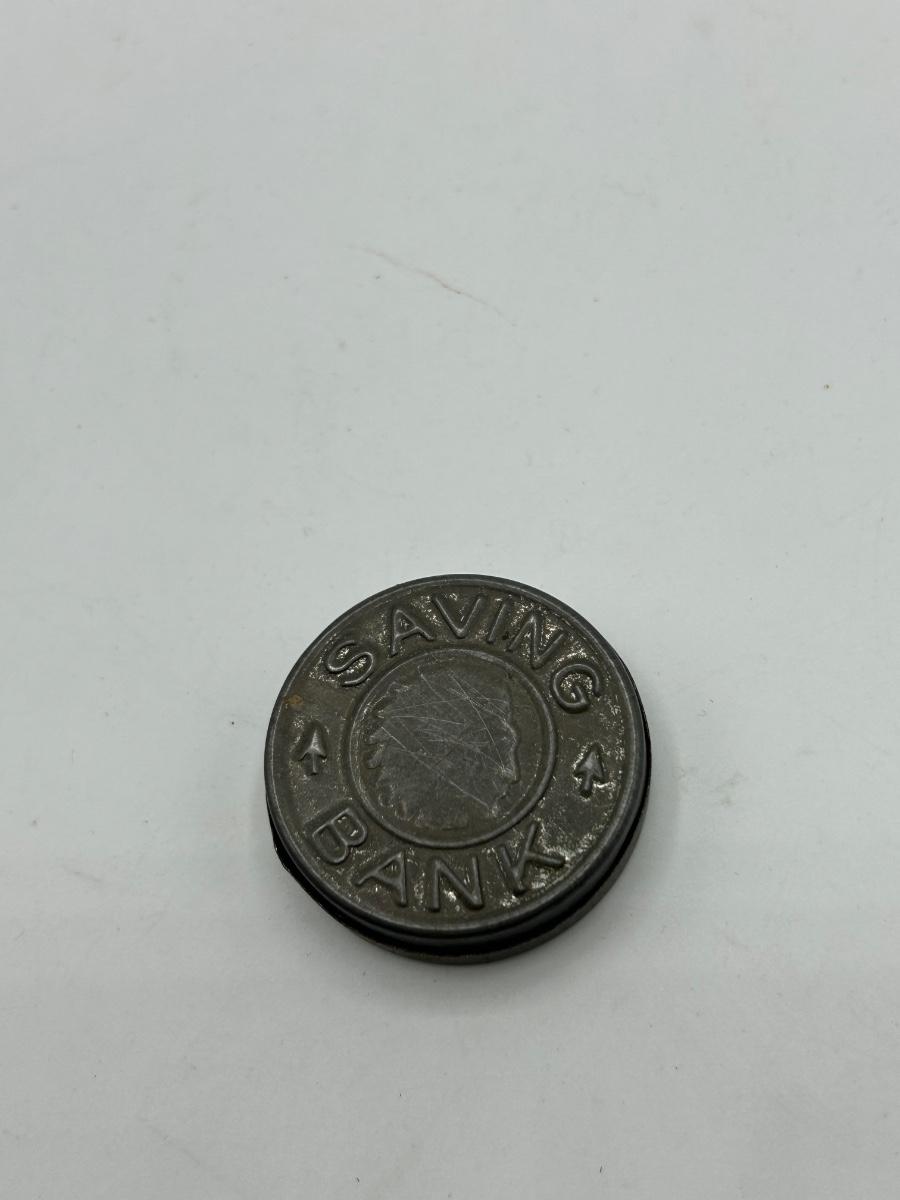 Vintage Metal Saving Bank Coin Holder with Wheat Pennies Inside. There is a half dozen or so pennies inside, and the look to be wheat pennies. Can not get open to see dates on coins inside.