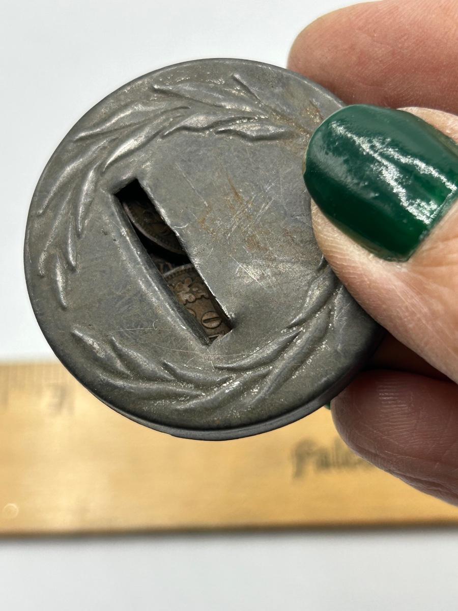 Vintage Metal Saving Bank Coin Holder with Wheat Pennies Inside